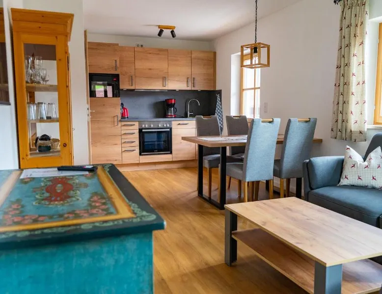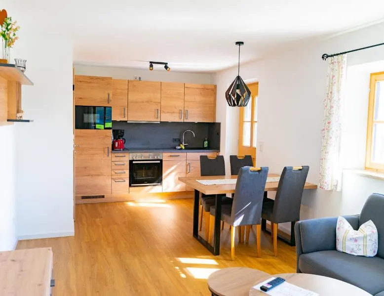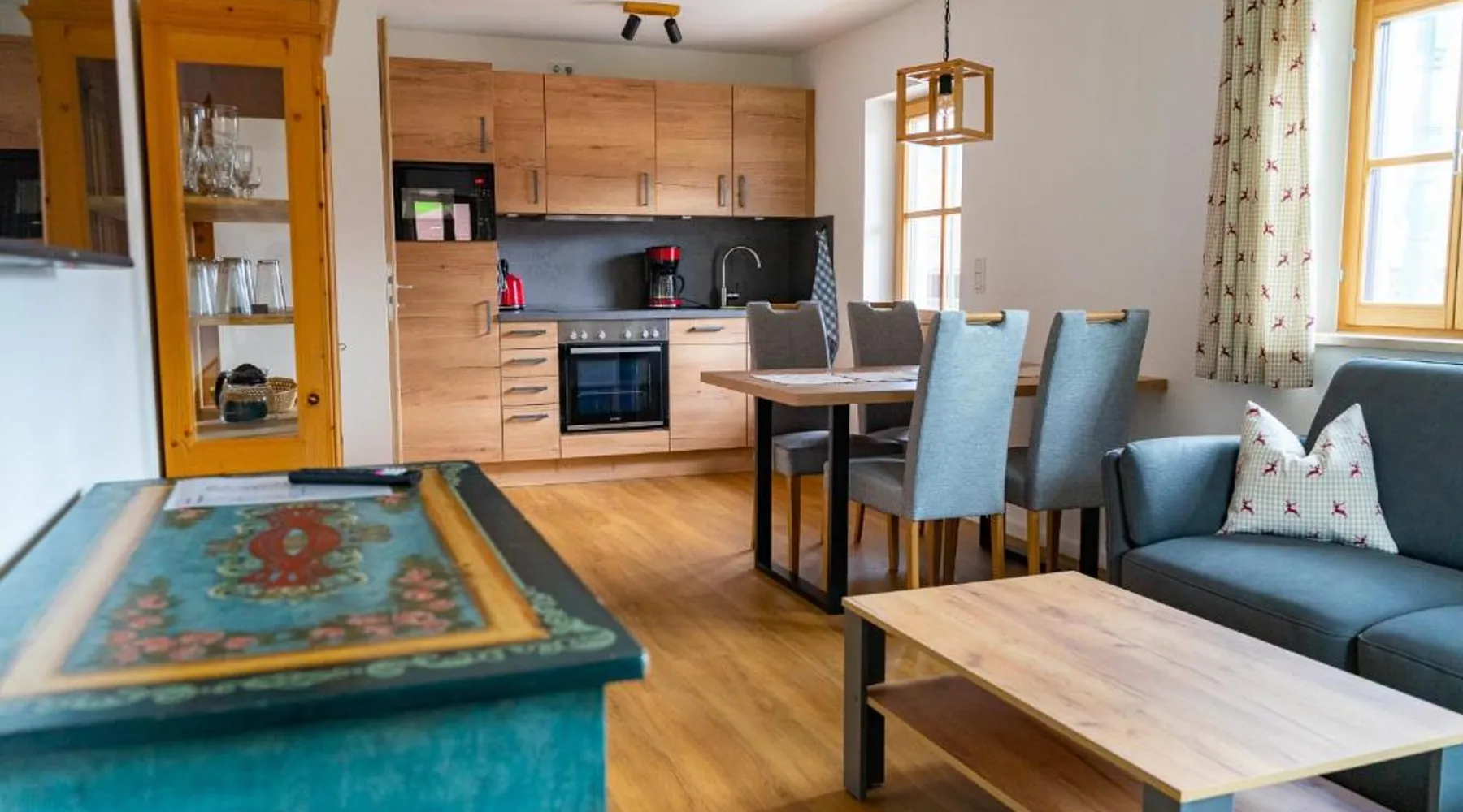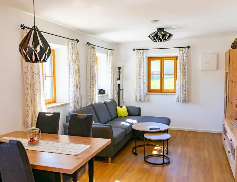 Comfortable Accommodations: Ferienwohnungen Heillinger Gütl in Ruhpolding offers a 4-star apartment with a sauna, garden, and free WiFi. Guests enjoy garden and mountain views, a terrace, and a ground-floor unit. Modern Amenities: The apartment features a kitchenette, private bathroom with a walk-in shower, and a dining area. Additional amenities include a tea and coffee maker, coffee machine, dishwasher, and TV. Convenient Facilities: Free on-site private parking, an electric vehicle charging station, and a children's playground are available. The surrounding area includes an ice-skating rink. Nearby Attractions: Max Aicher Arena is 8.1 mi away, Klessheim Castle 25 mi, and Mozart's Birthplace 29 mi from the property. Guests can enjoy skiing, cycling, and other activities. This spacious apartment includes 1 living room, 2 separate bedrooms and 1 bathroom with a walk-in shower and a hairdryer. The well-fitted kitchenette has a stovetop, a refrigerator, a dishwasher and kitchenware. The apartment offers a flat-screen TV with cable channels, a tea and coffee maker, a dining area, a wardrobe as well as garden views. The unit has 3 beds.
