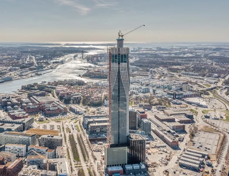 Stay in the highest building in the Nordic countries. Here you have access to the cinema, gym, ping pong, party room and a shared outdoor terrace on the 15th floor with a spectacular view of Gothenburg.