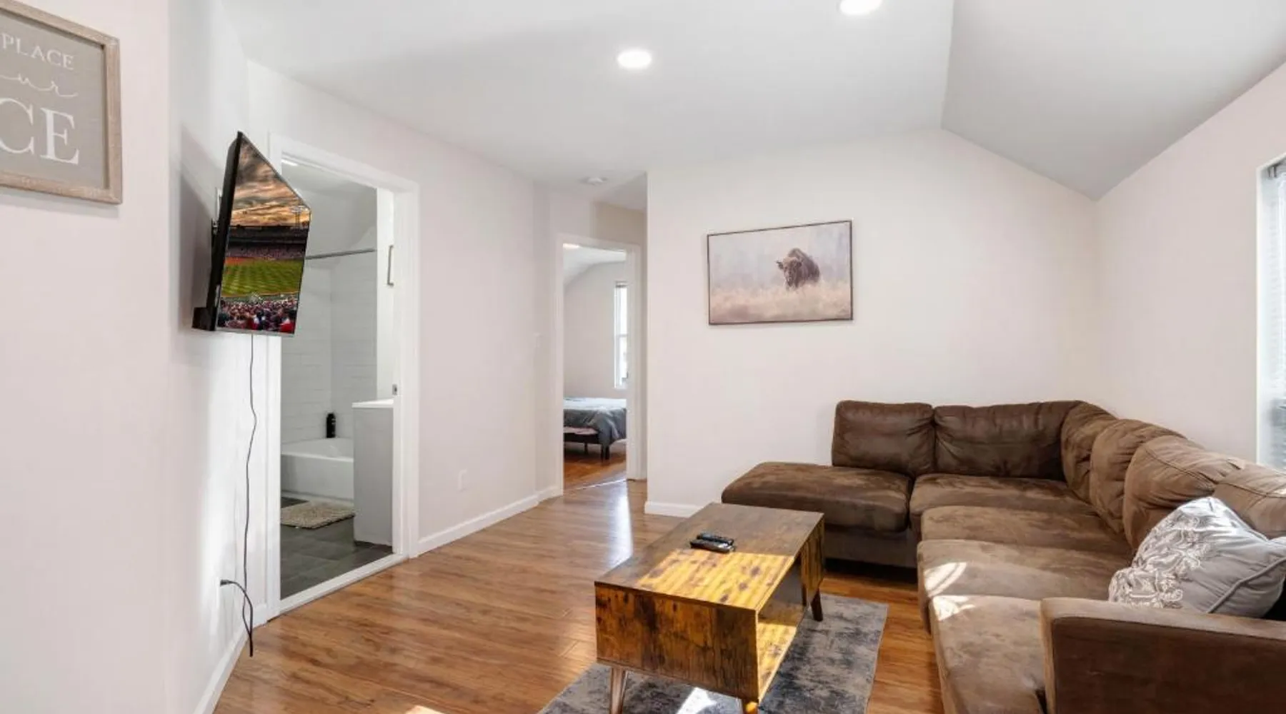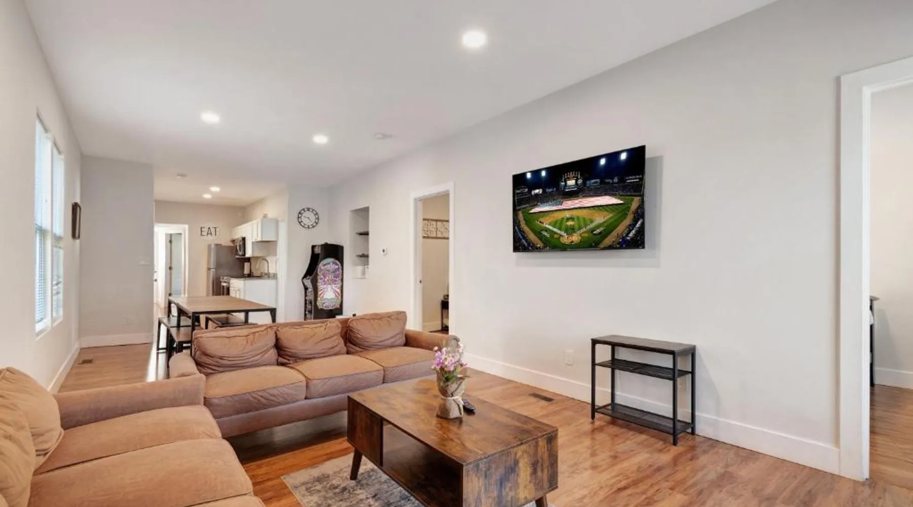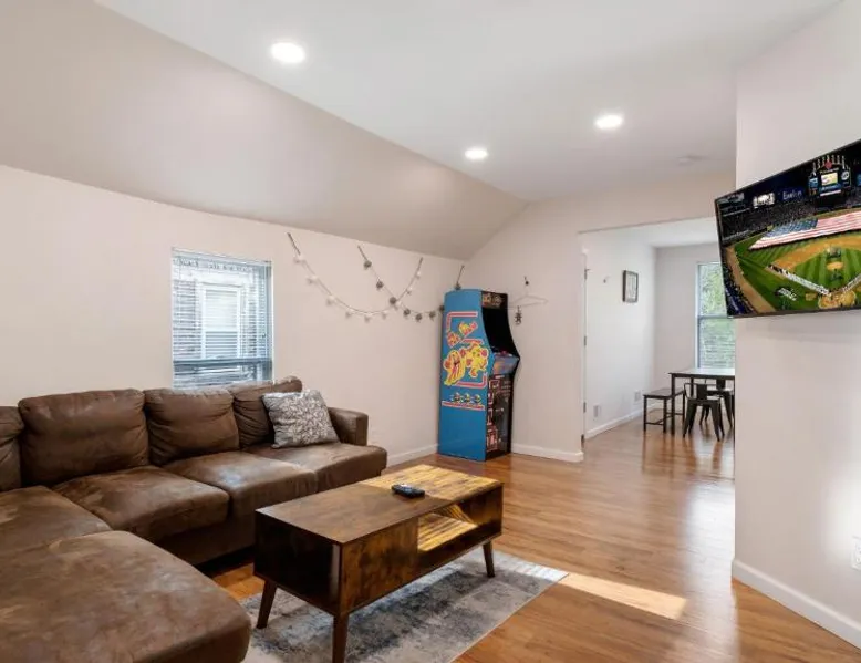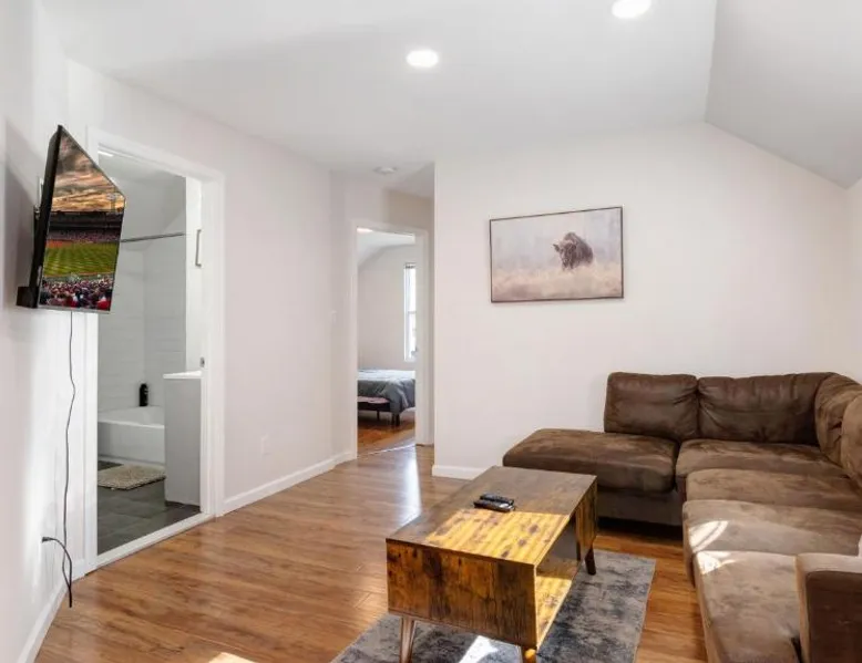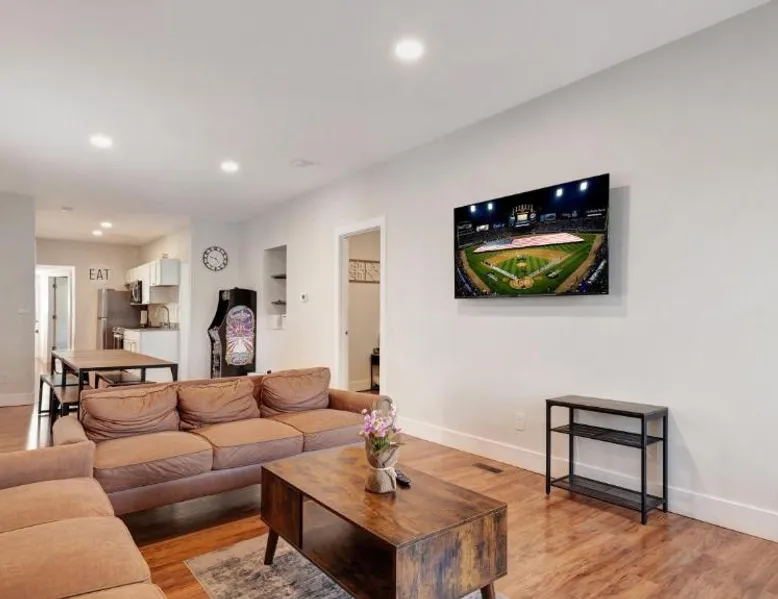 Spacious Accommodations: The 7 Bedroom House! Walk to Niagara Falls! New Whole House in Niagara Falls offers seven bedrooms and two bathrooms. The living room features a seating area, ensuring comfort for all guests. Modern Amenities: Guests enjoy free WiFi, air-conditioning, a fully equipped kitchen, washing machine, and free toiletries. Additional amenities include a garden, parquet floors, and a private entrance. Convenient Location: Located 5 mi from Niagara Falls International Airport, the property is close to attractions such as Old Falls Street and Niagara Falls Conference Center, both 1.2 mi away. Rainbow Bridge is an 18-minute walk. Guest Satisfaction: Highly rated by guests for its convenient location, the holiday home provides a comfortable and memorable stay. Boasting a private entrance, this air-conditioned holiday home features 2 living rooms, 7 separate bedrooms and 2 bathrooms with a bath and a hairdryer. The holiday home's kitchen is available for cooking and storing food. The holiday home has parquet floors, a seating area with a flat-screen TV, a washing machine, tumble dryer, as well as a game console. The unit has 7 beds.
