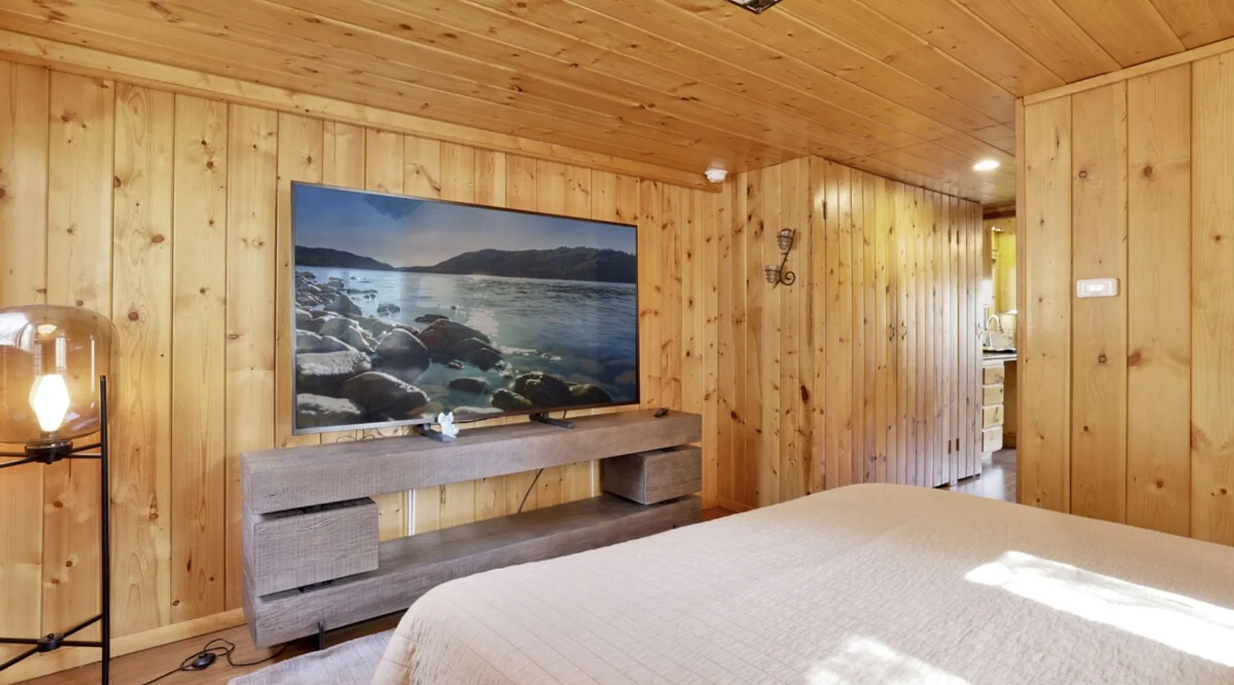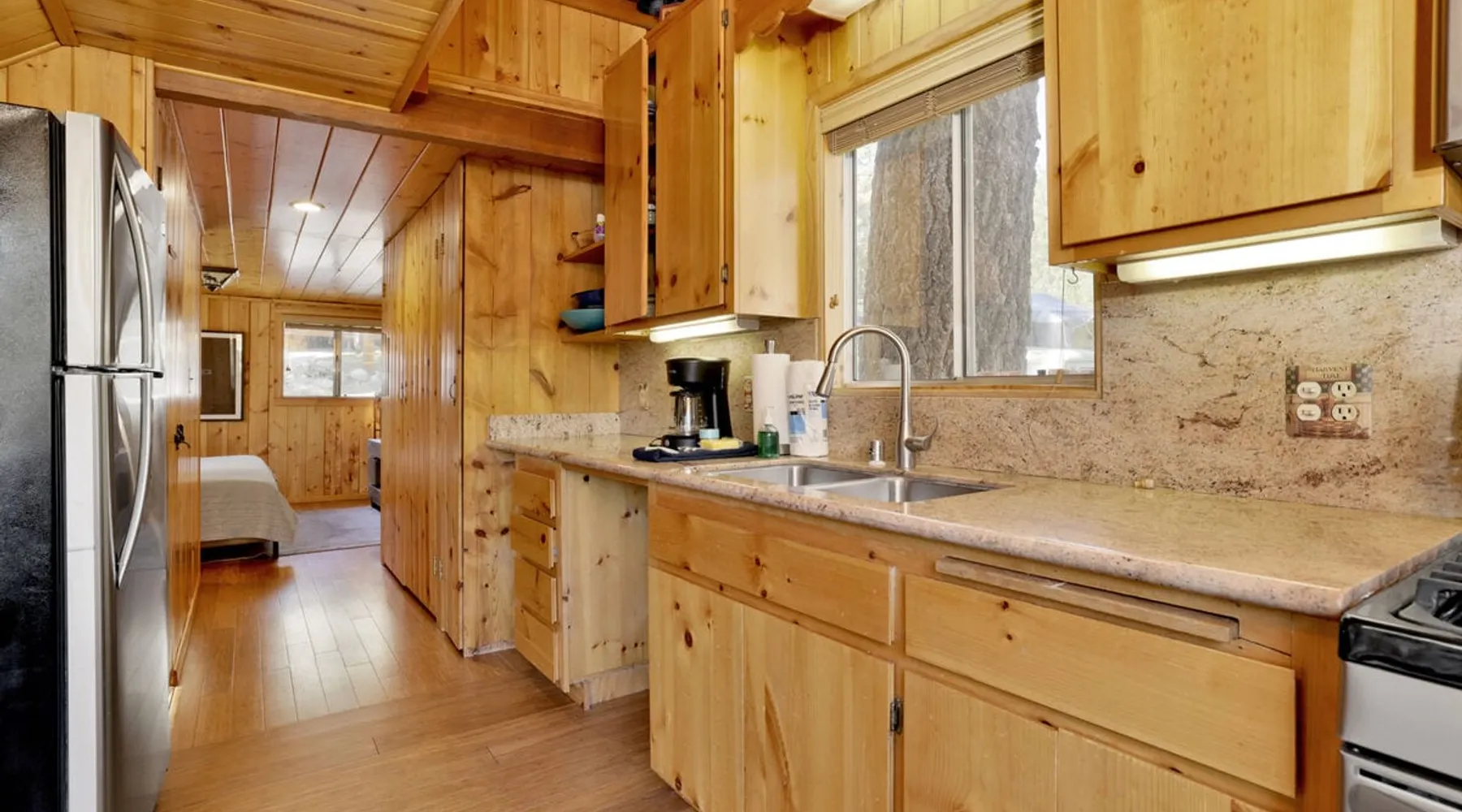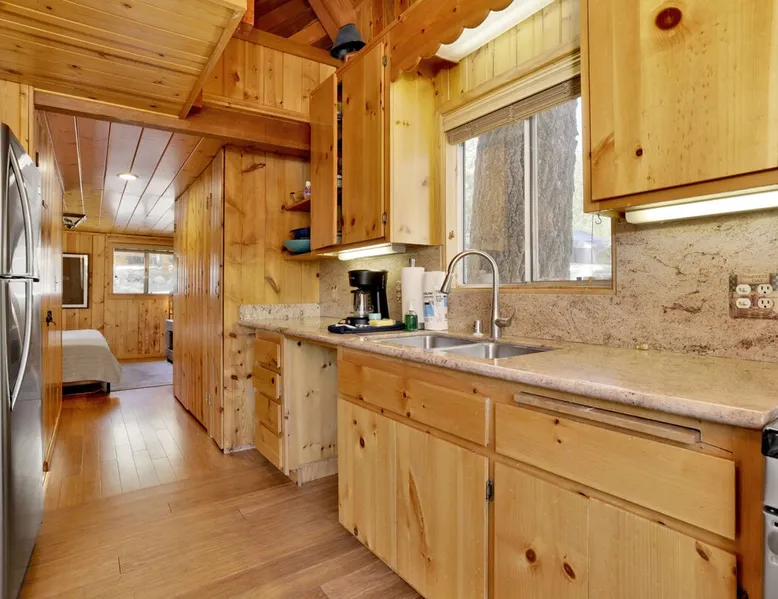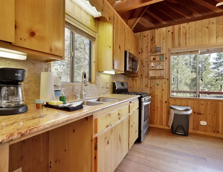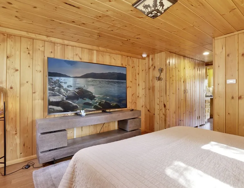 Fawnskin Pines is the perfect mountain escape destination for a couple's retreat or small family getaway to the mountains. Located on the north shore of the lake in Fawnskin you'll be surrounded by serenity and relaxation among soaring pine trees within the perfect space to unwind and get away from it all. Boasting the essentials and necessities from home you will love your vacation here. Come experience the trip of a lifetime at your new home away from home at Fawnskin Pines today! The space Fawnskin Pines | Adorable Forest Home Welcome to Fawnskin Pines! Perfect for a group of friends or family vacation to the mountains our freshly renovated and ultra charming mountain cottage boasts all that you need for a relaxing and memorable vacation to Big Bear! Enjoy forested tree top deck views as you relax and rejuvenate in this relaxing alpine atmosphere! Hop in the car and you are roughly ten minutes to all local activities including the ski resorts, marina, and shopping areas, the possibilities are endless from here! Enter your cozy and warm living room area where you are immediately greeted with beautiful hardwood floors, knotty pine wall and ceiling accents, and big open windows that provide the perfect balance of natural lighting and views of the forested neighborhood and snow falling outside. Snuggle up together in front of the toasty wood burning fireplace as you warm your toes and pop on a movie on the flat screen Streaming TV with complimentary hi speed WIFI internet provided for your enjoyment. (Guests must have their own accounts to enjoy Streaming Services.) Around the corner your equipped kitchen and dining areas offer you all that you need to whip up home cooked feasts and slope side snacks right here at the cabin including oak cabinets stocked with cookware and utensils, stainless appliances, and a cute bistro style dining table. A spacious lower level bathroom and bedroom are easily accessible here on the entry level while upstairs is a spacious loft bedroom that adds to your sleeping arrangements- all of your rooms are made up for your group's arrival with warm linens, blankets, pillows, and fresh shower towels for you when you arrive for your vacation stay. Outside you will love soaking up the rays on the sun deck as you enjoy this alpine location and unwind in the evenings under the pine trees. Fawnskin Pines has it all- come experience this incredible home away from home for your next vacation! Sleeping Arrangements: Bedroom 1: Queen Bed- Downstairs Entry Level Bedroom 2: King Bed- Upstairs 2nd Level Bathroom Arrangements: Hallway Full Bath- Downstairs Entry Level -Sleeps 4 -2 Cars Driveway Parking -2 Pets Welcome w/ Additional Fee Other things to note Big Bear Vacations & Cabins House Rules and Policy Information *Please read all rules and policies completely- Your booking/request to book constitutes your understanding and agreement of the below Policies & Information* **Reservation Holder Must Be 21+** **Electronic Rental Agreement & Good Neighbor Policy Required** **Guests must provide ID for Cabin Access** Our Big Bear Vacations team is looking forward to hosting you here in the mountains! We are your longest standing local vacation experts with years of dedicated experience and knowledge brought forth within our exceptional customer service and support staff to ensure a 5 star experience for every guest. Our team offers 24/7 support along with local on site offices and experience packages. Big Bear GOOD NEIGHBOR POLICY is enforced at all times during your stay and includes removing trash from the property to local trash sites, washing dishes to alleviate wild animals being attracted to neighborhoods. NO PARTIES OR EVENTS, No Over Occupancy, No Loud Music, and No Street Parking is allowed in Big Bear homes at any time. This policy along with a rental agreement will be emailed to you immediately after booking and is REQUIRED by the City of Big Bear Lake for all rentals in Big Bear. If found in violation of these policies guests will be visited by staff and Code Enforcement officers who may or may not issue fines or evictions to the violating party members. No Smoking is allowed in any Big Bear homes. Check-in time is 4:00 pm Check-out time is 10:00 am There is no early arrival or later departure availability during peak season and holidays. Contact our office the morning of arrival or departure to confirm early arrival or later departure availability for your stay. (Fee Applies) Winter Snow & Parking- During winter months the driveways, steps, porches, decks, and other outdoor areas at your property may not be accessible due to snow or ice. Our teams are on fixed routes for snow and work alongside city and county resources to clear roads, driveways, walkways etc. Guests should be prepared in winter months to shovel themselves in or out of the property and off of the street in these snowstorm events. As there is no street parking allowed in Big Bear it is extremely important that guests make every attempt to get vehicles off the street for the snowplows. California Law requires that vehicles traveling to Big Bear from November thru April have snow chains in their vehicles however we also recommend proper footwear, an emergency kit, and an extra snow shovel. Pet Policy- Pet Friendly Homes ONLY Pet Fees $35/Pet Nightly Fee + Tax Pet Policy ~All dogs on the property must be registered and acknowledges with the front desk ~Dogs may not be left unattended in the home at any time ~Pet owners are responsible for cleanup of pets or are subject to an added cleaning fee Service Animals Are Welcome! California Penal Code: (a) Any person who knowingly and fraudulently represents himself or herself, through verbal or written notice, to be the owner or trainer of any canine licensed as, to be qualified as, or identified as, a guide, signal, or service dog, shall be guilty of a misdemeanor punishable by imprisonment in the county jail not exceeding six month, by a fine not exceeding on
