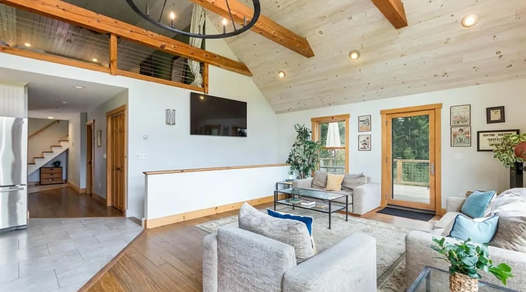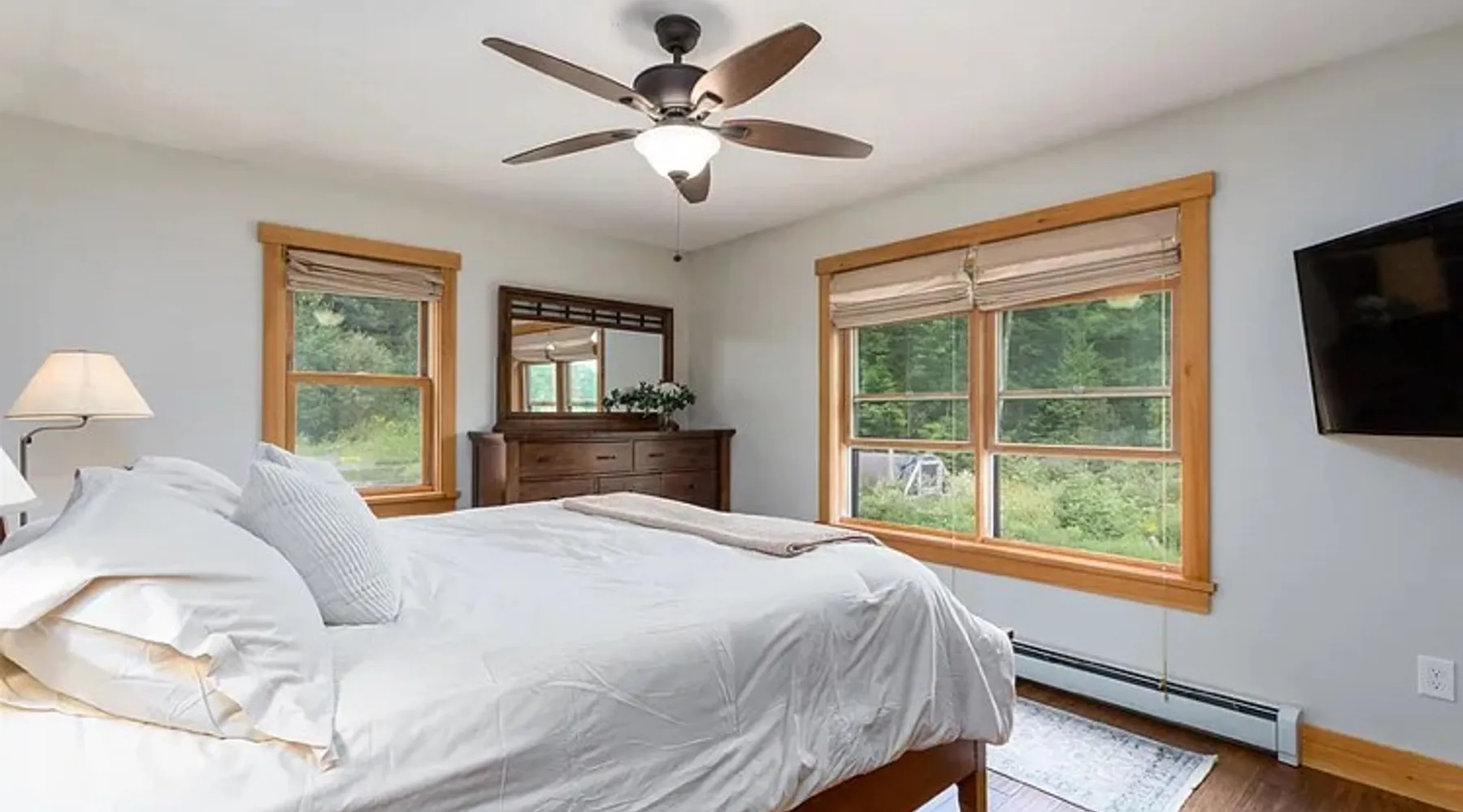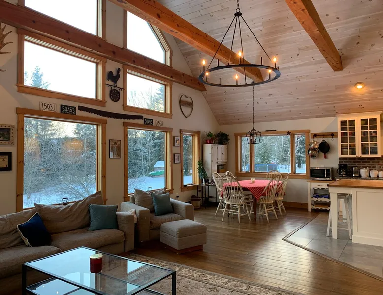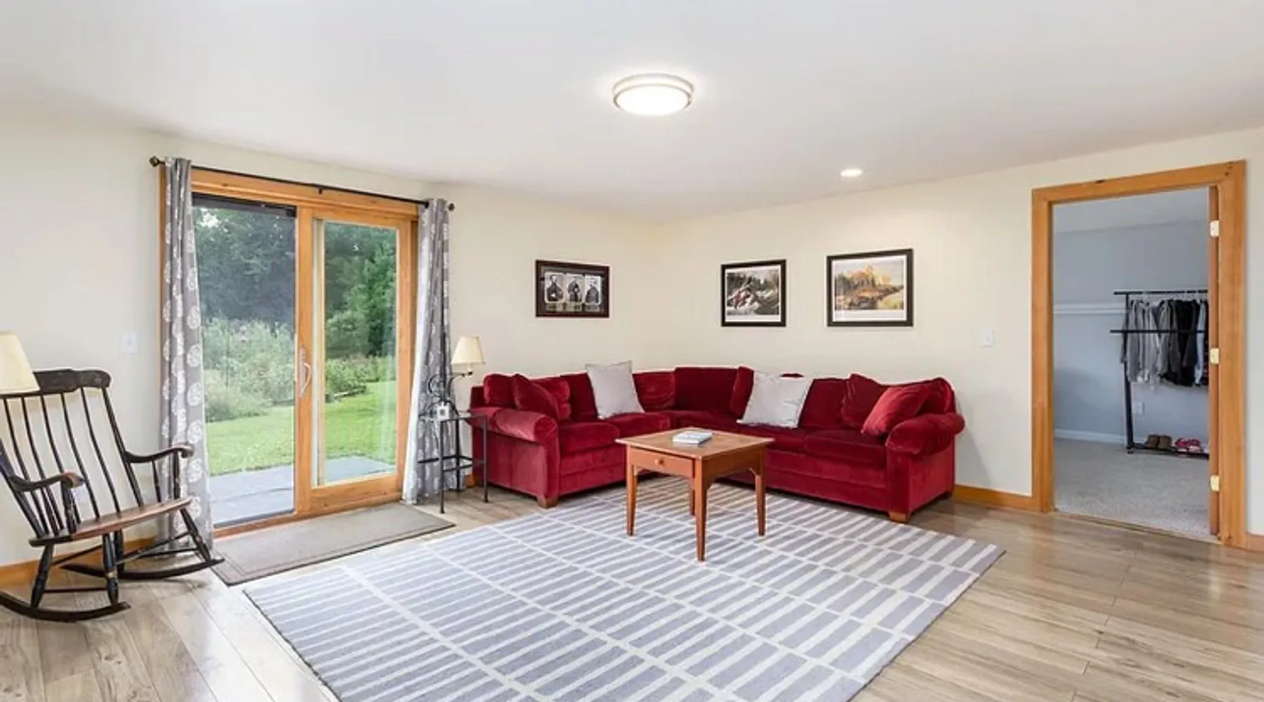 Your stay will be relaxing at Loop Haus! This well cared for home has everything you need to have a carefree stay. A well stocked kitchen, comfortable beds, plenty of space to sprawl out with three floors of living space. Built in 2016 with the beauty of the property seen from every room. ☀️Discounts for four night stays and week long stays! 🥾 Hiking trails nearby 💦 river access with swimming 🚵♂️ biking 5 miles to Morrisville 10 miles to Stowe Village 20 miles to Smugglers The space 18 miles to Waterbury 35 miles to Burlington This country home sits on ten acres of land with a large open lawn, providing privacy with wooded area surrounding the home. Views from inside are elevated so you see the property from every space. The main living area on the first floor has an open floor plan, with lots of space for the whole group to gather!! *High vaulted 20’ ceilings * Large picture windows bring an abundance of light in, and elevated views make it feel like you are living amongst the outdoors. 🛜 fast reliable internet speed 250 Mbps Work from home opportunity The Entrance Has a large mud room with radiant heat floors in the winter, plenty of room for snow gear and shoes. *Laundry 🧺 washer and dryer stocked with detergent. *Master Bedroom King size bed an en-suite bathroom double sinks, shower large soaker tub. Living Room A large welcoming area with seating for everyone! Enjoy watching a movie or a sports game on the - 70” TV Kitchen Fully stocked for all your cooking needs. We provide you with cooking oil, spices tea, hot chocolate coffee, creamer, sugar. Dining Room Kitchen table with seating for 6 Sit at island for 2 Loft Two twin beds a sitting area, board games Downstairs: *Features a walk out access to the yard *A second living space with a couch room for air mattress if needed for more sleeping area *Two bedrooms with queen size beds hanging racks for clothes *Full Bathroom Shower/Tub Enjoy using the outdoor fire pit * fire wood not provided. * WINTER no need to worry about the driveway, it is plowed and well maintained, it is very flat and easy to maneuver. Parking Room for about 4-5 cars Our road is kept plowed and sanded during storms and after. Summer We have window AC units installed in the main living areas and fans to circulate the cool air. In Vermont, for most of the summer, you can open the windows to let the cool night air in but close those windows durning the day to trap the cold air in. 💦 Summer time river access with swimming is available it’s a short walk, down the driveway take a right, walk .25 miles and the tail head is on the left side of the road. It is a steep walk into the woods so be prepared for a climb. You will find a 15 foot swimming hole with a 10 foot waterfall flowing into the basin. Guest access The home owners have personal locked closets in each bedroom. On the property are out buildings- sheds that are off limits to guests. Thank you .
