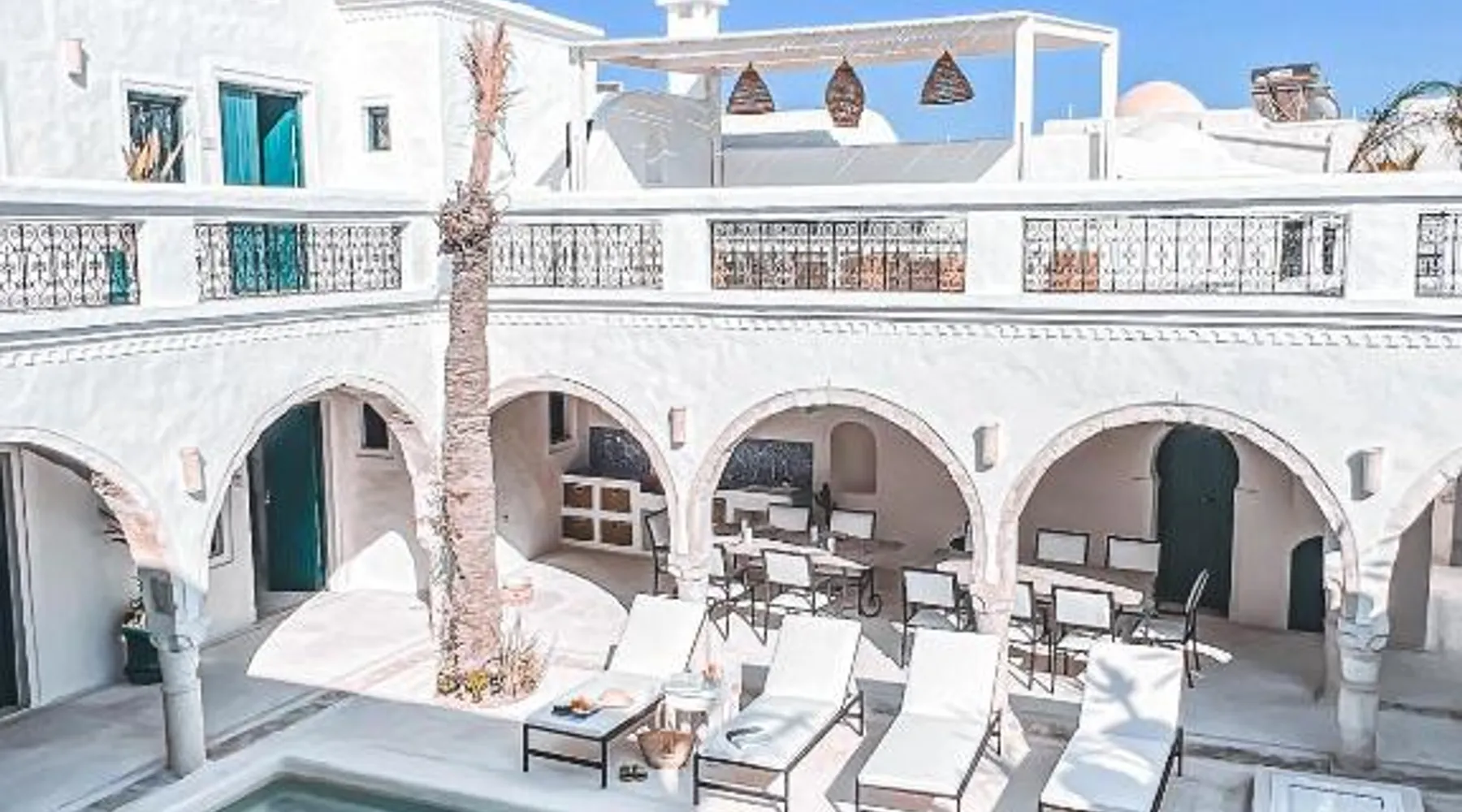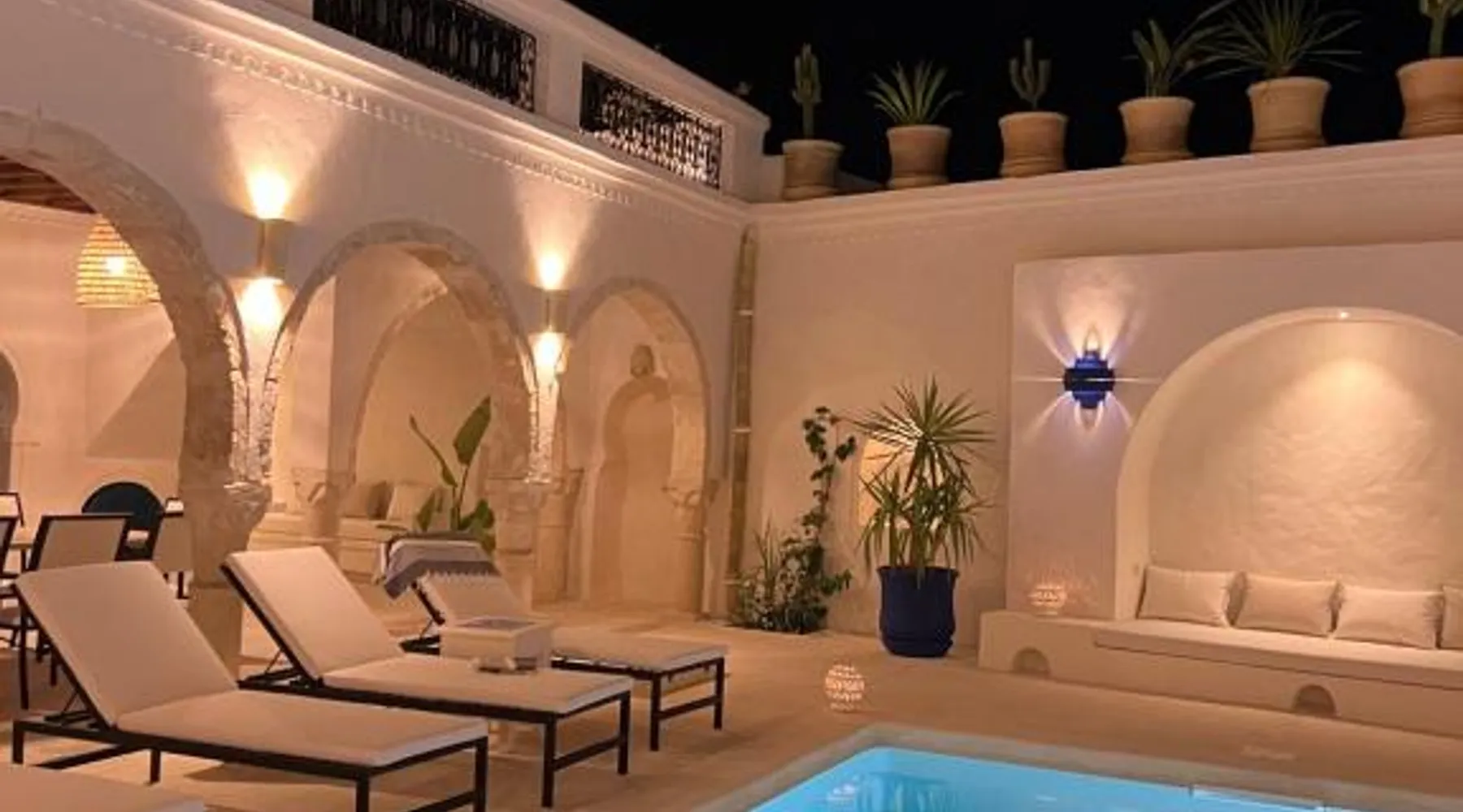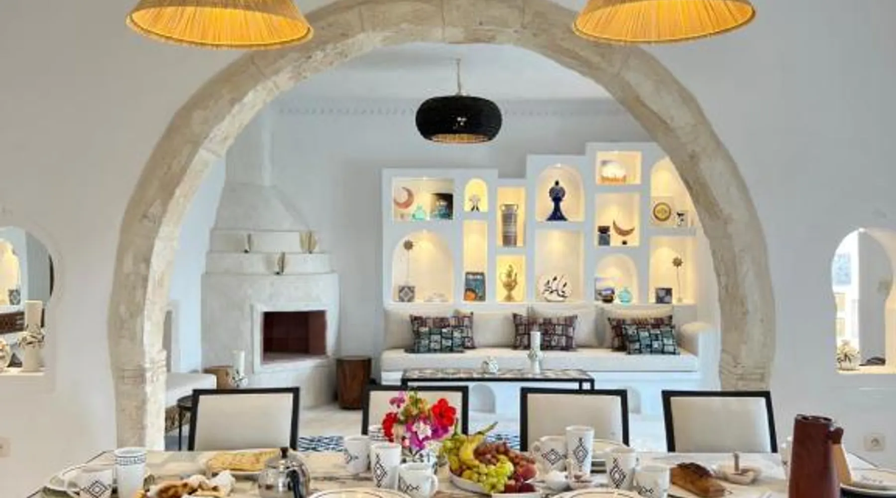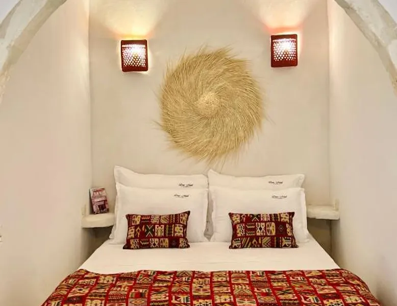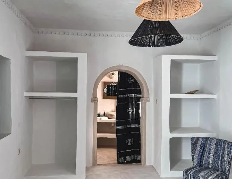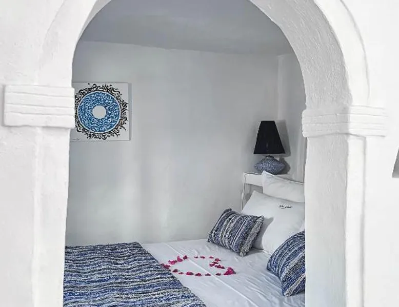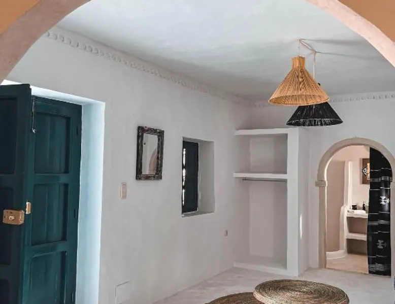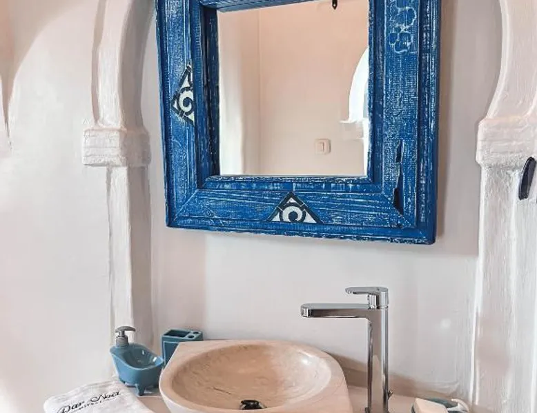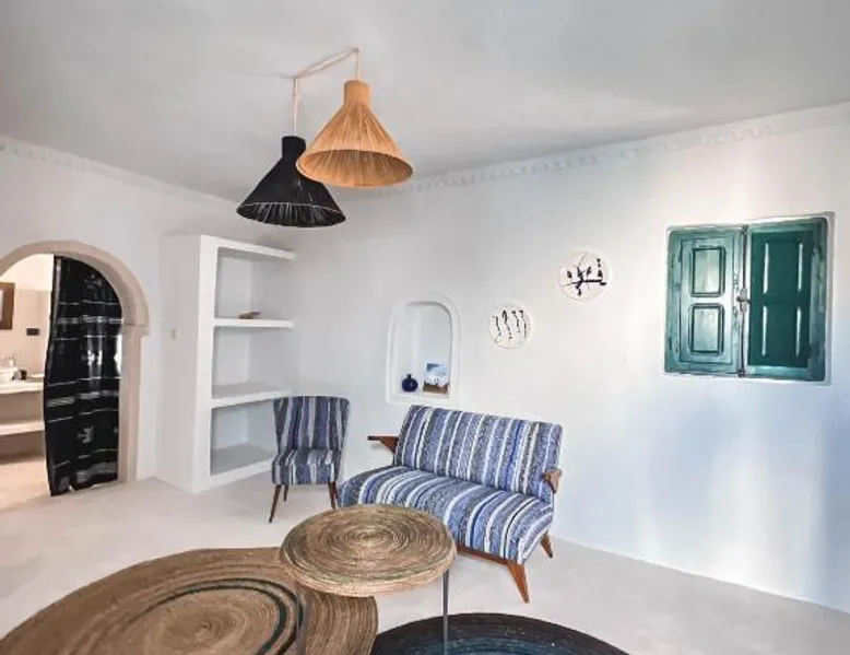 Comfortable Accommodations: Dar Naël in Djerba offers family rooms with private bathrooms, air-conditioning, and free WiFi. Each room includes a balcony or terrace with pool views, ensuring a pleasant stay. Outdoor Amenities: Guests can relax on the sun terrace or in the garden, enjoy the year-round outdoor swimming pool, and unwind in the hot tub. The property features a lounge, outdoor seating area, and free on-site parking. Dining Experience: A continental buffet breakfast is served daily, including local specialties, juice, pancakes, cheese, and fruits. Dinner options are available through the concierge service. Convenient Location: Located 6.2 mi from Djerba–Zarzis International Airport, Dar Naël is near attractions such as Djerba Golf Club (12 mi), Lalla Hadria Museum and Djerba Explore Park (14 mi), and the Crocodile Farm (14 mi). This suite is consisted of of 1 living room, 1 separate bedroom and 1 bathroom with a walk-in shower and free toiletries. Among the room amenities are air conditioning, soundproof walls, a seating area as well as a patio and pool views. The unit offers 1 bed.