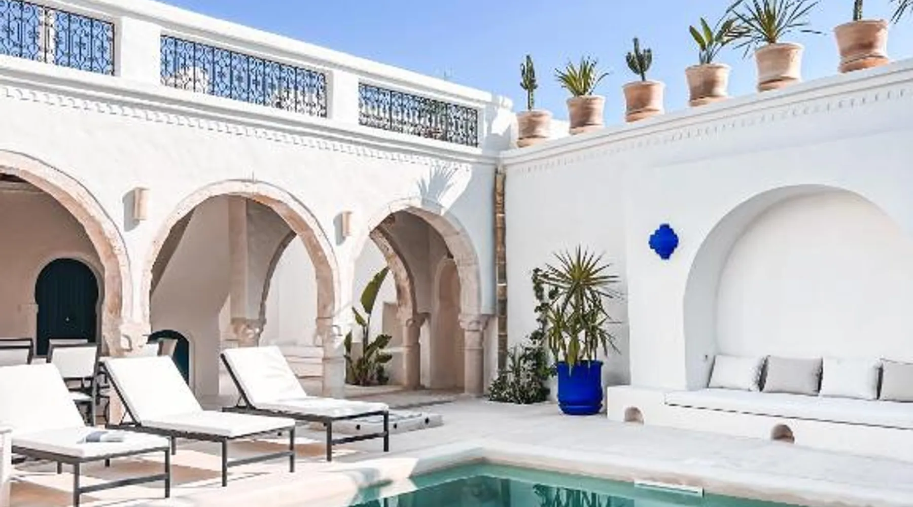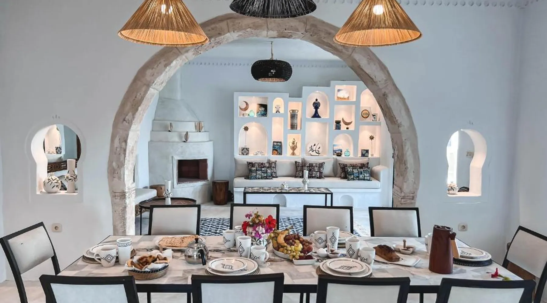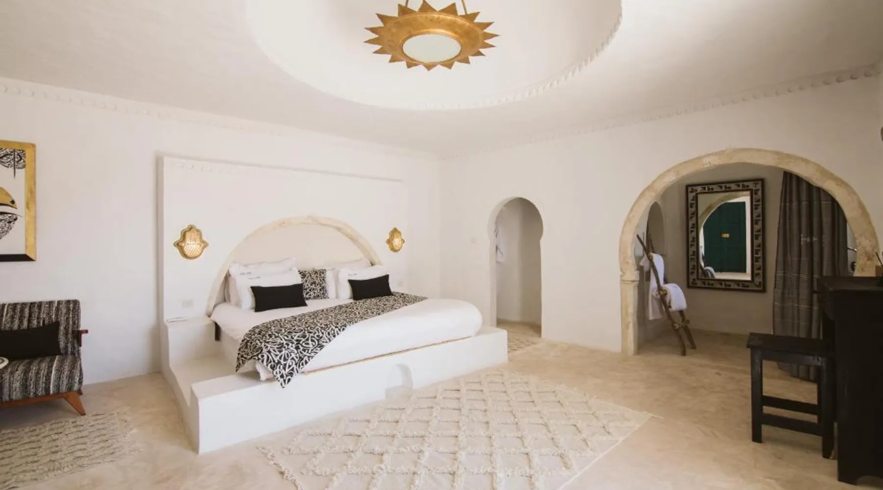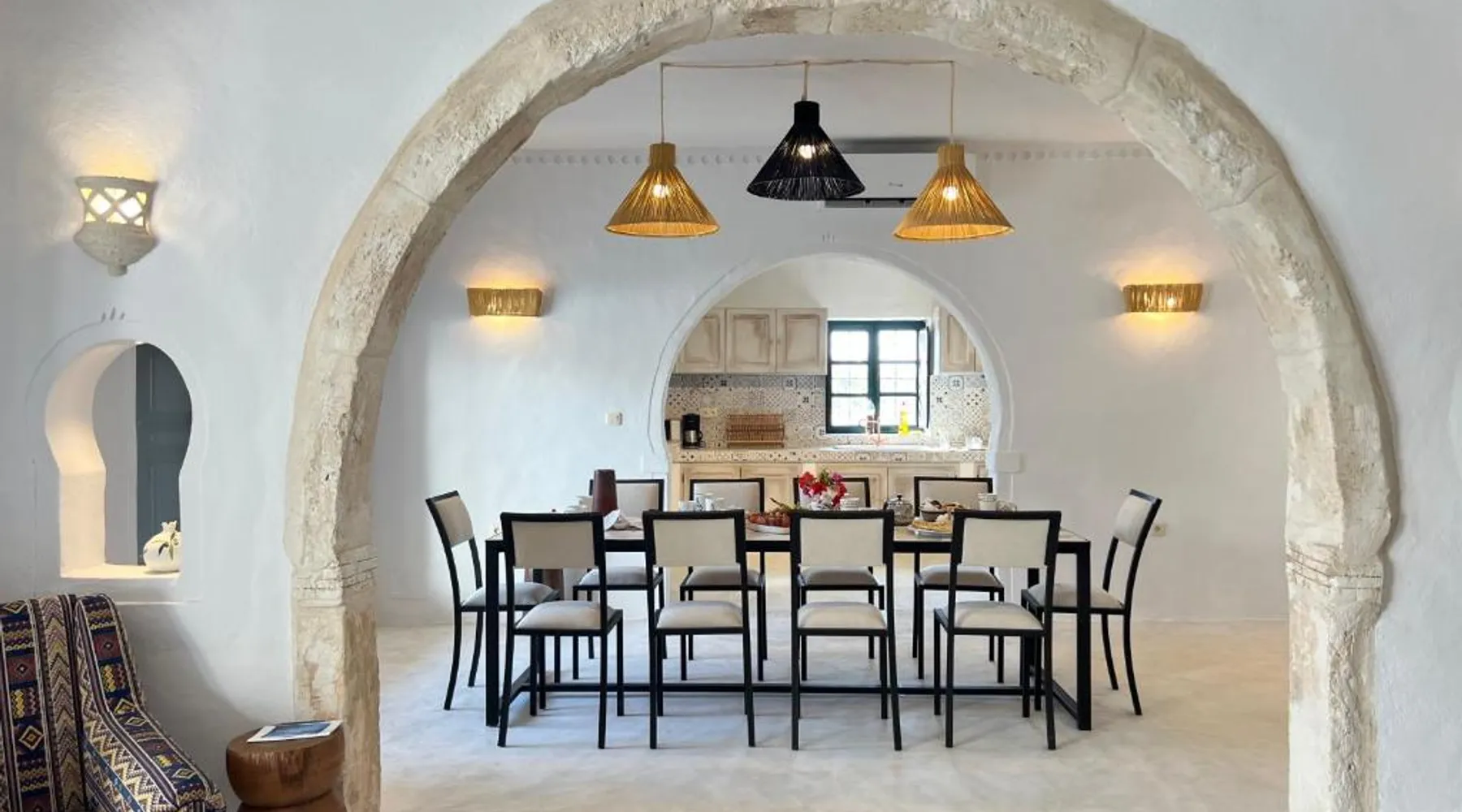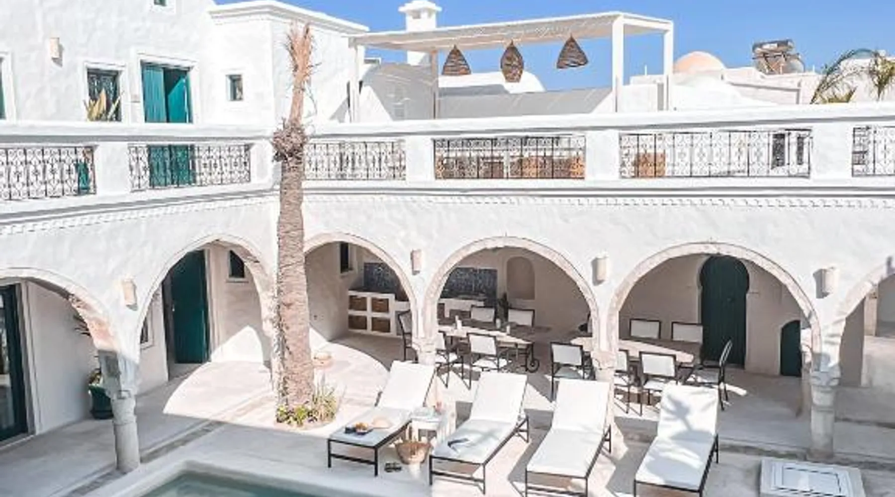 Comfortable Accommodations: Dar Naël in Djerba offers family rooms with private bathrooms, air-conditioning, and free WiFi. Each room includes a balcony or terrace with pool views, ensuring a pleasant stay. Outdoor Amenities: Guests can relax on the sun terrace or in the garden, enjoy the year-round outdoor swimming pool, and unwind in the hot tub. The property features a lounge, outdoor seating area, and free on-site parking. Dining Experience: A continental buffet breakfast is served daily, including local specialties, juice, pancakes, cheese, and fruits. Dinner options are available through the concierge service. Convenient Location: Located 6.2 mi from Djerba–Zarzis International Airport, Dar Naël is near attractions such as Djerba Golf Club (12 mi), Lalla Hadria Museum and Djerba Explore Park (14 mi), and the Crocodile Farm (14 mi). This suite is consisted of of 1 living room, 1 separate bedroom and 1 bathroom with a walk-in shower and free toiletries. Among the room amenities are air conditioning, soundproof walls, a seating area as well as a patio and pool views. The unit offers 1 bed.