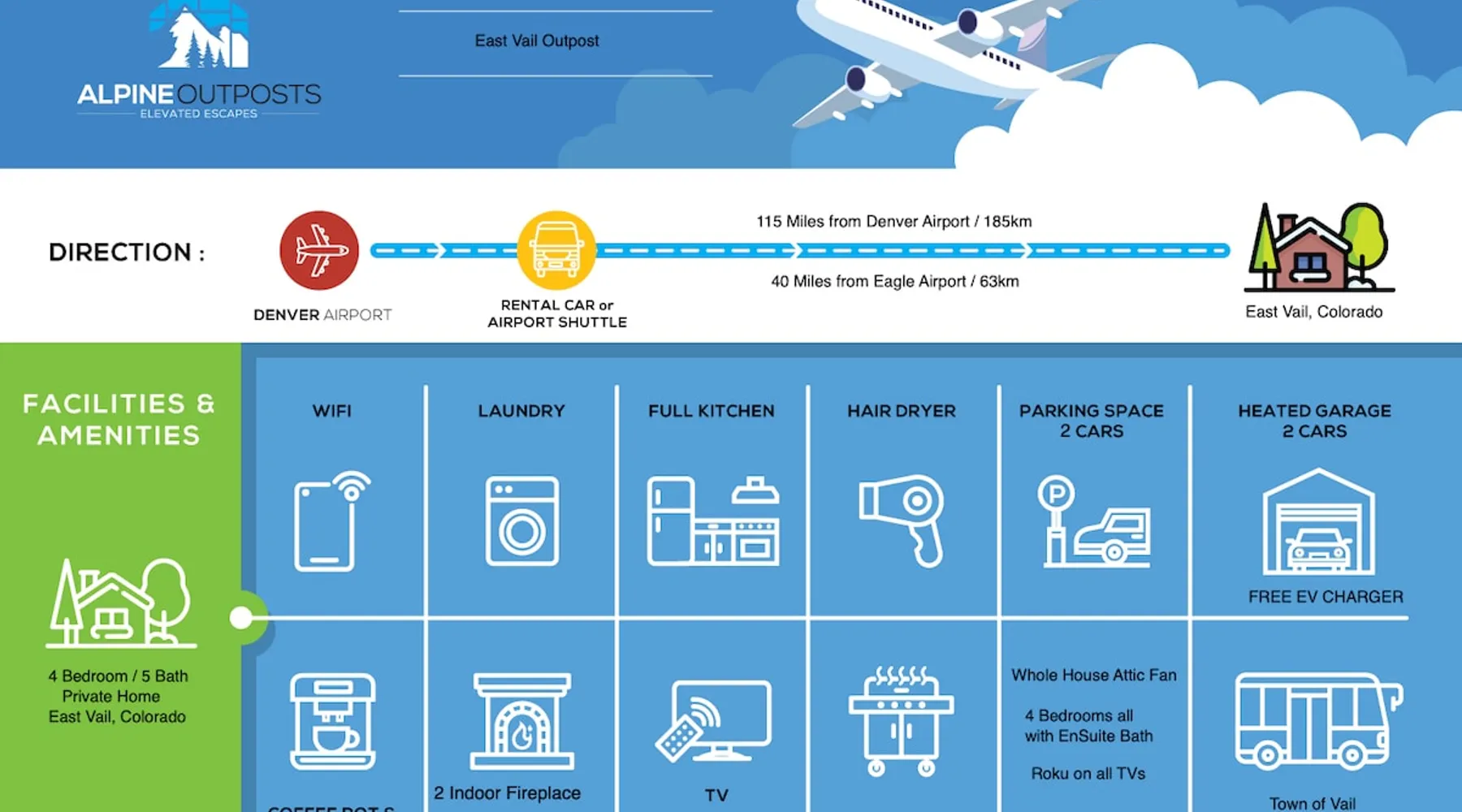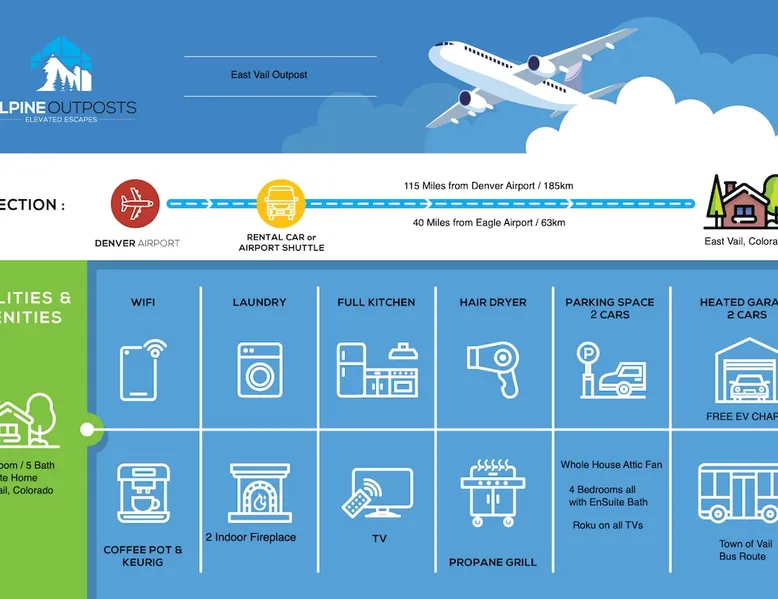 ❤️ Guest Favorite on Airbnb 🏆 Private East Vail Home, OnShuttleRoute, 4 EnSuites, HeatedGarage, EV Charger This home is licensed for a MAX of 10 people. The legal limit is 10 total per Town of Vail. We allow max of 8 adults + 2 children. The top bunks are not rated for adults. Not sure yet? Sending a booking request for pre-approval and pricing will lock in for 24 hours. (AirBNB ONLY) The space ⭐️ Instant Booking – All available dates are instantly bookable. Simply select your dates and confirm—no host approval needed. ⭐️ Real-Time Pricing – Rates update automatically to always reflect our best available price. ⭐️ Automatic Discounts – Weekly (7-night) and monthly (30-night) discounts are applied at checkout. Stays of 30+ nights are also tax-free. Top Five Reasons People Rent East Vail Outpost: ✨ Spacious & well-appointed home for groups / families 🛋️ Excellent amenities and comfort features 🚌 Convenient shuttle access to the resort 🏔️ Great for summer AND winter adventures ⚡️ Free EV Charging + 🐾 Pet-friendly Property Highlights: • Professional post-stay cleaning included • Sleeps a maximum of 8 adults + 2 kids (10 total guests) • 4 bedrooms, each with a private bath and individually controlled thermostat • Two bedrooms feature private balconies (front & back) • All bedrooms upgraded with HD Roku Smart TVs • New sheets and towels for 2025 • Free Zoom planning call to help you live like a local and make the most of Vail • Free EV charging (NACS connector) – 40 amps @ 208V (summer) / 30 amps @ 208V (winter) • Damage insurance policy included in every stay • Heated floors throughout • Two-car heated garage (maintained at 50°F) • Living room with 46” HDTV + Roku and oversized fireplace • High-speed Xfinity WiFi (400 Mbps) • Work-from-home desk off the kitchen • Checkers / Chess table for family fun • Dining area seats 8 + 2 at the counter • Whole-house attic fan for summer cooling • Second-floor laundry near all bedrooms • Town of Vail free bus stop just 1 block away (10-minute ride to Vail Village) • Beautiful backyard with a seasonal mountain stream (summer) • Monthly rental options available (Pro tip: stays of 30+ nights are tax-free!) Welcome to East Vail Après, your cozy mountain retreat nestled in the heart of Vail Valley's scenic East Vail neighborhood. This home is just minutes away from some of Vail's most popular attractions, including the world-renowned Vail Ski Resort, which boasts over 5,000 acres of skiable terrain, as well as hiking trails, fishing streams, and mountain biking paths. This spacious and fully-renovated four bedroom, all with private bathrooms, single family home offers the perfect blend of comfort, convenience, and style, making it the ideal base for your next ski vacation or summer adventure. Step inside and be greeted by the warm and inviting atmosphere of the living room, complete with a stone fireplace, plush couches, and rustic decor. The open-plan kitchen and dining area provide all the amenities you need to cook up a delicious meal or entertain guests, including stainless steel appliances, granite countertops, and a large dining table. Make your way upstairs to the bedrooms. Sleeping Arrangements: • Bedroom #1 - EnSuite / King Bed / Balcony • Bedroom #2 - EnSuite / Queen Bed / Balcony • Bedroom #3 - EnSuite / Queen Bed (lower bunk) + 2x Twin beds (Upper Bunk & Trundle) • Bedroom #4 - EnSuite / King Bed Additional Amenities: • Laundry room with full-size washer/dryer, iron, ironing board • Parking for up to 4 vehicles (varies by season). • Kid friendly, two pack-n-play's • Grill and Deck Space with Patio Table • Humidifiers in all bedrooms. Summer Seasonal Information: • Close to hiking, mountain biking, and water sports. • Hiking and mountain biking trails that we connect to directly to the neighborhood outside the home • Whitewater rafting, Horseback Riding, Paddle boarding, Dog Sledding, Snowmobiling, Zip Lines, Adventure Parks, are all with in miles of the home Important Notes: • No Events: Weddings, receptions, or functions are strictly prohibited at the property. • Unfortunately no Campfires permitted due to Forrest Fire Risk. • No A/C: Vail homes rely on cool mountain air. Open windows during the day and close them at night for comfort. • Pet Policy: 1 pet is allowed Travel Information: • Nearest Public Airports: Denver International (125 miles - 2 hours or Eagle County airport (40 miles - 45 minutes). • Nearest Private Airports: Buena Vista, Kremmling, Rocky Mountain Airport • Transfers: Private transportation available. • Semi-PrivateJSX flights now serve Rocky Mountain Airport in Boulder, CO. ⭐️ Grocery Walmart (15 min), City Market Vail (10 min), Safeway (10 min), Walgreens (20 min), ⭐️ Nearby Vail Mountain Resort Lions Head – 6 miles, 10 minutes Vail Mountain Resort Vail Village – 5 miles, 10 minutes Beaver Creek Resort Entry - 15 miles, 20 minutes Betty Ford Alpine Gardens – 4 miles, 8 minutes Gerald R. Ford Amphitheater – 4 miles, 8 minutes Colorado Ski & Snowboard Museum – 5 miles, 10 minutes Eagle Vail Golf Club – 13 miles, 15 minutes East Vail Falls Trail Head - .5 mile, 2 minutes This home does NOT have Air Conditioning. Most homes in Vail (especially above 8,000ft) have heated floors and A/C is not possible. The temperature regularly drops down into the 40s at night (even in the summer) and above 8000ft in altitude we have almost no humidity. Provided you open the windows during the day, and close them at night this home will be comfortable all summer long. We have pedestal fans in every bedroom as well. This home has a Whole House Attic fan for cooling home during the summer. Terms and Cancellation Policy: Refunds issued per cancellation terms. We recommend purchasing travel insurance for unforeseen events. Customers must sign via Electronic rental agreement prior to arrival. Only 