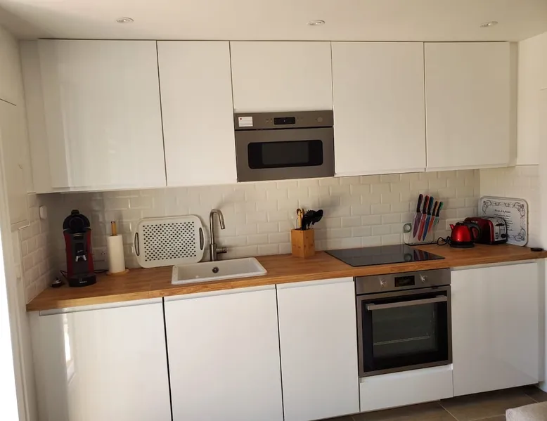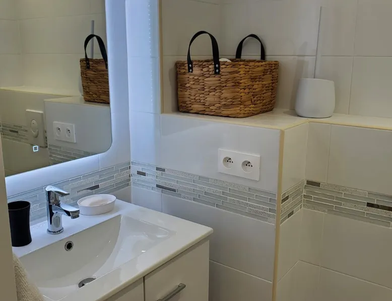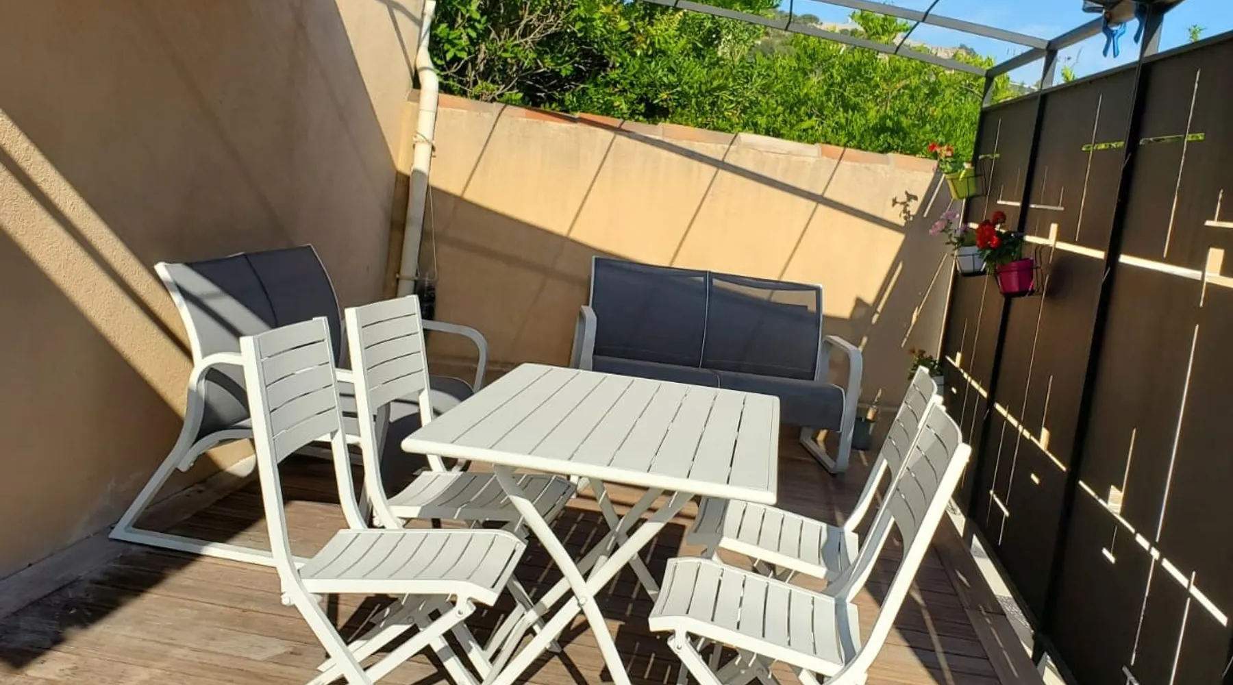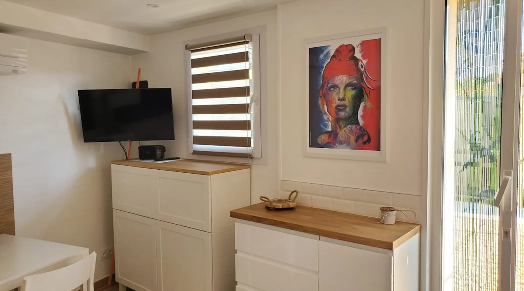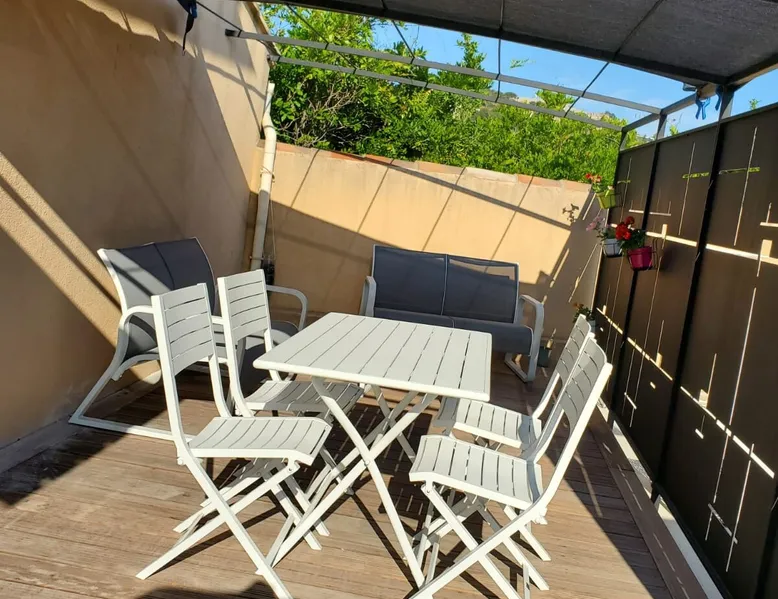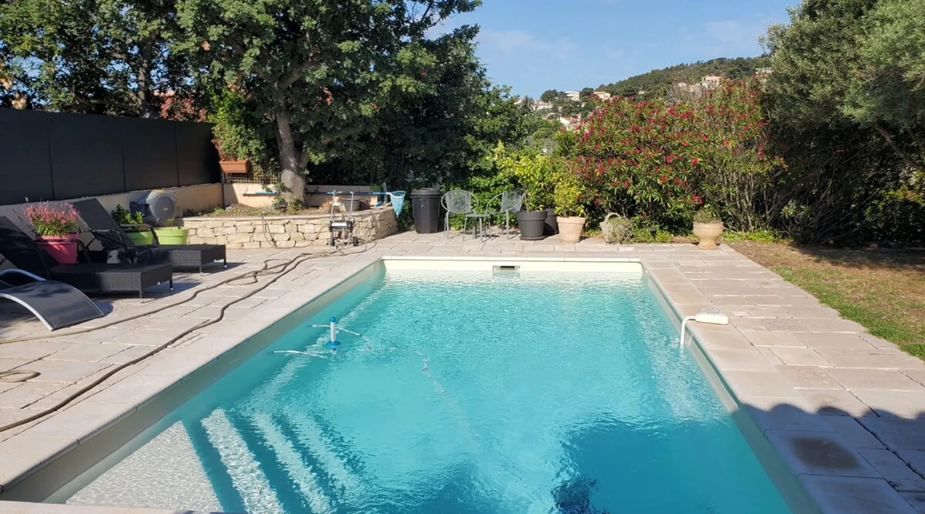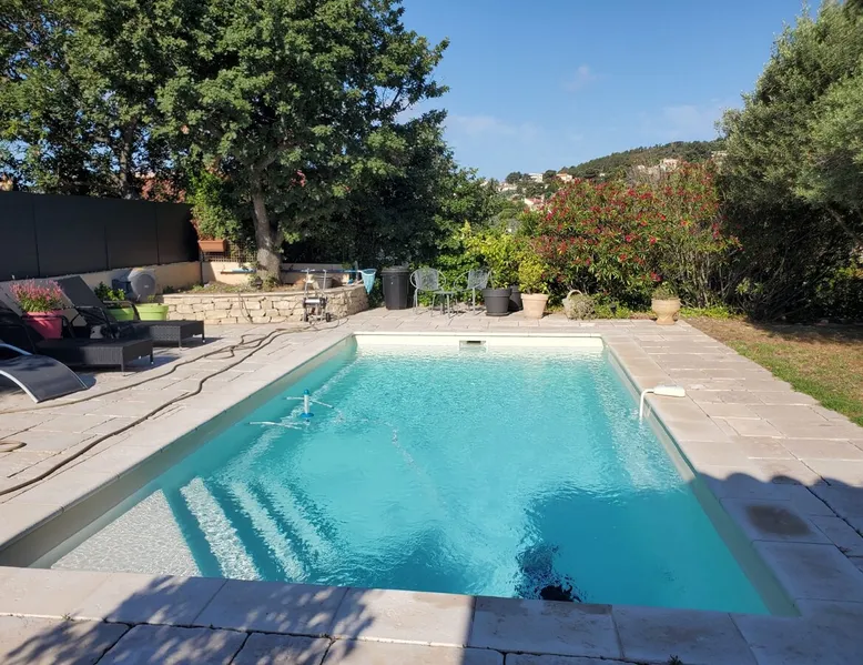 Very nice 2-room new air-conditioned with beautiful outdoor terrace, electric plancha available, possibility to park the car in front. Fully-equipped kitchen with washing machine, dishwasher, microwave, oven and refrigerator, TV, WiFi, linens included, ideal rental for a couple, close to the beaches of Sanary, Six Fours and La Seyne-sur-Mer. Possibility of using the pool from 9:30 a.m. to 12:00 p.m. and from 2:30 p.m. to 7:30 p.m. The space The apartment is air-conditioned, we simply ask tenants to turn off the air conditioning when they are not there and not to throw anything in the toilet except toilet paper Guest access You have access to the pool with defined hours 9am to 12pm and 2pm to 7pm by going around the house Other things to note For garbage, we have three containers with recycling in front of the house