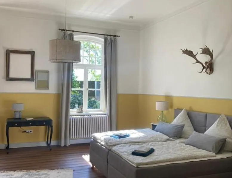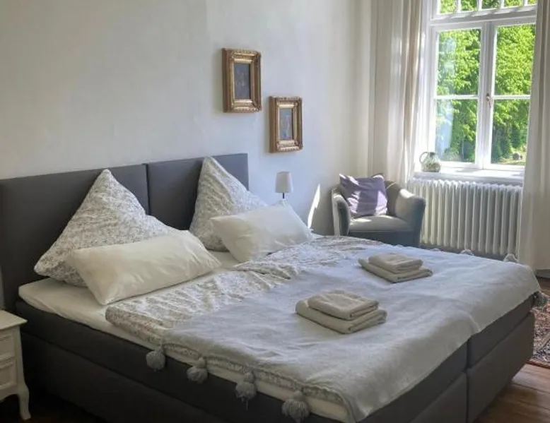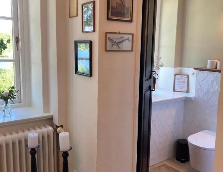 Elegant Accommodations: Gutshaus - Gut Wittmoldt in Wittmoldt offers a bed and breakfast experience with a sun terrace, garden, and free WiFi. Guests enjoy private check-in and check-out services, an outdoor fireplace, and free on-site parking. Comfortable Amenities: The property features a games room, picnic area, and bicycle parking. Additional amenities include bathrobes, garden views, and a work desk. Free WiFi is available throughout the property. Delicious Breakfast: A buffet breakfast is served with vegetarian and vegan options. Guests can enjoy juice, cheese, and fruits each morning. Local Attractions: Located 39 mi from Lübeck Airport, the bed and breakfast is near Ploen Main Train Station (3.1 mi) and Kiel Central Station (17 mi). Activities include walking tours, bike tours, canoeing, hiking, and cycling. The double room features a mini-bar, a coffee machine, a terrace with lake views as well as a shared bathroom boasting a shower. The unit has 2 beds.