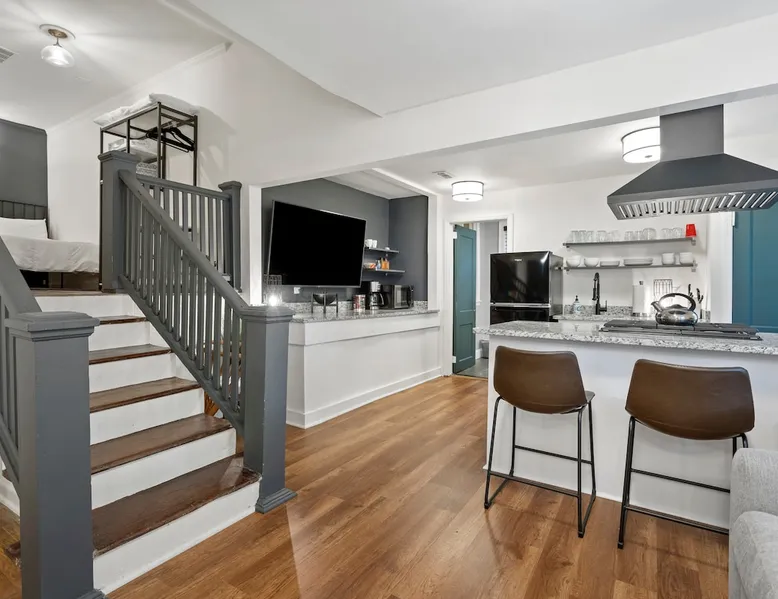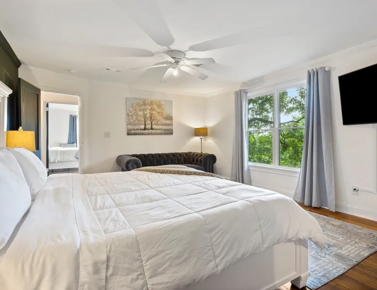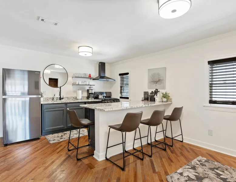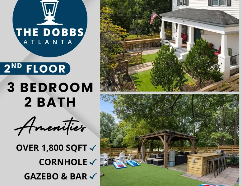 The Dobbs Atlanta Old Fourth Ward - Style & Location Steps from Atlanta Beltline, Piedmont Park, Inman Park, Krog Market, Ponce City Market, & directly on the Freedom Trail. Grab a bike or scooter & go anywhere. Incredible OUTDOOR Living Room Space, Bar, and Games. CENTRAL LOCATION: Piedmont Park - 1.8 Miles Downtown - 1 Mile Midtown - 2 Miles Mercedes Stadium - 3 Miles Walk to 20+ Inman Park restaurants, bars & attractions. Perfect for business travelers, families, groups. FREE PARKING. The space ❤️❤️ SAVE US TO YOUR FAVORITIES LIST. HIT ❤️ AT THE TOP RIGHT. ❤️❤️ Welcome to The Dobbs. This 100-year-old historic home was once resided by John Wesley Dobbs and just a few blocks away from the childhood home of Dr. Martin Luther King, JR. The property is a 2 Story Duplex, each unit has their own entire floor. This listing is for Unit B located on the 2nd Floor of the Property. Enjoy over 2,000 sq feet of space, accommodating up to 6 guests. *** See the additional photos so you can see the floorplan*** Property Amenities: Hardwood Floors, Front & Rear Kitchen (YES it has 2 kitchens), Living / Dining Room, (2) Bathrooms, (2) King Bed Bedrooms, (2) Bed Studio (Open Concept Style with Queen and Full Bed). Smart LG TV’s, & Fiber Fast High Speed Internet connected. INCREDIBLE OUTDOOR AMENITIES FRONT PATIO AREA • City View Front Bar with Seating for 6 • Gas Grill • Covered Front Porch with Lounge Chairs BACKYARD AREA • Gas Grill & Outdoor Fridge • Covered Gazebo with Multiple Fans for Comfort • HUGE Park Bar Area • Multiple Lounge Areas • Outdoor Dining Table • 3 Relaxing Loungers • Outdoor Games - (2) Cornhole Sets & BIG JENGA Living Area Features - • 65" LG Smart TV - Equipped with HULU. Apple AirPlay 2 and Android Connected to easily stream from your phone. • Comfy Sofas (Large L Shape & Sleeper Sofa) • Dining Table for 6 • Wireless Cell Phone Charger CHEF's KITCHEN FEATURES: • Luxury Granite Countertops • Countertop Seating • Samsung Black Stainless GAS Range with 5 Burners • Exterior Exhaust Hood Vents (helps remove smells & smoke while cooking to the outside, not just recirculate in the room) • High Quality Cookware, Plates, & Glasses • J. A. Henckels International Cutlery Set and Silverware • Coffee Maker • Salt, Pepper, Spices, Cooking Spray, and more provided. • Fully equipped with everything a chef could ask for! BEDROOMS 1 & 2: • King Bed featuring Sleep Science Memory Foam Mattress & Soft Sheets for the best night sleep. Built in USB ports for phone & laptop charging. • 55" LG Smart TV • Spacious Work Desk • Ceiling Fan BEDROOM 3 (Queen Bed + Full Bed + Plus Sleeper Sofa): • Featuring Sleep Science Memory Foam Mattress & Soft Sheets for the best night sleep. BATHROOM • Huge Shower with Matt Black Glass Enclosure • Gorgeous Vanity with Gold Finish Faucet • Plenty of bath towels, hand towels, and wash clothes. • Items Provided: hairdryer, soap, shampoo / conditioner, mouthwash, makeup remover pads. Questions? Confused? No worries, please shoot us a message, happy to help! Guest access Guests have exclusive access to the entire 2nd floor of the property. There is a front and a rear entrance for easy access to both the entry and rear outdoor areas. The outdoor amenities are shared access with the 1st floor guests. We do offer the ability to rent the entire property, ask your host for more details. Other things to note *** The Dobbs has 3 available options for guests to book. *** Full 2nd Floor: (THIS LISTING) Full 1st Floor (3 Bedroom, 2 Bath): https://www.airbnb.com/rooms/47329821 FULL PROPERTY (6 Bedroom, 4 Bath, 12 Guests): https://www.airbnb.com/rooms/47248948 * We DO NOT accept guests looking to host ANY parties, gatherings, filming/photo shoots, etc. * Absolutely NO smoking anything, NO vaping, NO smoke of any kind inside. Smoking is permitted outside in any of the common areas. * NO visitors are permitted at the property at any time. ONLY registered guests are permitted at the property at any time. Registration Details STRL-2022-01182