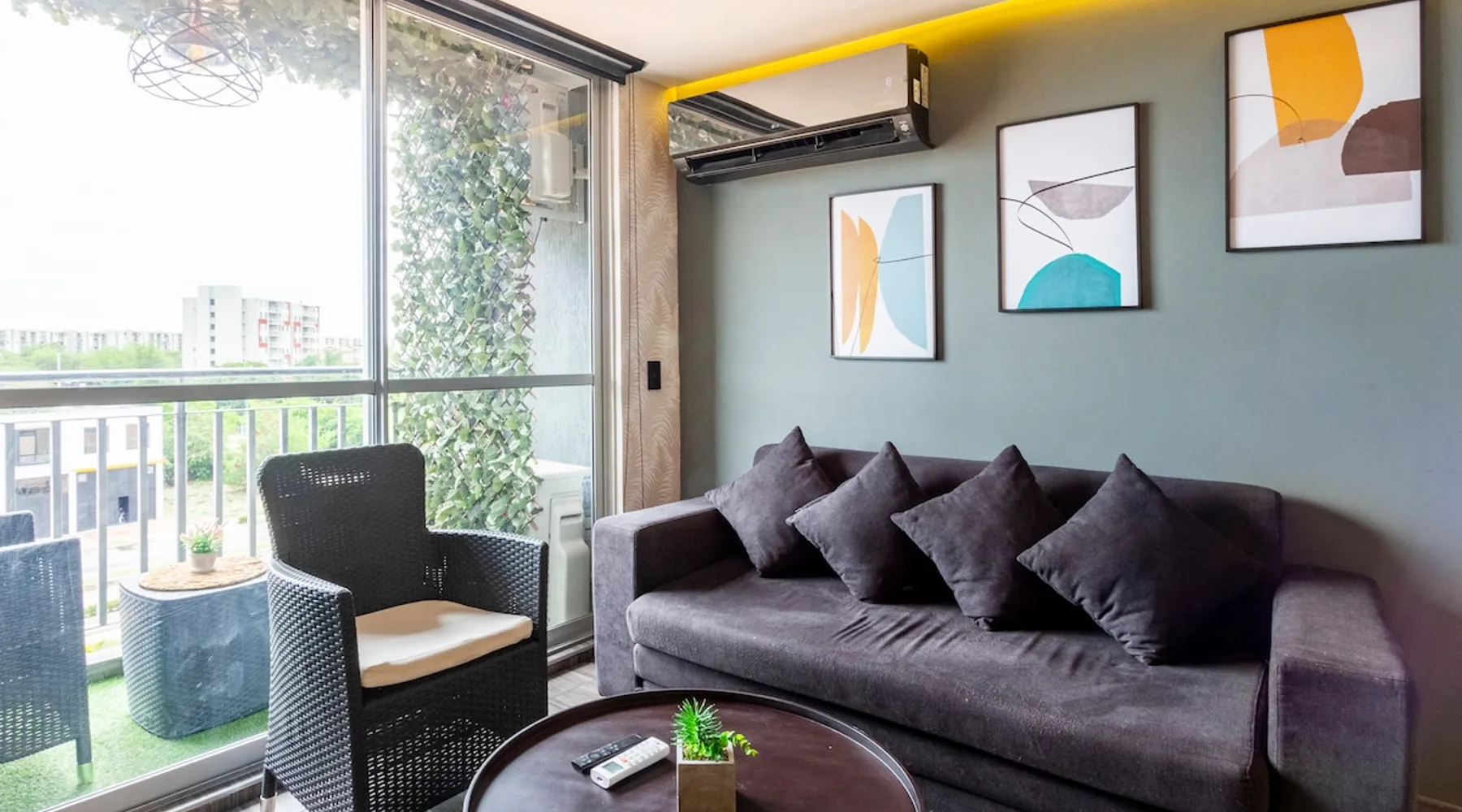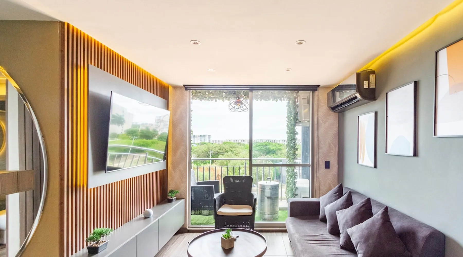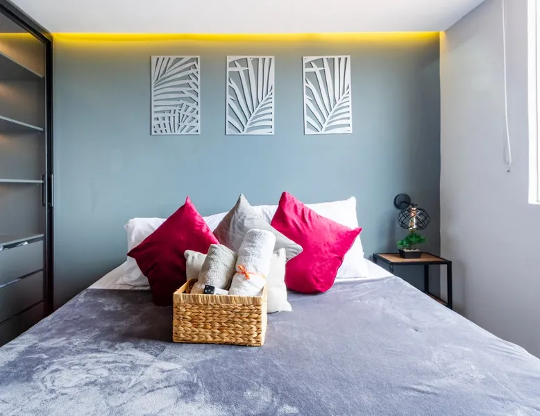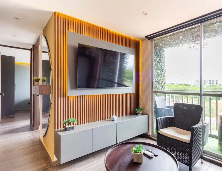 Smart apartment in Girardot-Ricaurte, located in the Sun Aqualina complex with swimming pools, BBQ, free parking, security, internet, with everything you need for a few days of peaceful rest, next to family, friends or as a couple, close to several restaurants, bike path, supermarkets, attentive to what you need during your stay, 5 minutes from Girardot. Take advantage of the 15% discounts per week. You can work, study, play sports, and enjoy the pool at the same time. The space The apartment is equipped with the latest smart home technology with easy on and off functions with voice commands, it has a living room, bar table, luxury kitchen, 2 bedrooms with air conditioning, 1 sofa bed, 2 bathrooms, and a themed balcony, In the apartment you will find board games such as: Uno, Parcheesi, Chess, Dominoes, Jenga, etc. and a video game console, Also a coffee maker section so you can make your coffee or tea at no additional cost, The closed complex has common areas (micro-soccer field, 2 swimming pools, 1 swimming pool for adults and one for children, communal parking lots, it has a beach volleyball court and green areas. Keep in mind that the pools are closed one day a week for cleaning (this day is usually Tuesday but the complex can change the day without notice). The Club House has a Ping Pong table, Boccia, darts, and board games. The apartment is located on the 6th floor and has a BBQ grill available. The towers have an elevator. Other things to note If you want to get around the city, we have a daily motorcycle rental service. Ask about availability when booking. Registration Details 172676