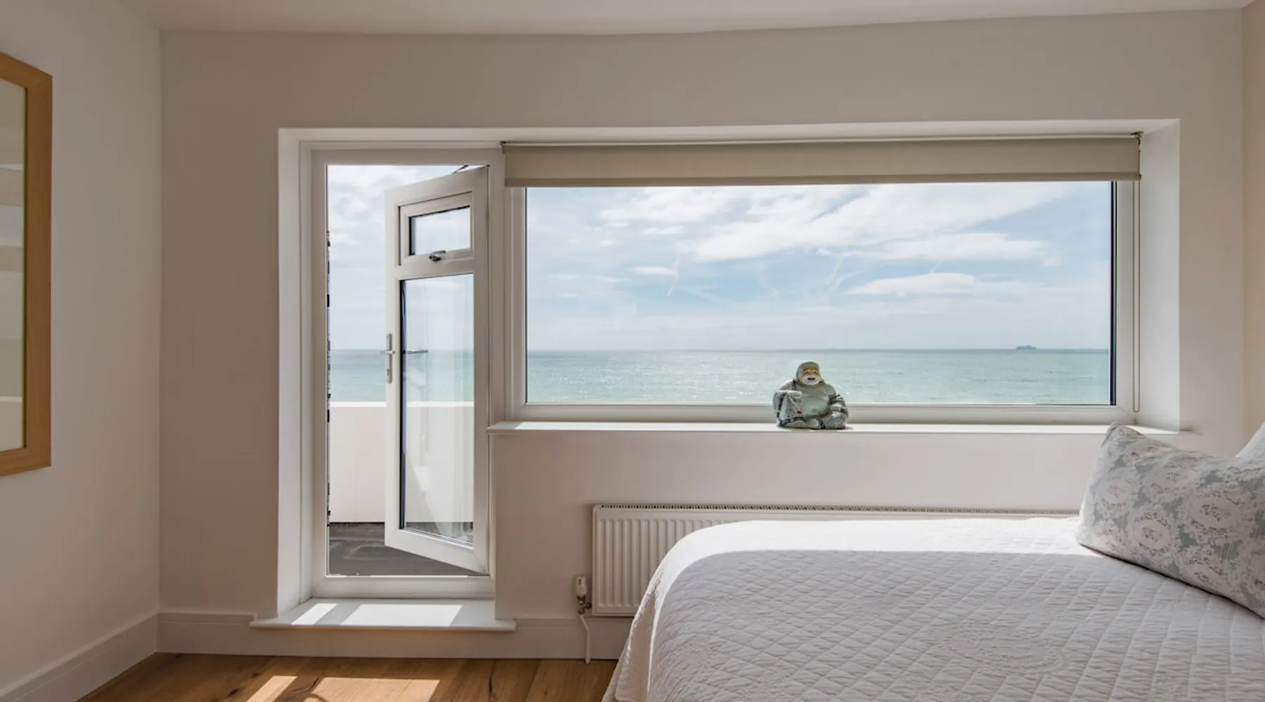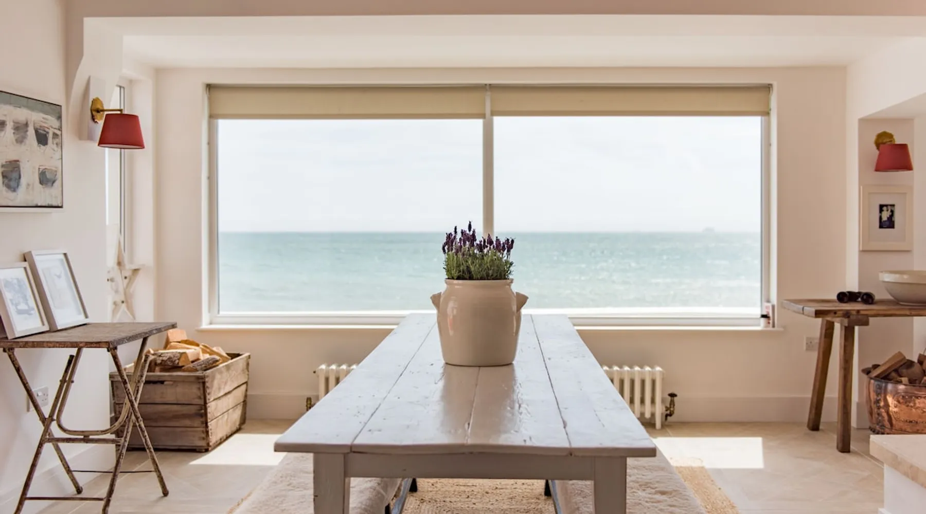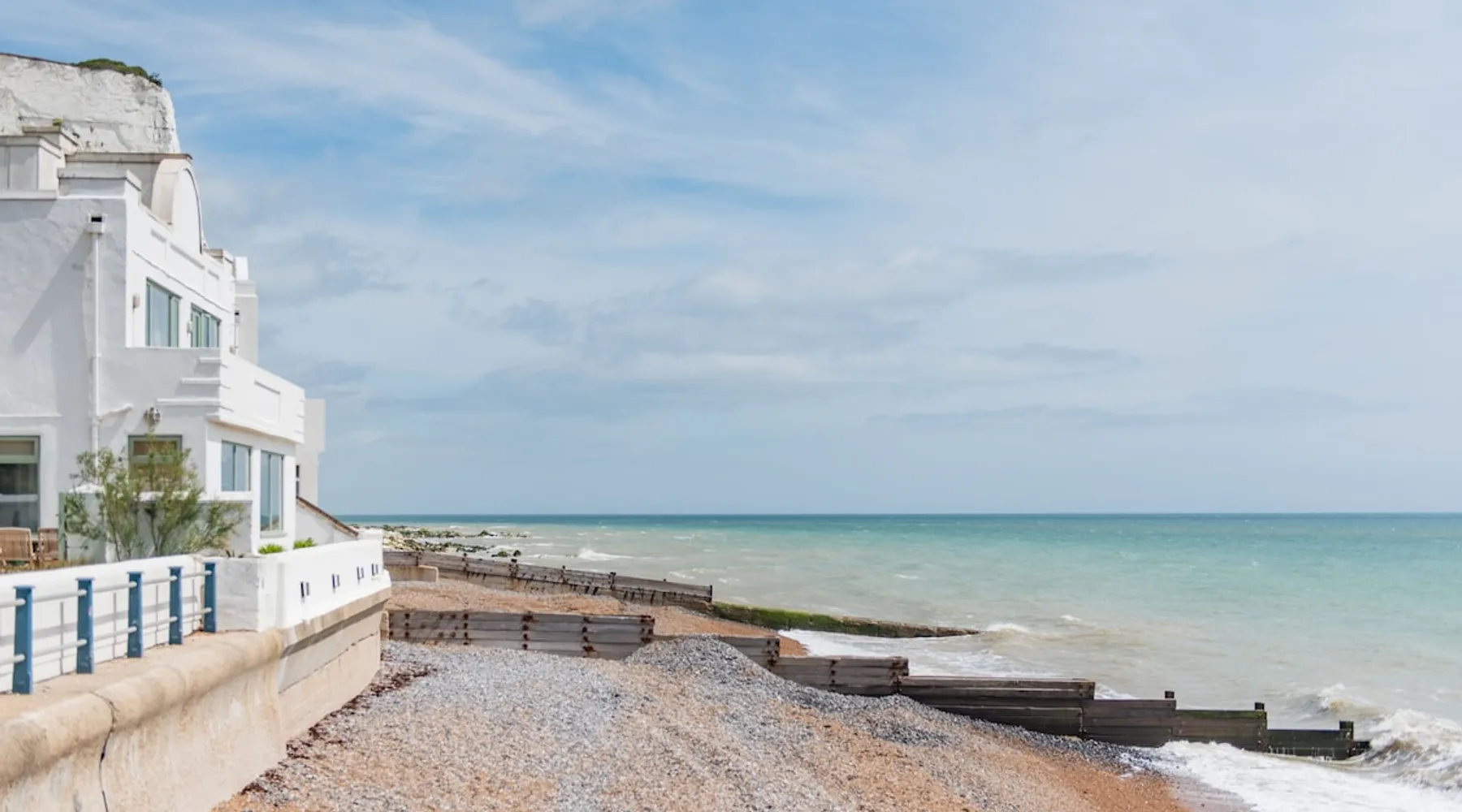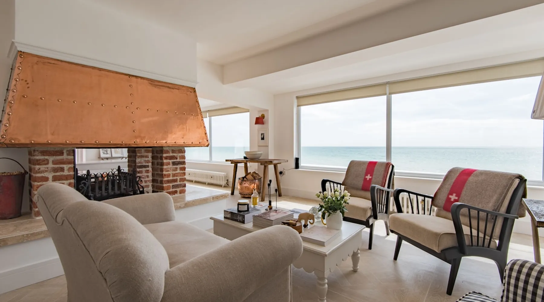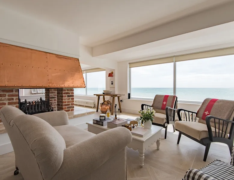 The most stunning location of any house on the South Coast Wrap around sea views A balcony’s width from the beach An ideal family home Uninterrupted, panoramic view of the English Channel Perfect for guests looking to stay in unique accommodation The space Sea Purse was completely renovated in 2022 and is beautifully decorated throughout with great care and consideration given to the decor and furnishings to reflect its coastal position. With three bedrooms and two bathrooms, this property sleeps 8. Ground floor Front door leads into large hallway Sitting room Sitting room - wonderfully large with open fire in the middle. Seating area with sofa/armchairs to enjoy the panoramic sea views. Dining area with seating for 6 Kitchen Kitchen with island unit, double oven, gas hob, American style fridge/freezer, Magimix coffee machine, dishwasher, door to lower balcony Utility room Utility room with washing machine and tumble dryer Snug/children's TV room/library Sofas, chairs, Smart TV, bookcases Cloakroom with wc and basin Outside Large wrap around balcony with sea views, dining table and seating for 8 guests First floor Bedroom - sleeps 2, Kingsize bed, with sea views and balcony, en-suite with copper bath, basin and wc Bedroom - sleeps 2, Double bed, with sea views and balcony Bedroom - sleeps 2, small Double (4ft) bed Bedroom - sleeps 2, small Double (4ft) bed Shower room - with walk-in shower, basin and wc Parking Allocated parking for two cars No pets Guest access Guests have access to the entire property. Other things to note Things You Need to Know Towels and linen are provided Wi-Fi access Central heating throughout