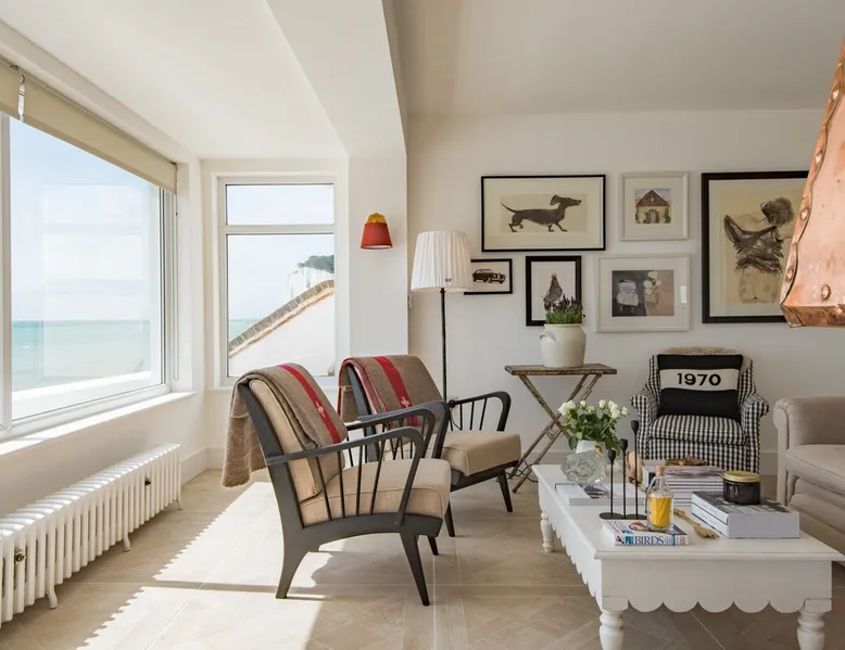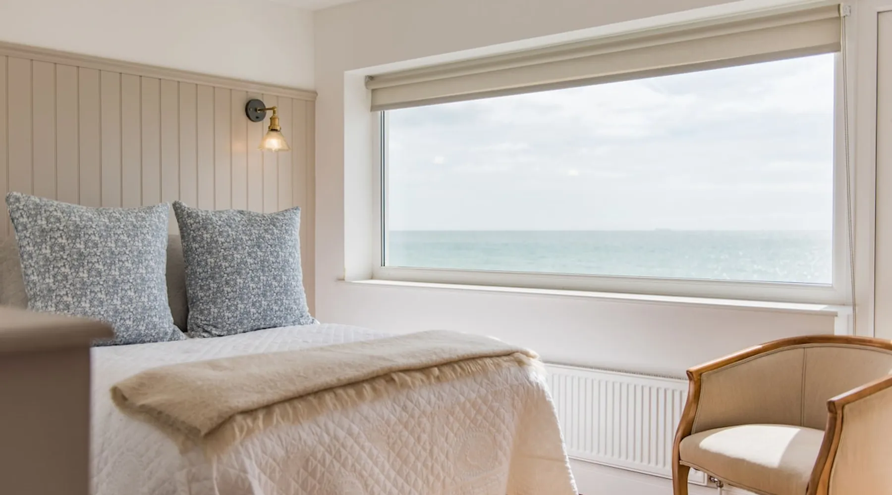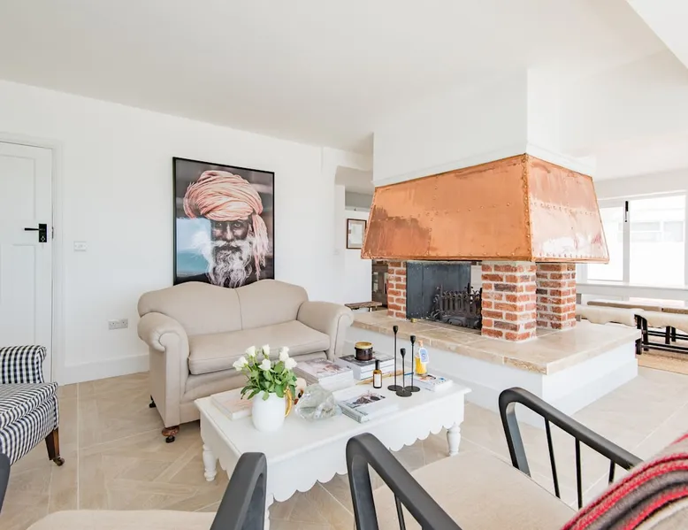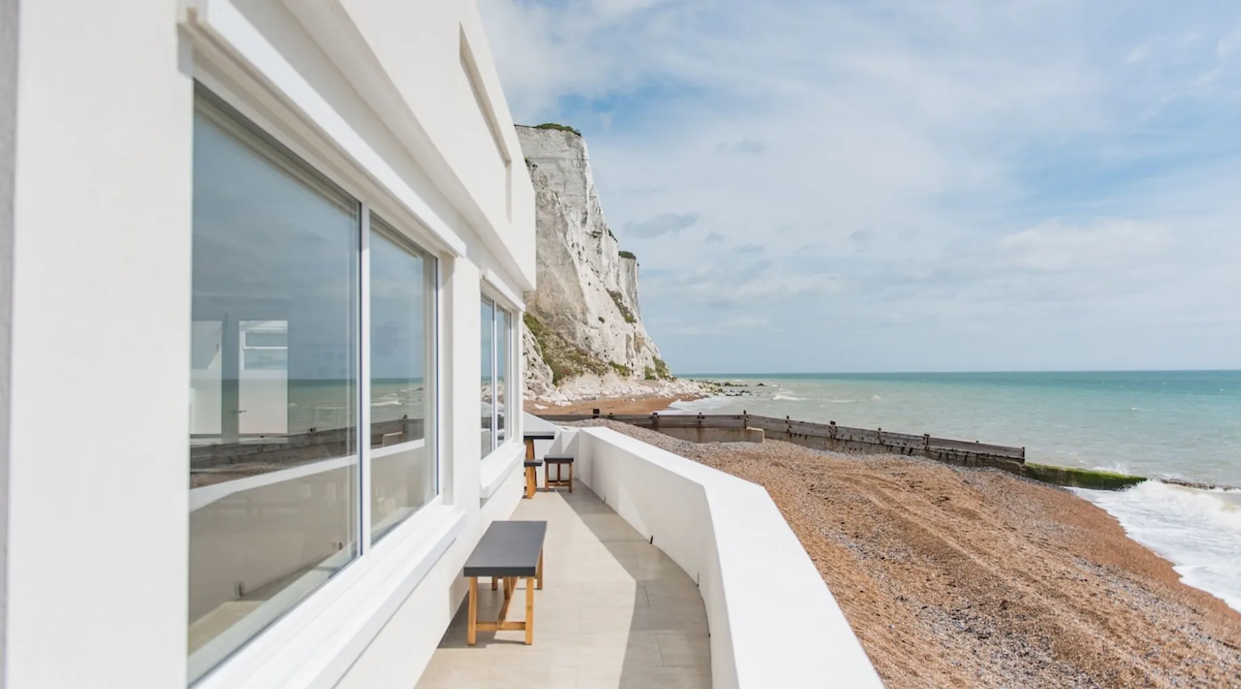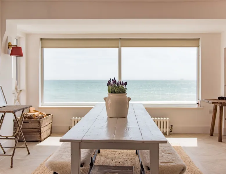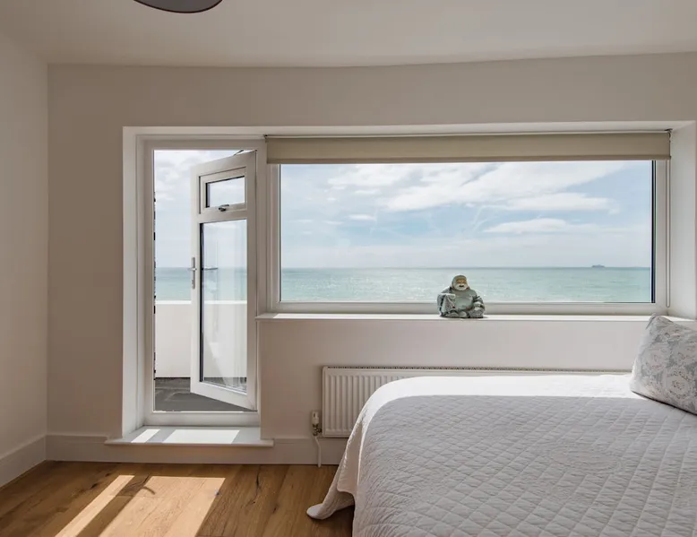 The most stunning location of any house on the South Coast Wrap around sea views A balcony’s width from the beach An ideal family home Uninterrupted, panoramic view of the English Channel Perfect for guests looking to stay in unique accommodation The space Sea Purse was completely renovated in 2022 and is beautifully decorated throughout with great care and consideration given to the decor and furnishings to reflect its coastal position. With three bedrooms and two bathrooms, this property sleeps 8. Ground floor Front door leads into large hallway Sitting room Sitting room - wonderfully large with open fire in the middle. Seating area with sofa/armchairs to enjoy the panoramic sea views. Dining area with seating for 6 Kitchen Kitchen with island unit, double oven, gas hob, American style fridge/freezer, Magimix coffee machine, dishwasher, door to lower balcony Utility room Utility room with washing machine and tumble dryer Snug/children's TV room/library Sofas, chairs, Smart TV, bookcases Cloakroom with wc and basin Outside Large wrap around balcony with sea views, dining table and seating for 8 guests First floor Bedroom - sleeps 2, Kingsize bed, with sea views and balcony, en-suite with copper bath, basin and wc Bedroom - sleeps 2, Double bed, with sea views and balcony Bedroom - sleeps 2, small Double (4ft) bed Bedroom - sleeps 2, small Double (4ft) bed Shower room - with walk-in shower, basin and wc Parking Allocated parking for two cars No pets Guest access Guests have access to the entire property. Other things to note Things You Need to Know Towels and linen are provided Wi-Fi access Central heating throughout