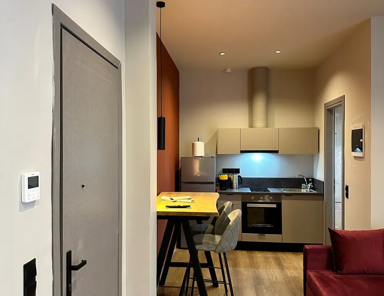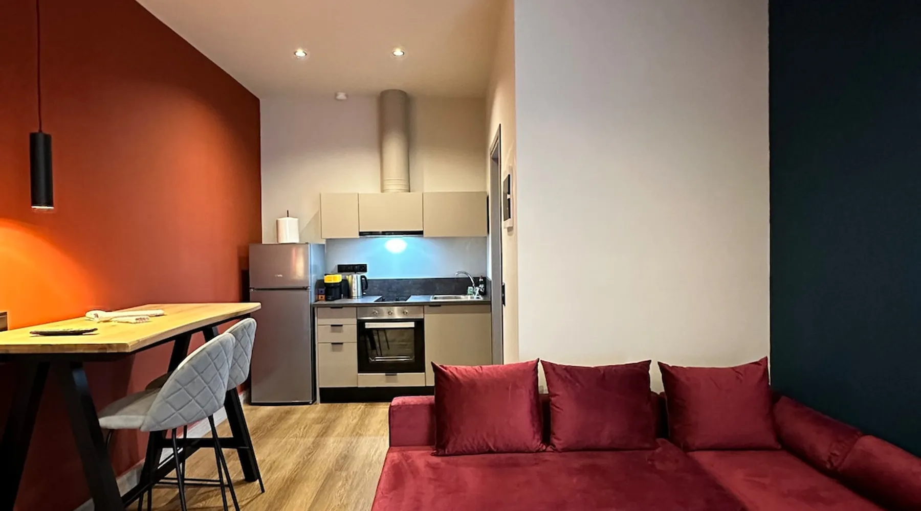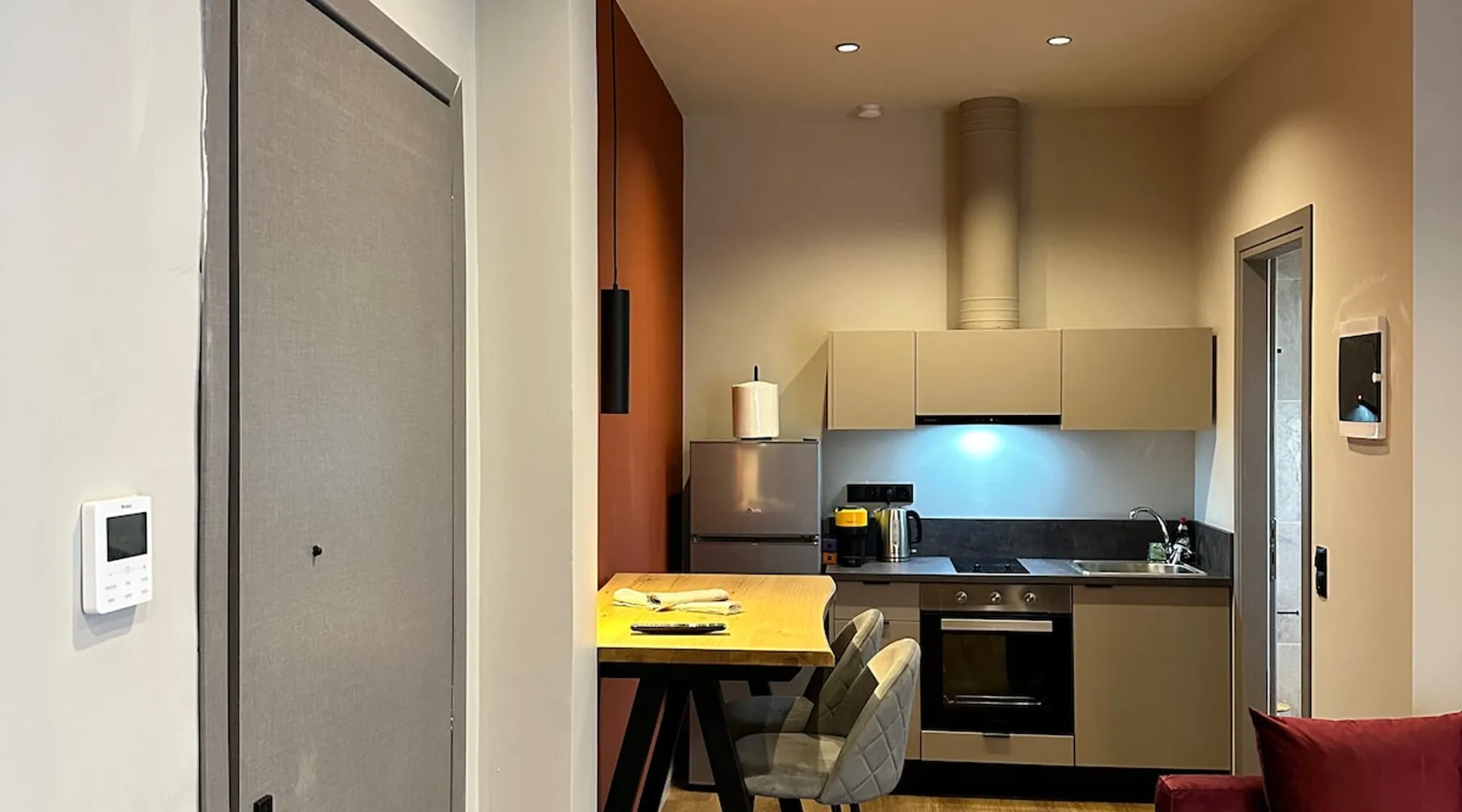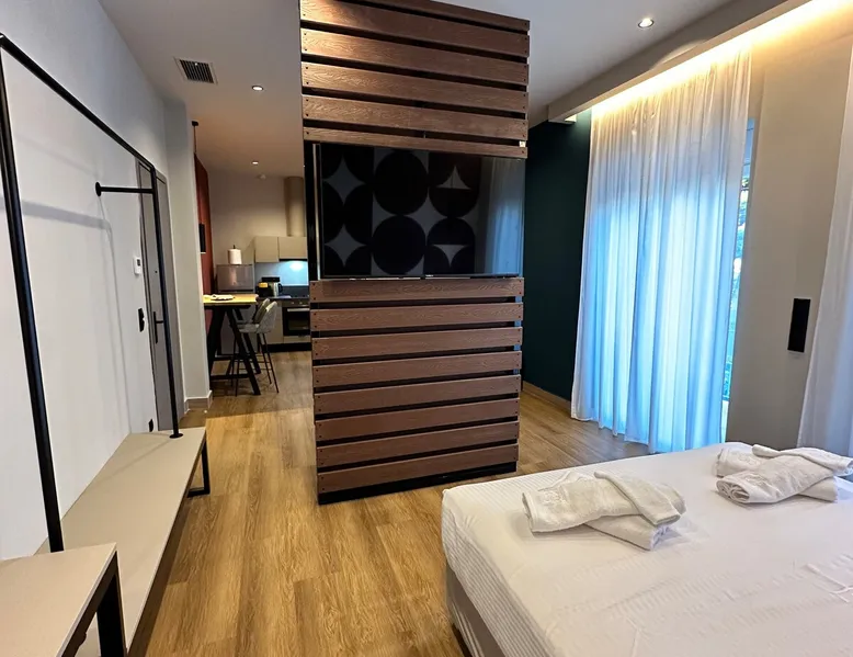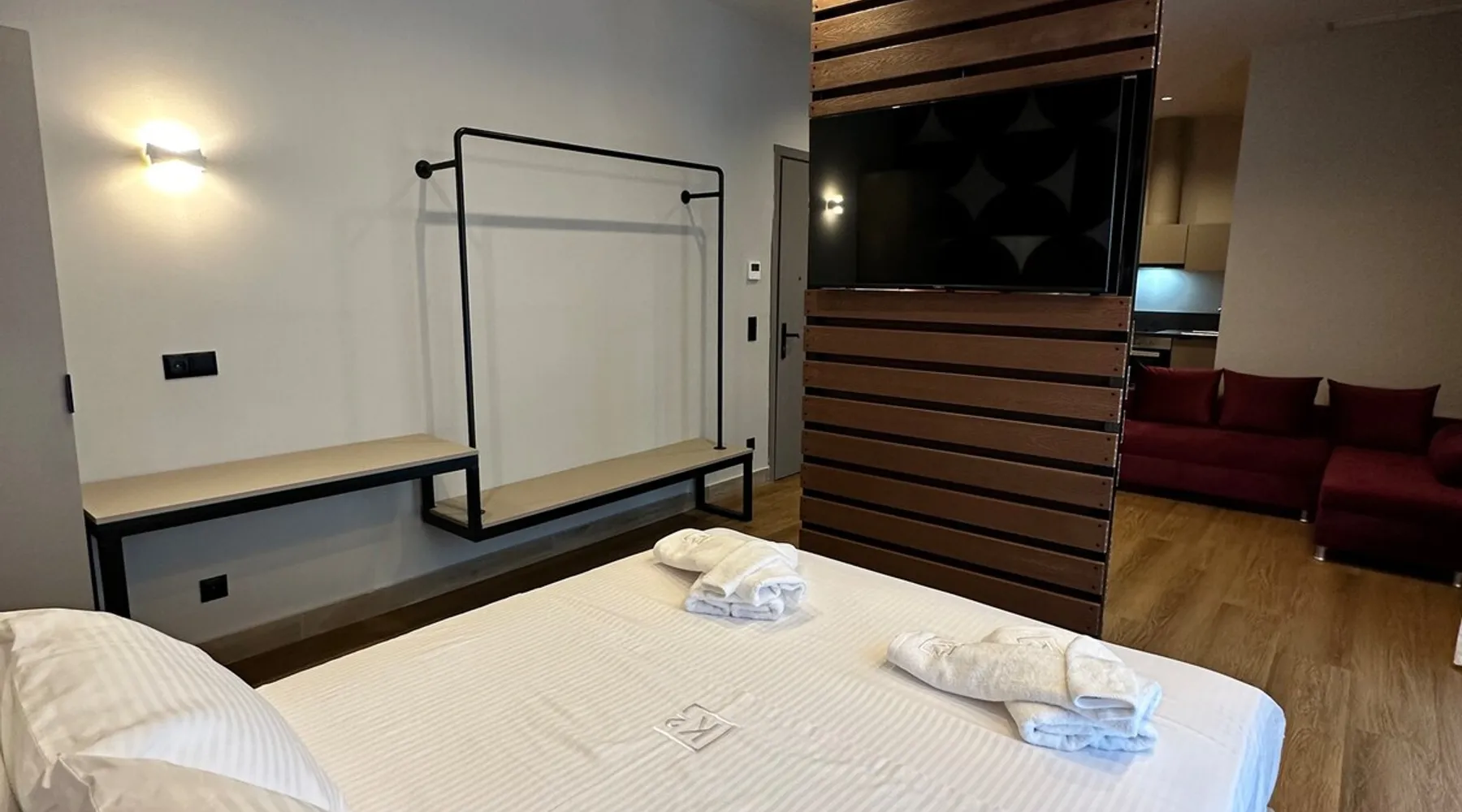 K2 Suites Kalamata is a 7-Suite boutique hotel, which is located at the heart of Kalamata historic city center. Super stylish suites, located in a very quiet neighborhood in the city center, where you can move to the city of Kalamata on foot. Suite 6, has a double bed, open closet, fully equipped kitchen and bathroom, 55” TV and a private balcony with historic center view. It also has a big sofa that can be used as a double bed. Suite 6 has ultra-fast WiFi with speeds exceeding 500Mbps Registration Details 00002212452