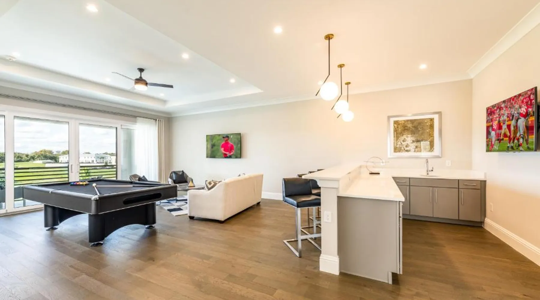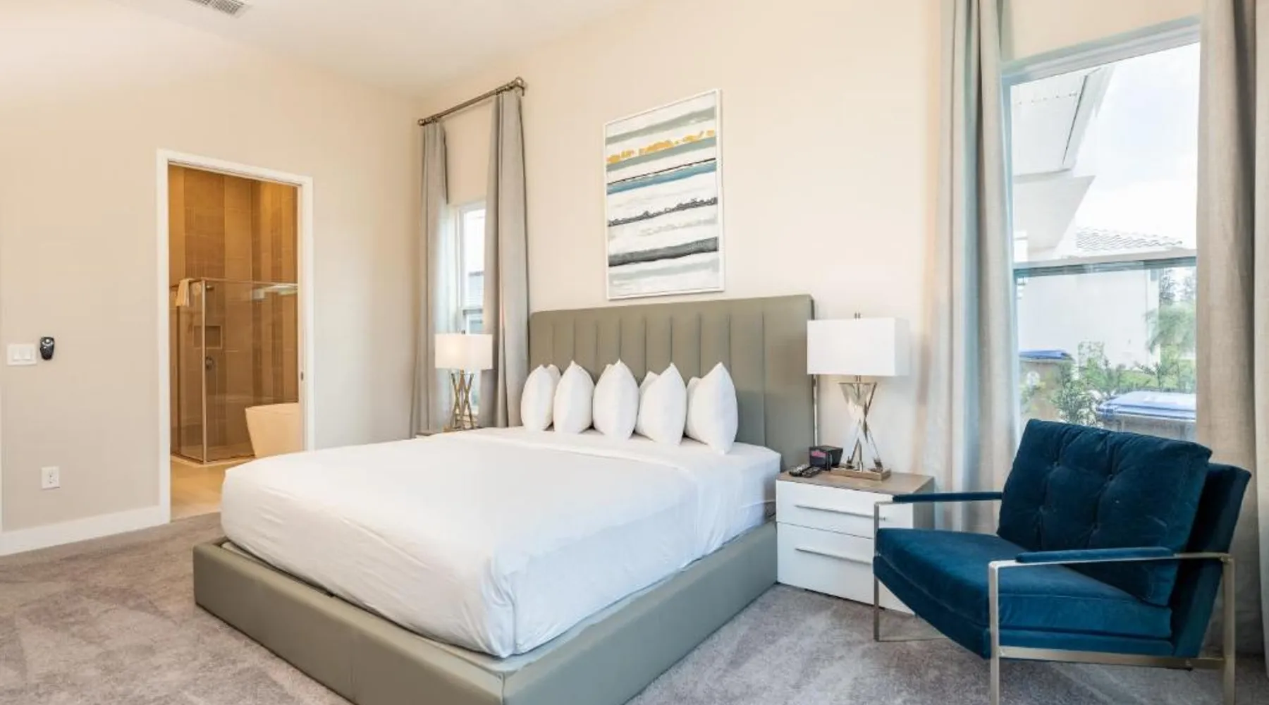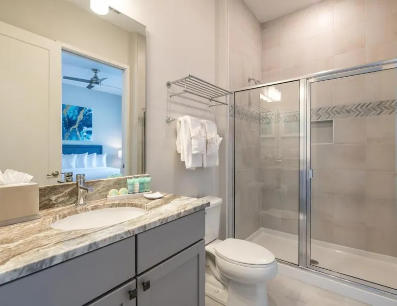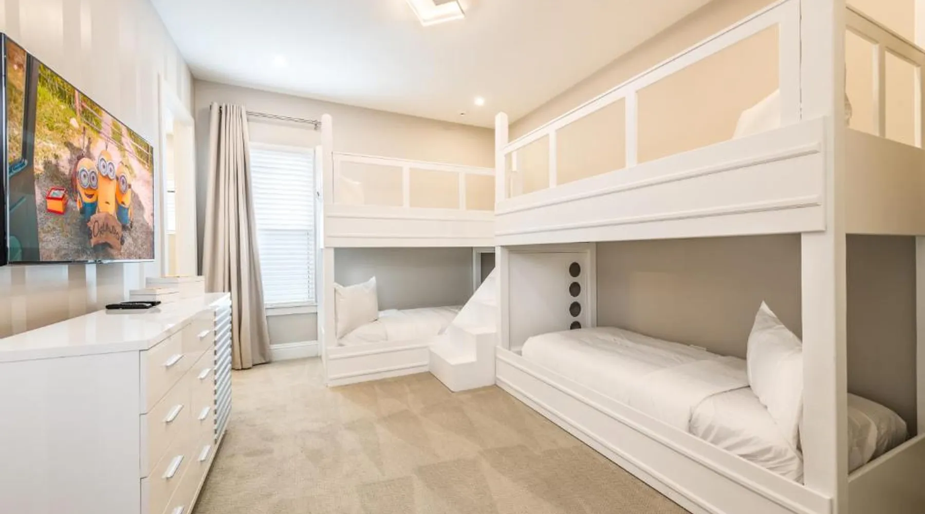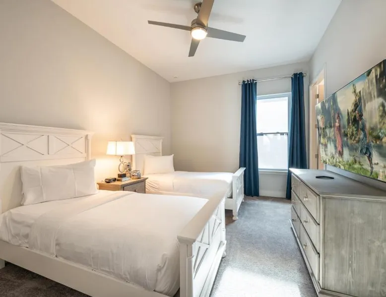 Elegant Accommodations: The Bear's Den Resort Orlando in Kissimmee offers a 5-star holiday home experience with an infinity swimming pool, fitness center, restaurant, bar, and free WiFi. Comfortable Amenities: Guests enjoy a hot tub, concierge service, minimarket, waterpark, outdoor play area, pool bar, outdoor seating, family rooms, full-day security, room service, children's playground, and bike hire. Dining Options: The family-friendly restaurant serves seafood, steakhouse, and sushi for lunch and dinner, complemented by cocktails. Prime Location: Located 27 mi from Orlando International Airport, the resort is near attractions such as Disney's Animal Kingdom (8.7 mi) and Disney's Hollywood Studios (9.9 mi). The spacious villa features shared bathroom equipped with a bath and a shower. The unit offers 10 beds.