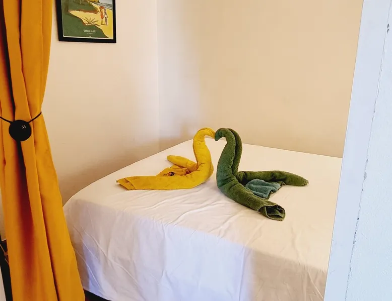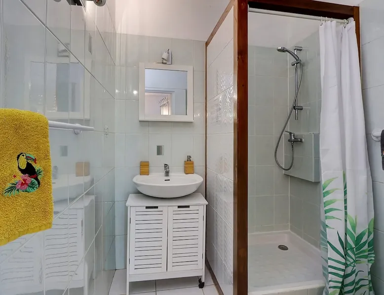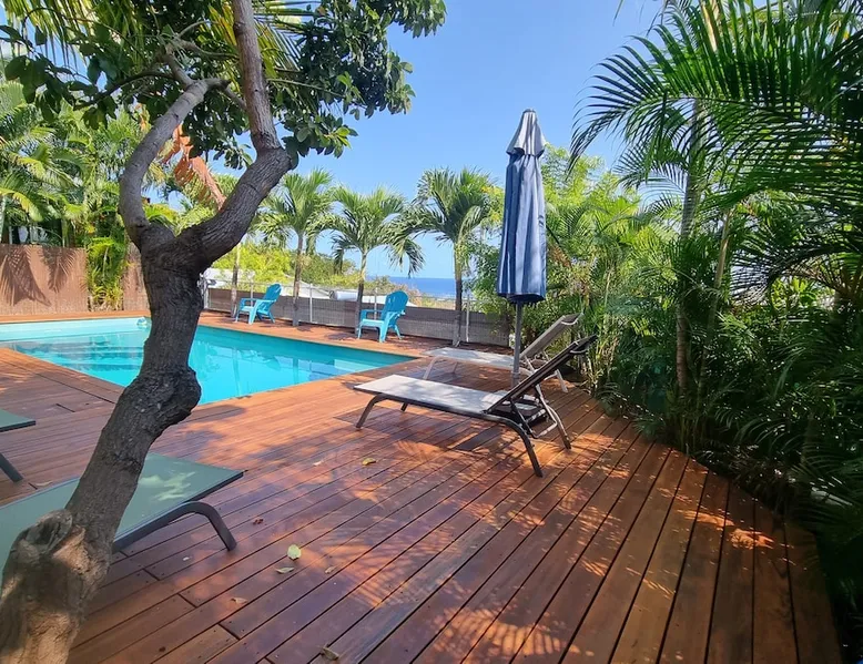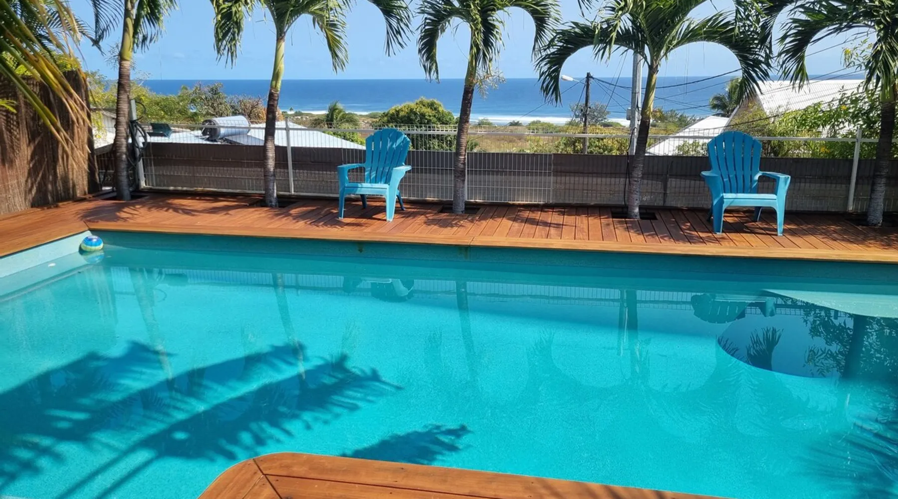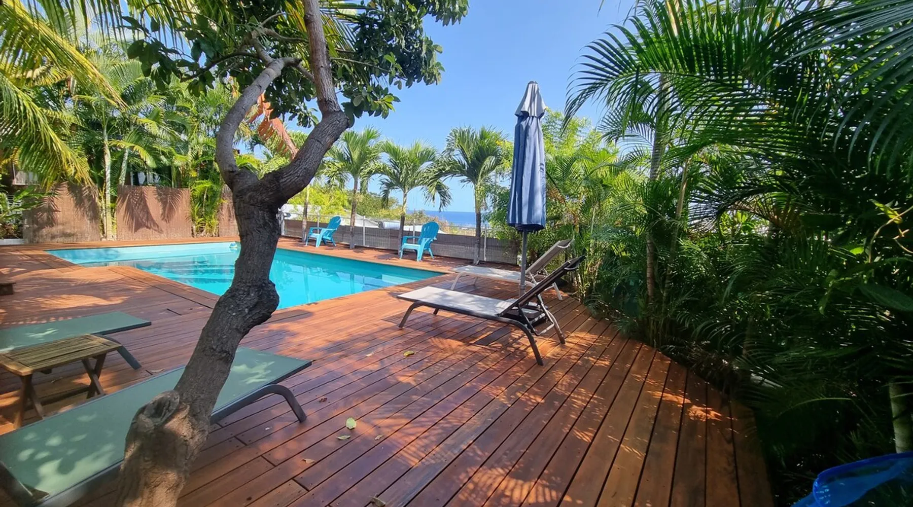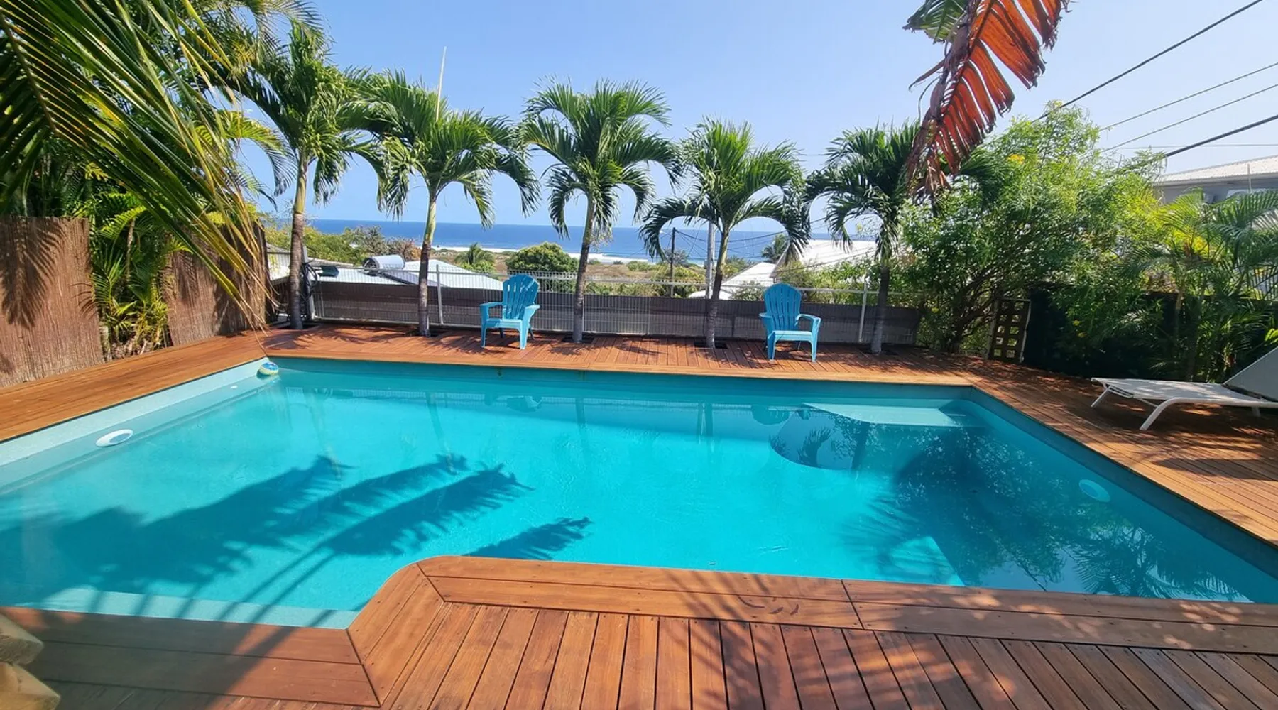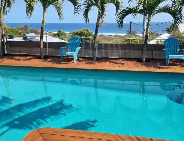 Welcome to Nids d'Élo, in Saint-Leu🌴! You will be in a quiet tropical garden, facing the sea with access to a shared salt pool between three studios. It is the ideal place to relax after a day at the beach, a hike or a discovery of the treasures of Reunion Island. You will enjoy the friendly atmosphere, the surrounding greenery and the birds chirping in the early morning. The space Your functional and comfortable studio is equipped with: - bright living room with kitchenette (gas fires, microwave, dishes, coffee maker, kettle), - 140 x 190 double bed - sofa bed, - air conditioning - ceiling fan, - TV, - bathroom with shower cubicle, - separate bedroom area for more privacy, - slatted terrace with sea view, perfect for breakfast while listening to the birds🐦. ==> shared washing machine between the studios, for more comfort during your stay ==> Library ==> children's books and games Guest access Guests have private and independent access to the listing. You can freely enjoy all the spaces available. Parking is available within the property to facilitate your stay. Other things to note - The accommodation is non-smoking inside. - Wi-Fi connection with fiber optics, ideal for working remotely or staying connected. - Parties and celebrations are not allowed in order to preserve the calm and serenity of the premises. - A cleaning fee is included to guarantee a clean and welcoming accommodation upon arrival.