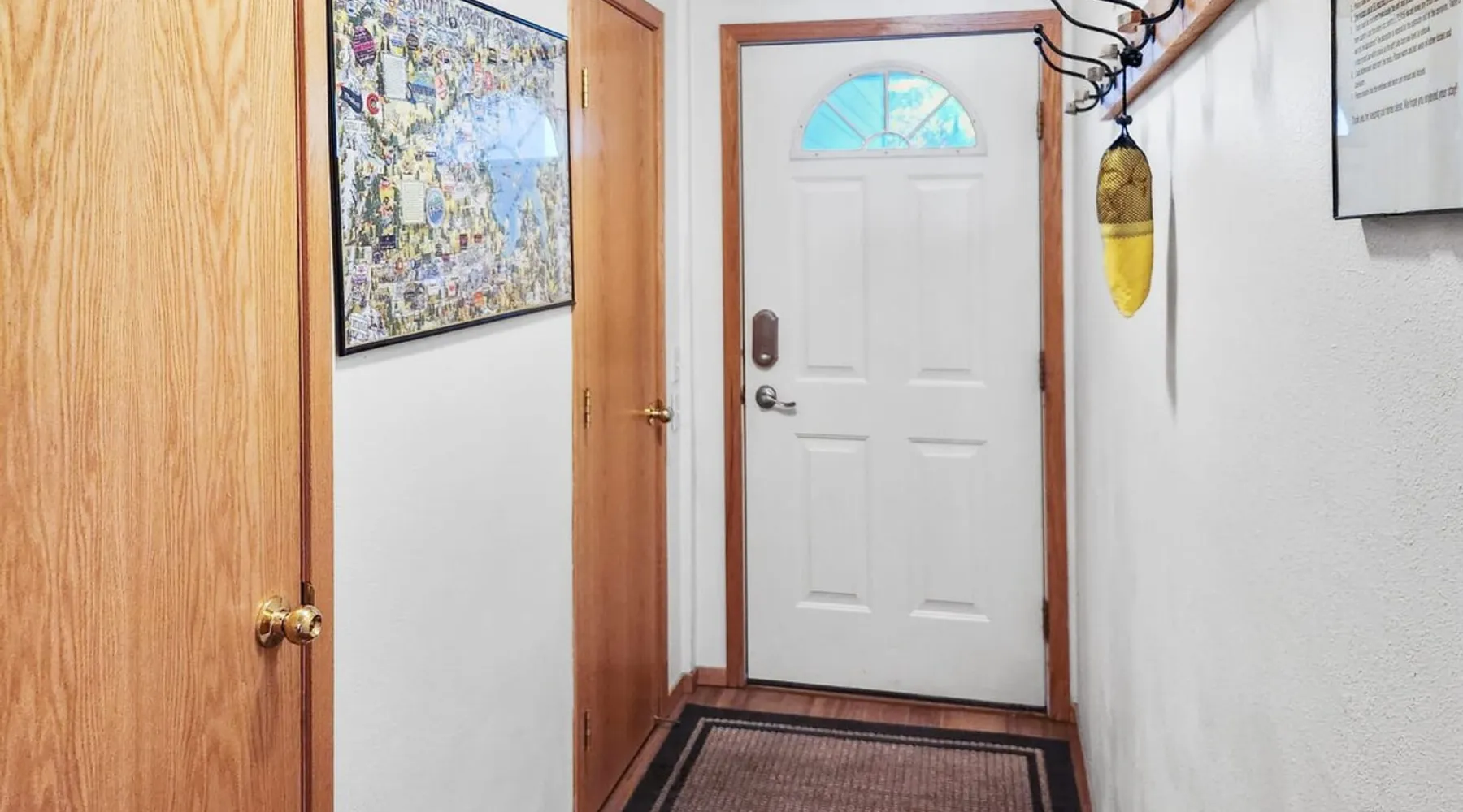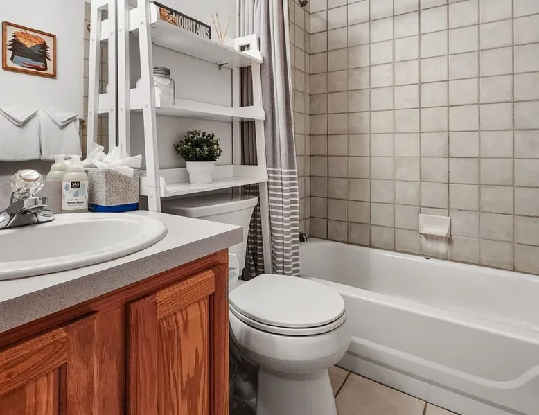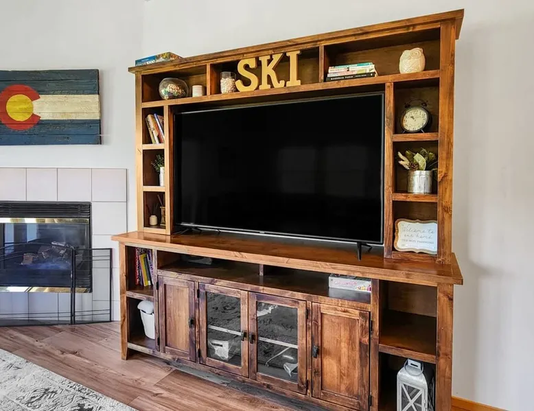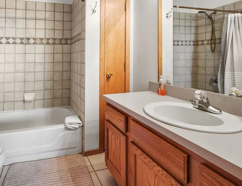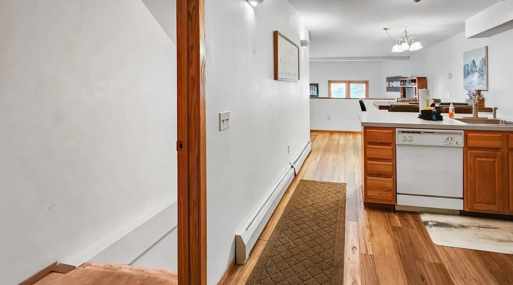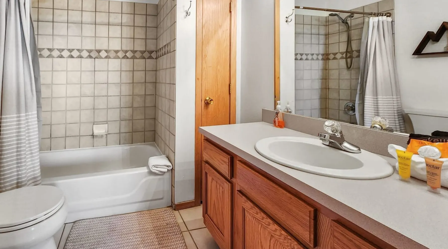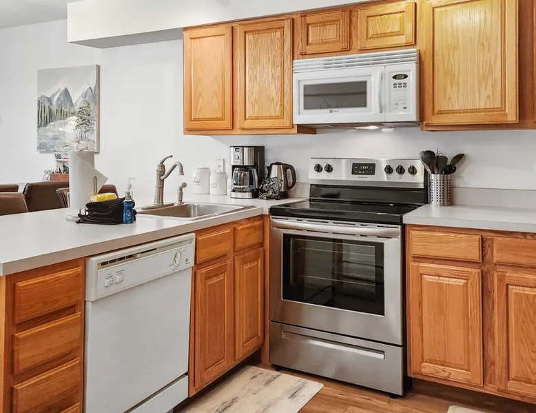 Looking to escape the city life for a mountain retreat? This home is for you! This family-friendly 4-bedroom townhome is the perfect launching pad for endless adventures, placing you near several hiking trails & minutes from a FREE bus stop connecting you to Breck & surrounding areas. After a busy day of adventures, relax & recharge in this inviting home where you will find comfortable bedrooms, an open layout perfect for groups, and a deck boasting impressive mountain views. The space This 4-bedroom, 2.5-bathroom, townhome is the perfect welcoming escape after a busy day on the mountain. With three levels of living space, the family-friendly home has enough space for up to 14 to spread out for a comfortable stay. Enjoy the peaceful surroundings from this home, which is an end unit with a private deck tucked next to the surrounding trees. You are going to love stepping out here and taking in the impressive mountain views! When you arrive at the home, you will be greeted by an entryway that includes coat hooks for storing your outdoor gear, a half-bathroom, and access to the attached garage. The entryway opens up to the main living space, where you will find an open kitchen/dining room/living room, providing an ideal space to stay connected with your group. You will first come to the fully equipped kitchen, where you will find everything you need to prepare delicious meals. The kitchen includes stainless steel appliances, a full range of basic cookware, and a kitchen bar with two bar stools providing a cozy place to grab a snack or keep the chef company. On the other side of the kitchen bar is the dining room, where you will find a large table with seating for 10. The flow of this space makes it easy to bring hot dishes to the table for family-style meals with your loved ones! A sunken living room is situated just a few steps down from the dining area, this bright space is the perfect hang-out spot for your group! Two large windows and French doors fill the space with natural light and beautiful views over the surrounding trees and mountains. In the living room, you will find a large couch, a love seat, and a corner table with bench seating providing plenty of seating accommodations for your group. Curl up around the gas fireplace and watch a movie on the 65” Smart TV, or just enjoy taking in the views from this room. A dynamic space ideal for entertaining and relaxing! From the living room, you can step out to the deck where you will find a BBQ and two patio chairs, so you can sit back and enjoy the great views of Ptarmigan Mountain and Silverthorne. When you are ready to settle in for the night, you will find three of the four bedrooms located on the upper level of the townhome. Tuck in for a good night’s rest in the first bedroom where you will find a charming space with an exposed wood beam, two large windows overlooking the trees, matching nightstands, and a queen-size bed. Adjacent to the first bedroom is a second bedroom, which also includes a queen-size bed. Down the hall from the first two bedrooms is a full bathroom for shared use and features a single-sink vanity with under-the-sink storage space and a bathtub/shower combo. Rounding out the upper floor is a master suite tucked away at the end of the hallway, providing a private and quiet space for you to get a good night’s rest. This well-decorated room features a comfortable king-size bed with matching nightstands and lamps, 2 standard-size closets, and an ensuite bathroom with a bathtub/shower combo. Brightening up the room is a large north-facing window that boasts beautiful views over Ptarmigan mountain and Silverthorne that you can enjoy right from bed! On the basement level of the home, you will find an open and dynamic fourth bedroom. The room covers the basement level in an open layout and includes a workspace with a desk and a chair and a cozy play area with a Smart TV and board games, kid books, and puzzles. This room is perfect for sharing or for the young travelers in your group! The room boasts ample sleeping space with THREE twin-over-queen bunk beds! Each bunk bed includes drawers for storage space, and the bedroom enjoys views of Ptarmigan Mountain and Silverthorne. A utility room is also located in the basement, in which you will find a washer and dryer, so you can easily keep up with any laundry needs during your stay. STR License number: STR21-01759 Guest access Guests will have access to the entire townhome including a private back deck. Guests will also have access to 4 parking places, there is 1 parking place in the attached garage suitable for a small SUV or car, 1 parking place in front of the garage, and 2 parking places in a shared parking lot located across the street from the home. Other things to note Please note that, like most homes in Breckenridge, this home does not have A/C. Please keep in mind that if you plan to ski, you are responsible for verifying the ski resorts' opening and closing dates. Registration number STR21-01759