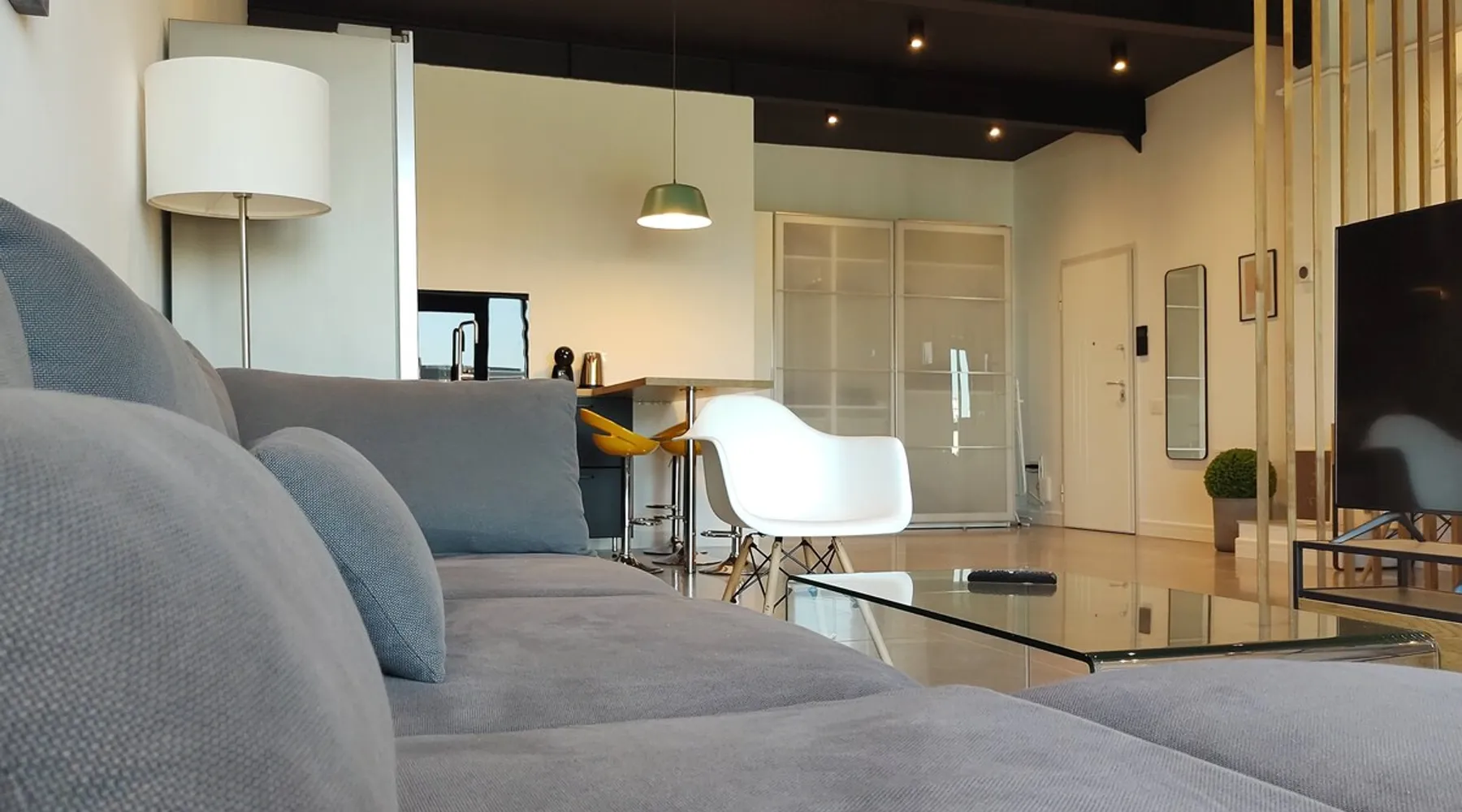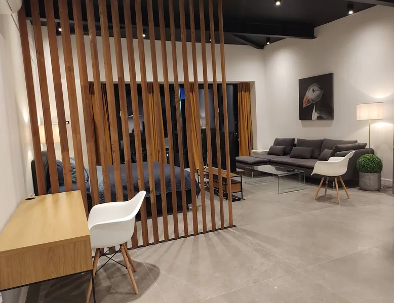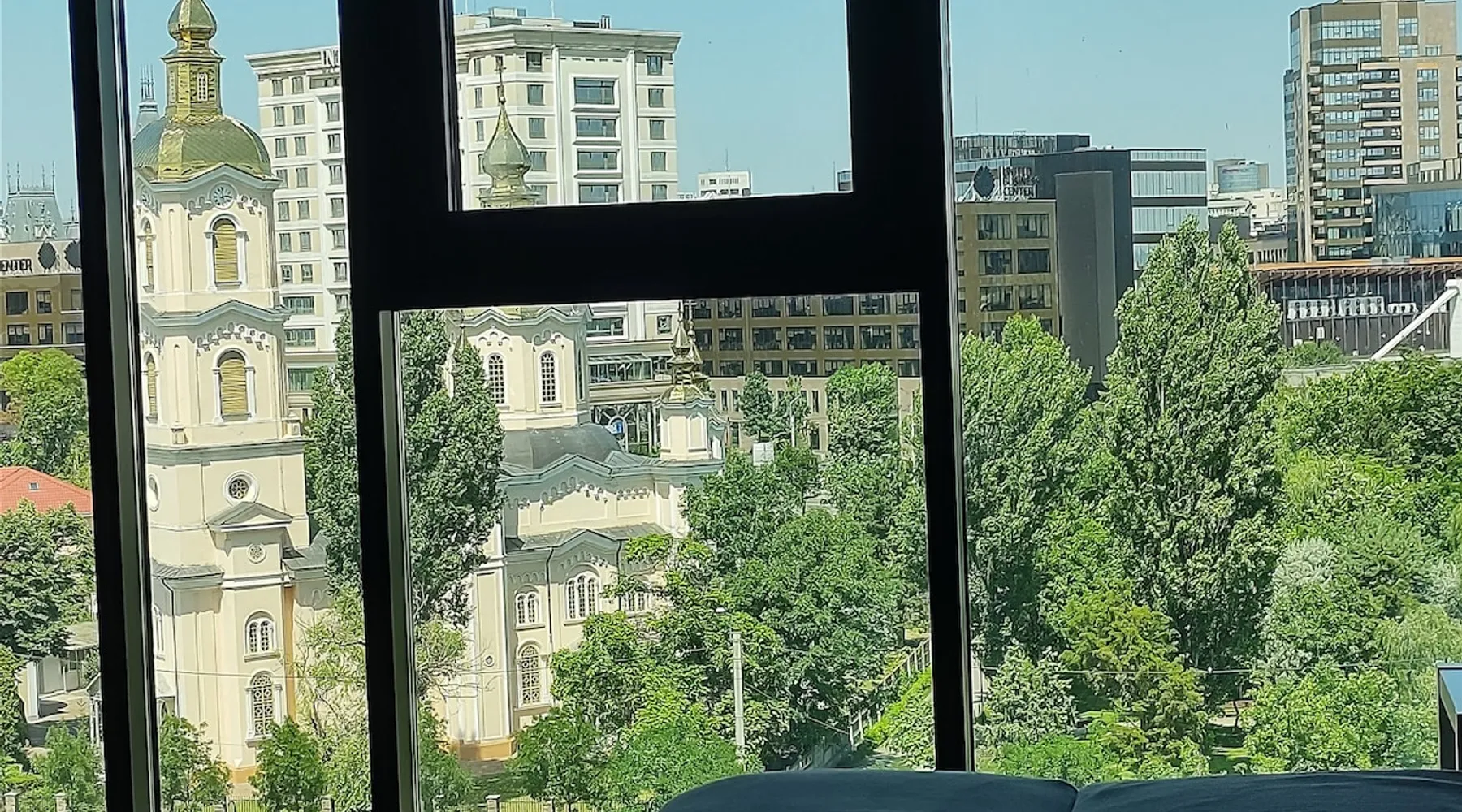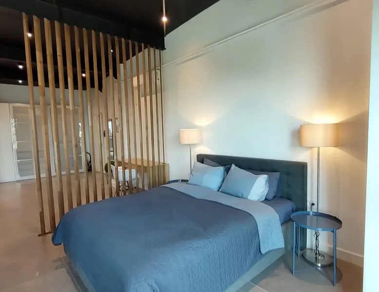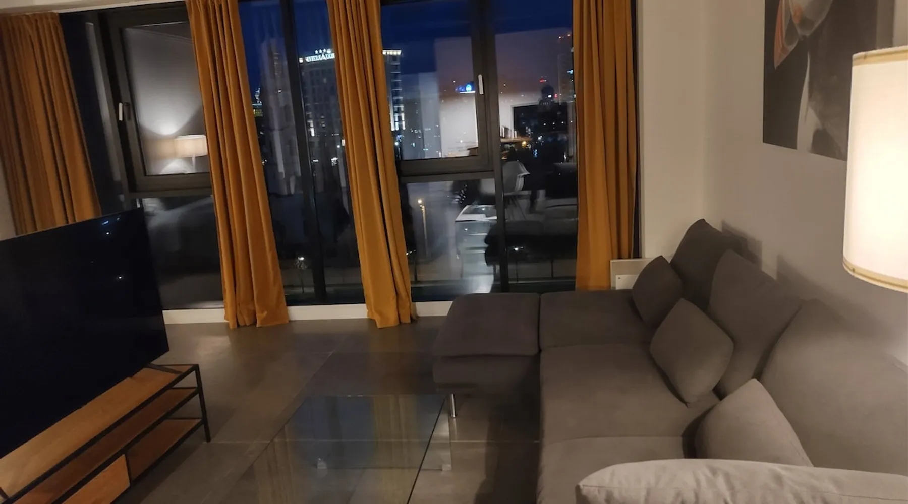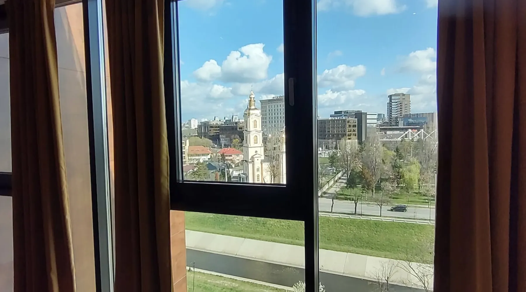 Indulge in the comfort of this spacious and unique home across the street from the Palas ensemble! An entire glass wall opens the amazing view of the entire city center of Iasi. The apartment at the top floor with a very high ceiling features a stylish open plan with loft-style design and is extremely comfortable, equipped with whatever it takes for a couple's dream vacation. The space The 60 sqm loft-style apartment with very high ceiling is located in an ultramodern new building on the 6th floor with two elevators and is open space type with a panoramic glass wall, which integrates in the same space the living area with comfortable desk, modern fully equipped kitchen, sleeping area with a very comfortable king size bed and a wardrobe. The apartment is suitable for working from home. Kitchen facilities include: electric oven, microwave, water kettle, coffee machine with capsules, induction hob, refrigerator and freezer, dining place. Guests can choose between several varieties of coffee and tea, still and mineral water offered from the house. The apartment is equipped with washing machine with dryer, air conditioning, Smart TV 55'', cable TV, high speed internet. In the bathroom are provided shower gels and certified bio shampoo, quality towels, a hairdryer, toilet paper. The sheets are made of cotton, the pillows and the duvets are made of fluff. No smoking is permitted except for e-cigarettes. Guest access Private parking on secure premises provided upon request. Supermarket, pharmacy, bank - on the ground floor. Public transportation hub near the building The Palas district is a 5-minute walk away. Great parks in walking distance. Other things to note The apartment was designed specifically for professionals arriving in Iasi for work, especially for remote work and offers a cozy desk with fast wired internet connection as well as a sofa for relaxation. The building where the apartment is located is located is located in a short walking distance of most of the office buildings in the city.