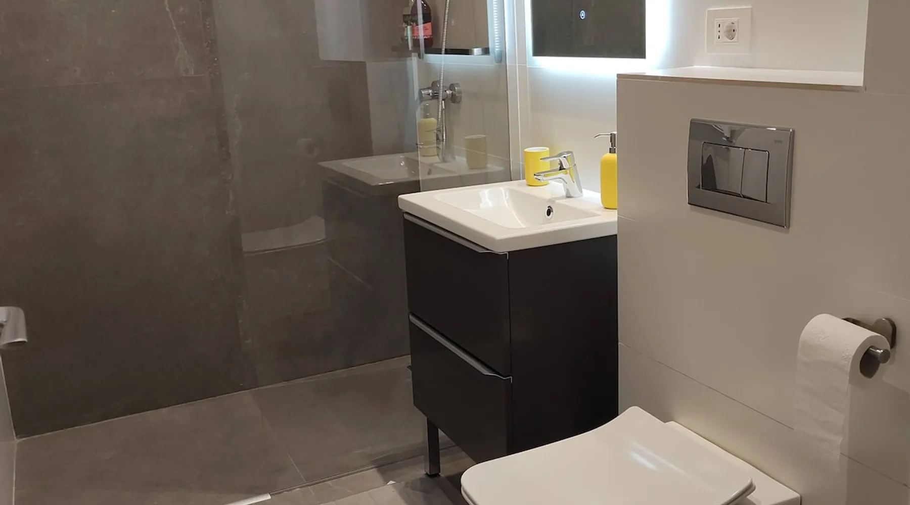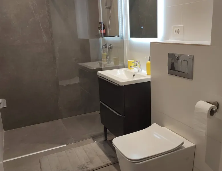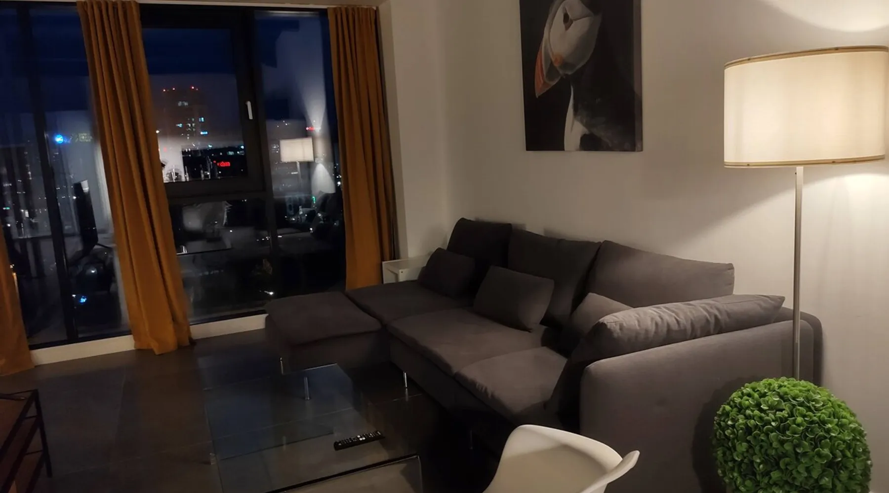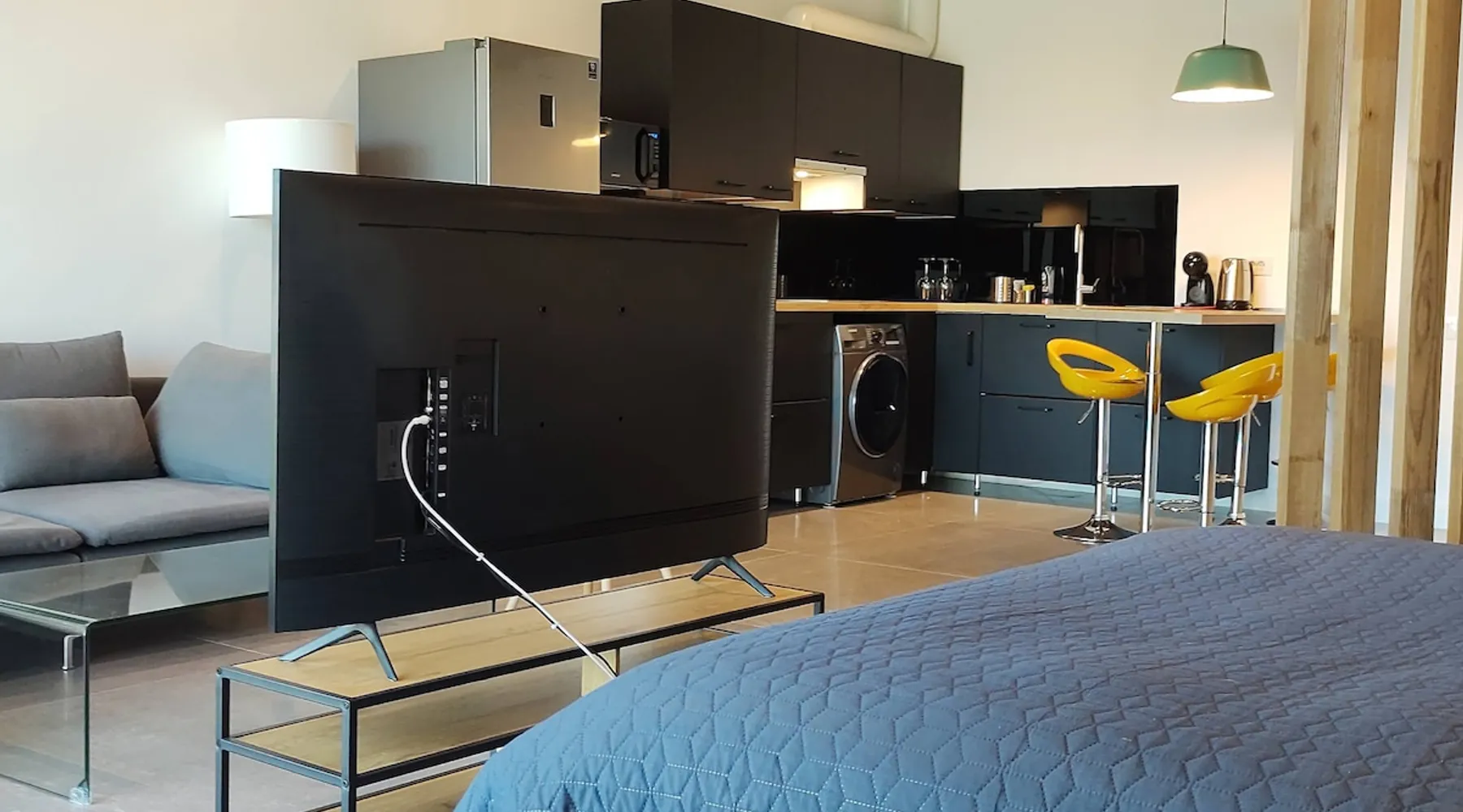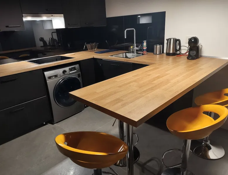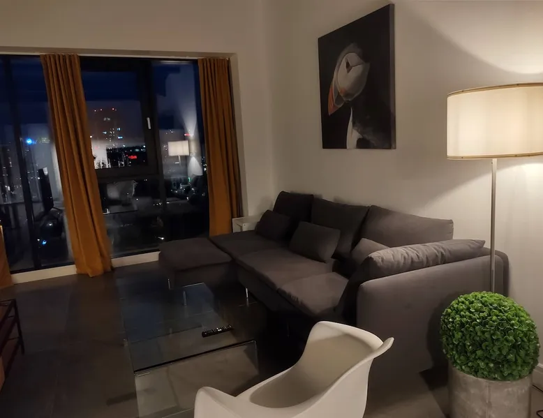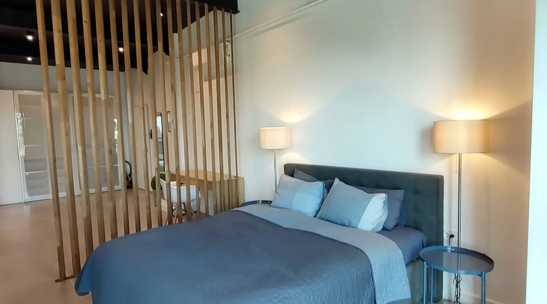 Indulge in the comfort of this spacious and unique home across the street from the Palas ensemble! An entire glass wall opens the amazing view of the entire city center of Iasi. The apartment at the top floor with a very high ceiling features a stylish open plan with loft-style design and is extremely comfortable, equipped with whatever it takes for a couple's dream vacation. The space The 60 sqm loft-style apartment with very high ceiling is located in an ultramodern new building on the 6th floor with two elevators and is open space type with a panoramic glass wall, which integrates in the same space the living area with comfortable desk, modern fully equipped kitchen, sleeping area with a very comfortable king size bed and a wardrobe. The apartment is suitable for working from home. Kitchen facilities include: electric oven, microwave, water kettle, coffee machine with capsules, induction hob, refrigerator and freezer, dining place. Guests can choose between several varieties of coffee and tea, still and mineral water offered from the house. The apartment is equipped with washing machine with dryer, air conditioning, Smart TV 55'', cable TV, high speed internet. In the bathroom are provided shower gels and certified bio shampoo, quality towels, a hairdryer, toilet paper. The sheets are made of cotton, the pillows and the duvets are made of fluff. No smoking is permitted except for e-cigarettes. Guest access Private parking on secure premises provided upon request. Supermarket, pharmacy, bank - on the ground floor. Public transportation hub near the building The Palas district is a 5-minute walk away. Great parks in walking distance. Other things to note The apartment was designed specifically for professionals arriving in Iasi for work, especially for remote work and offers a cozy desk with fast wired internet connection as well as a sofa for relaxation. The building where the apartment is located is located is located in a short walking distance of most of the office buildings in the city.