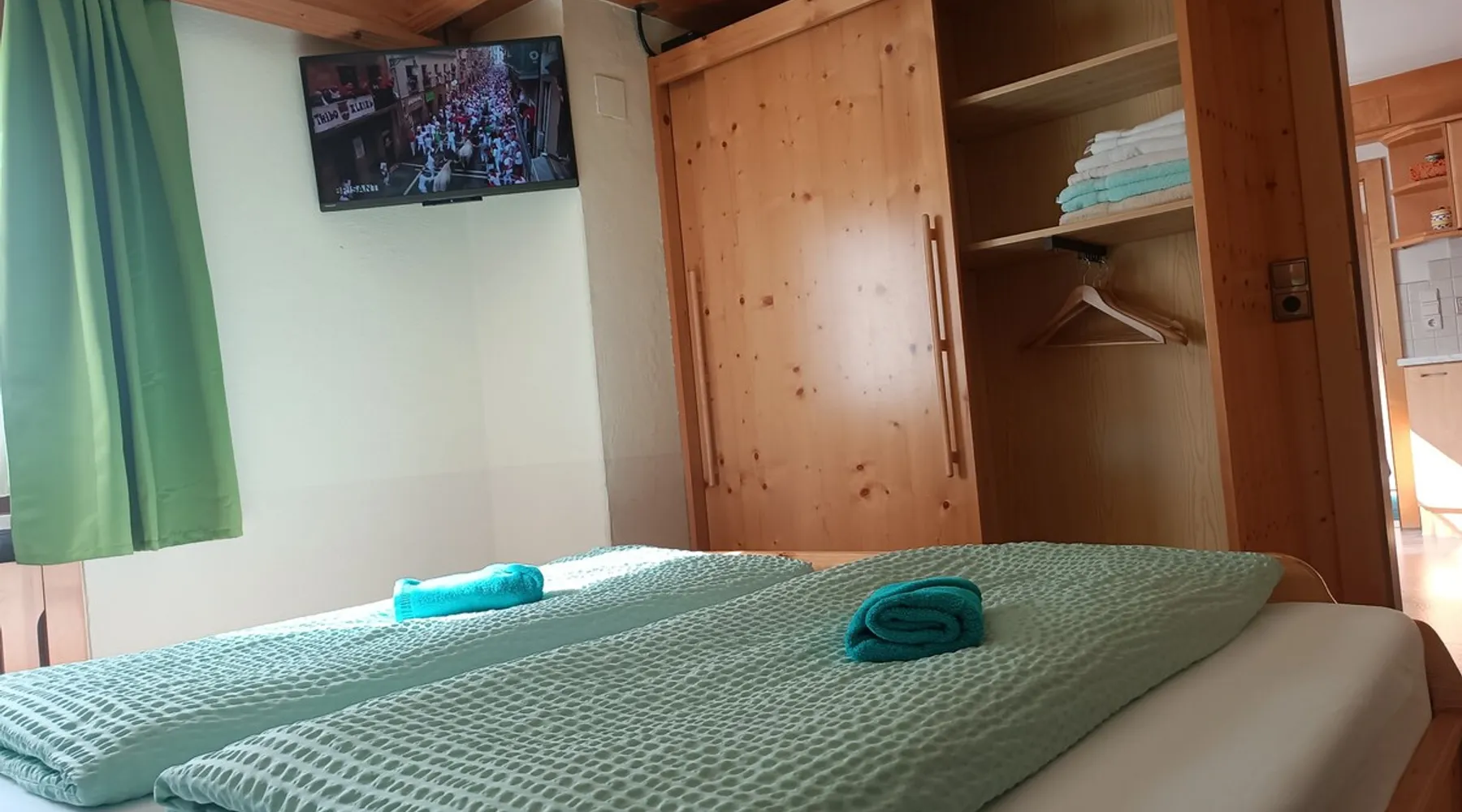 Our apartment "Martin" for 3 persons is located on the ground floor. The apartment has a bedroom with double bed, a kitchen-living room with corner bench and fully equipped kitchen and a living room with corner bench and couch (3rd bed). The apartment has a separate entrance. The tourist tax is € 1.80 per person per night over 15 years - will be charged separately. The space In the immediate vicinity you will find the Spar supermarket, the bus stop and a drag lift. In a few minutes you can walk to the Eggalmbahnen (Ski Zillertal 3000), several sporting goods stores, several restaurants and the Tux Center. Other things to note The total price includes all costs for overnight stays, bed linen and final cleaning. Upon arrival at the accommodation, only the tourist tax in the amount of: € 1.80 per person and night over the age of 15 (until 31/10/2024) € 2,50 per person and night over 15 years (from 01/11/2024) to be paid.