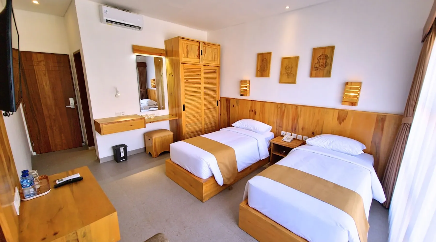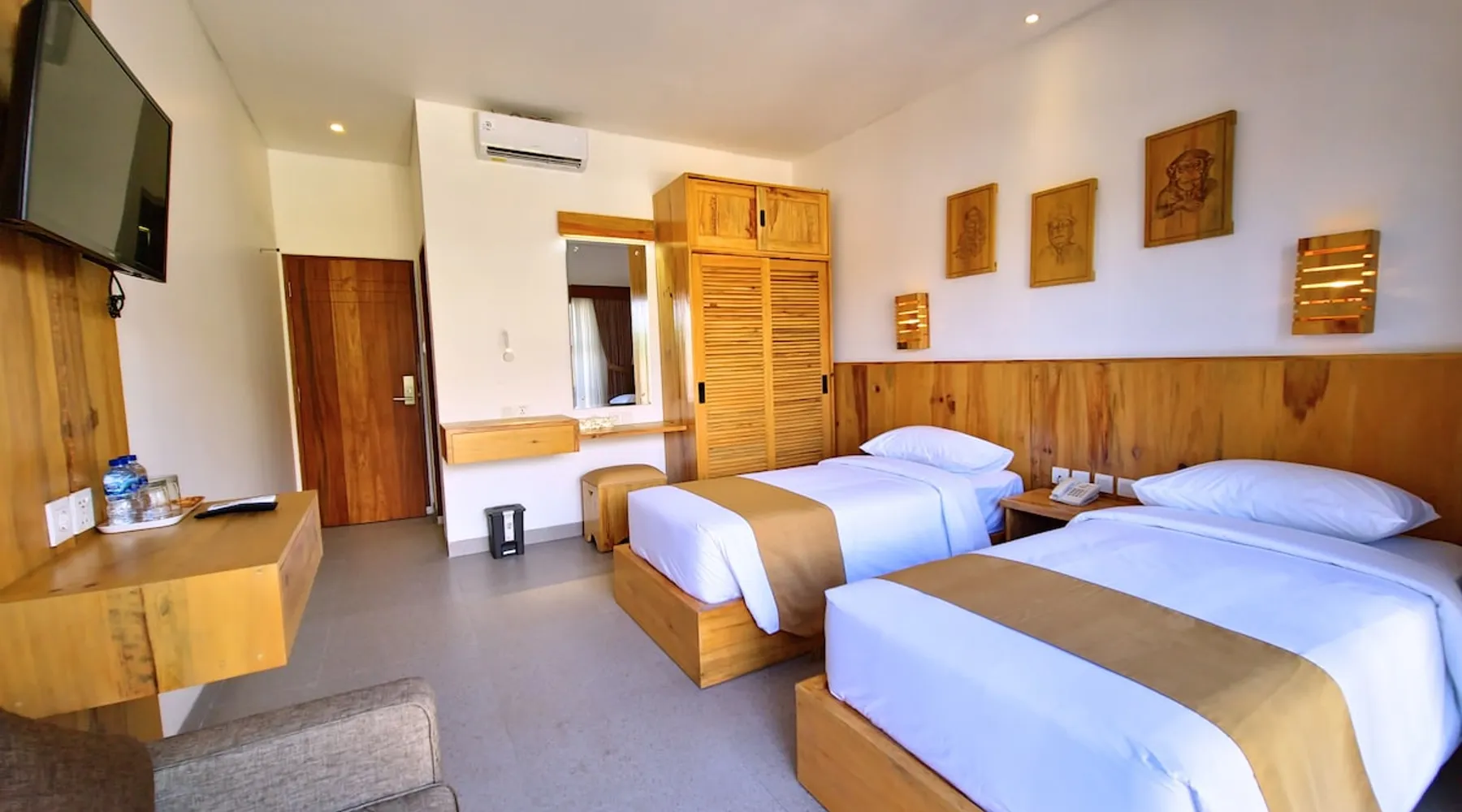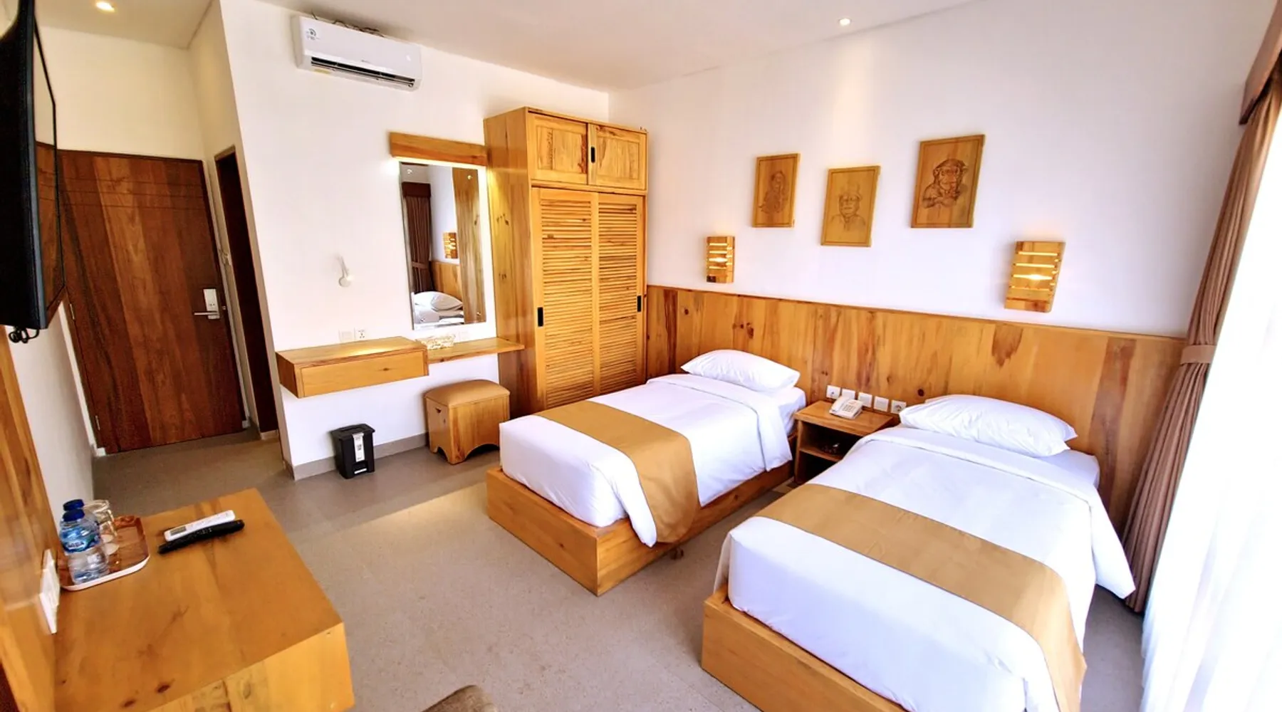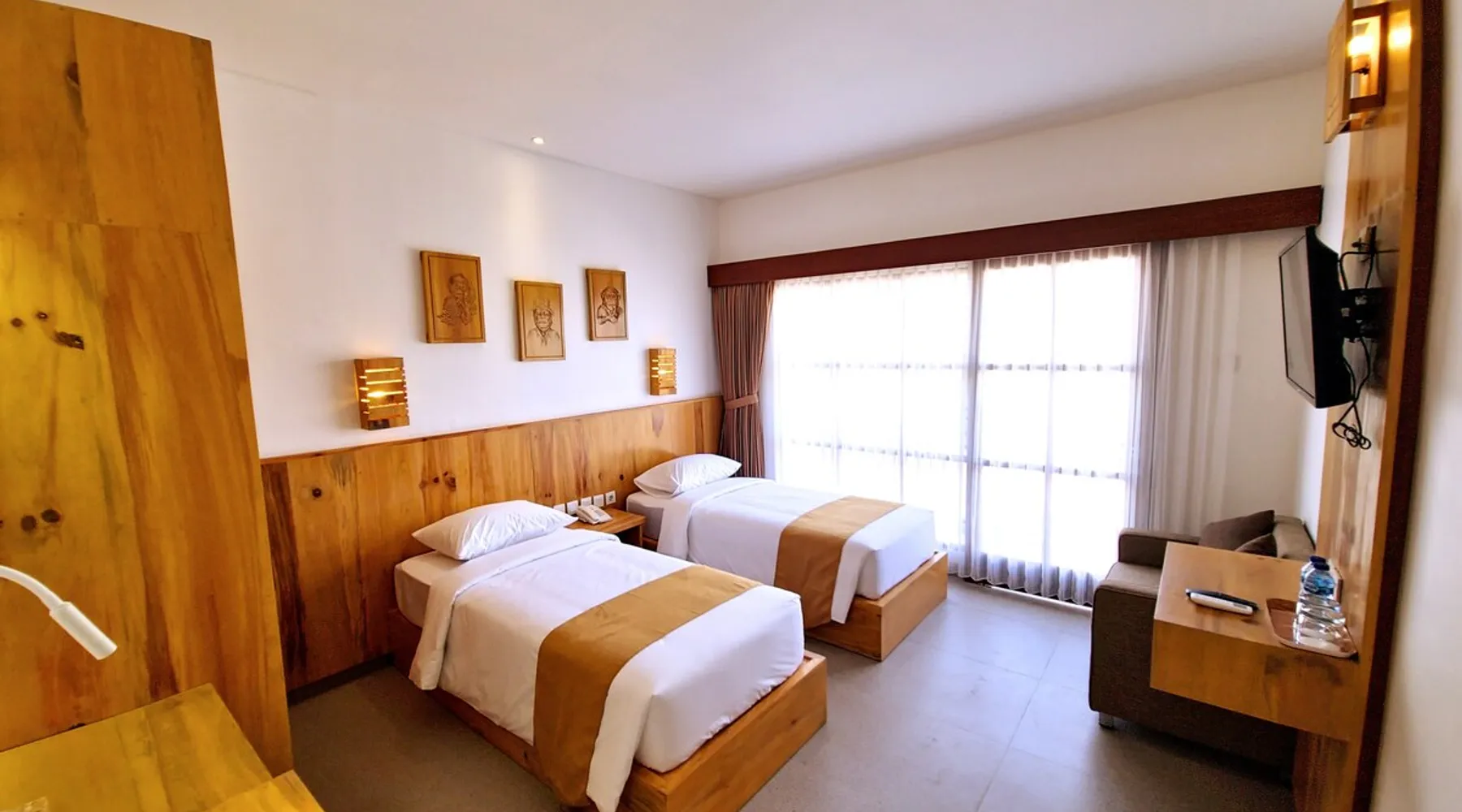 Located in the bustling heart of Kuta, Bali, our property features a stylish accommodation with an on-site restaurant. 24 hours of receptionist and security that will make you as a guest feel safe and secure. Embrace a modern classic ambiance at our property in the lively Kuta, Bali, where affordability meets style. Situated near the stunning beach, our accommodations offer a perfect blend of elegance and reasonable prices The space Explore the heart of Kuta, Bali, in our Standard Twin Bedroom where Balinese tradition meets modern comfort. This is a Standard Twin Bedroom located in a hostel. Adorned with fine textiles and teak wood furniture, the room offers a blend of history and convenience. Relax in a twin bed, enjoy a refreshing shower, and stay connected with free Wifi. Dive into our public pool or savor local flavors in our on-site restaurant. Experience Balinese hospitality in this unique Kuta haven. Explore Nearby Delights! ---------------- ✔ Discovery Mall Bali | 5 Minutes by Motorbike (1.1 km) ✔ Kuta Beach | 5 Minutes by Motorbike (1.7 km) ✔ Kuta art market | 6 Minutes by Motorbike (1.7 km) ✔ Jerman Beach | 7 Minutes by Motorbike (1.8 km) ✔ The Keranjang Bali | 7 Minutes by Motorbike (1.9 km) ✔ Boardwalk Restaurant | 8 Minutes by Motorbike (2.1 km) Guest access Room Facilities: ✔ Room size : 30 Sqm ✔ 18 Guest ✔ Double Bed ✔ Workbench ✔ Safe ✔ The upper floors can only be accessed by stairs ✔ Flat screen TV ✔ Wake up service ✔ Sofa ✔ Clothes drying rack ✔ Seating area ✔ Tile/marble floors ✔ Telephone ✔ Air conditioning ✔ Clothes Drying Board ✔ Outdoor Facilities: ✔ Public Pool ✔ Parking Area ✔ Restaurant Other things to note Our Service: ✔ Daily Rent ✔ Weekly Rent ✔ Monthly Rent