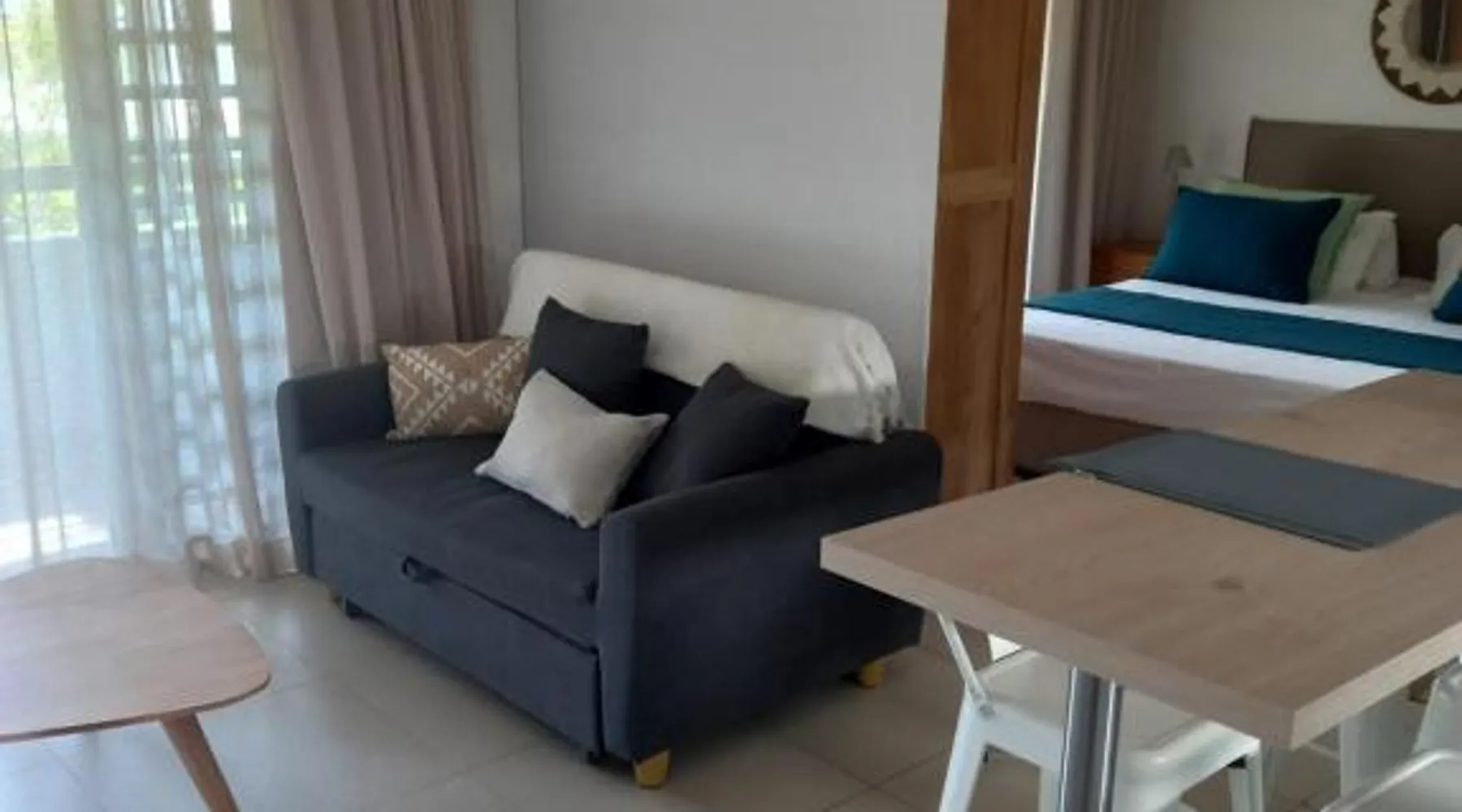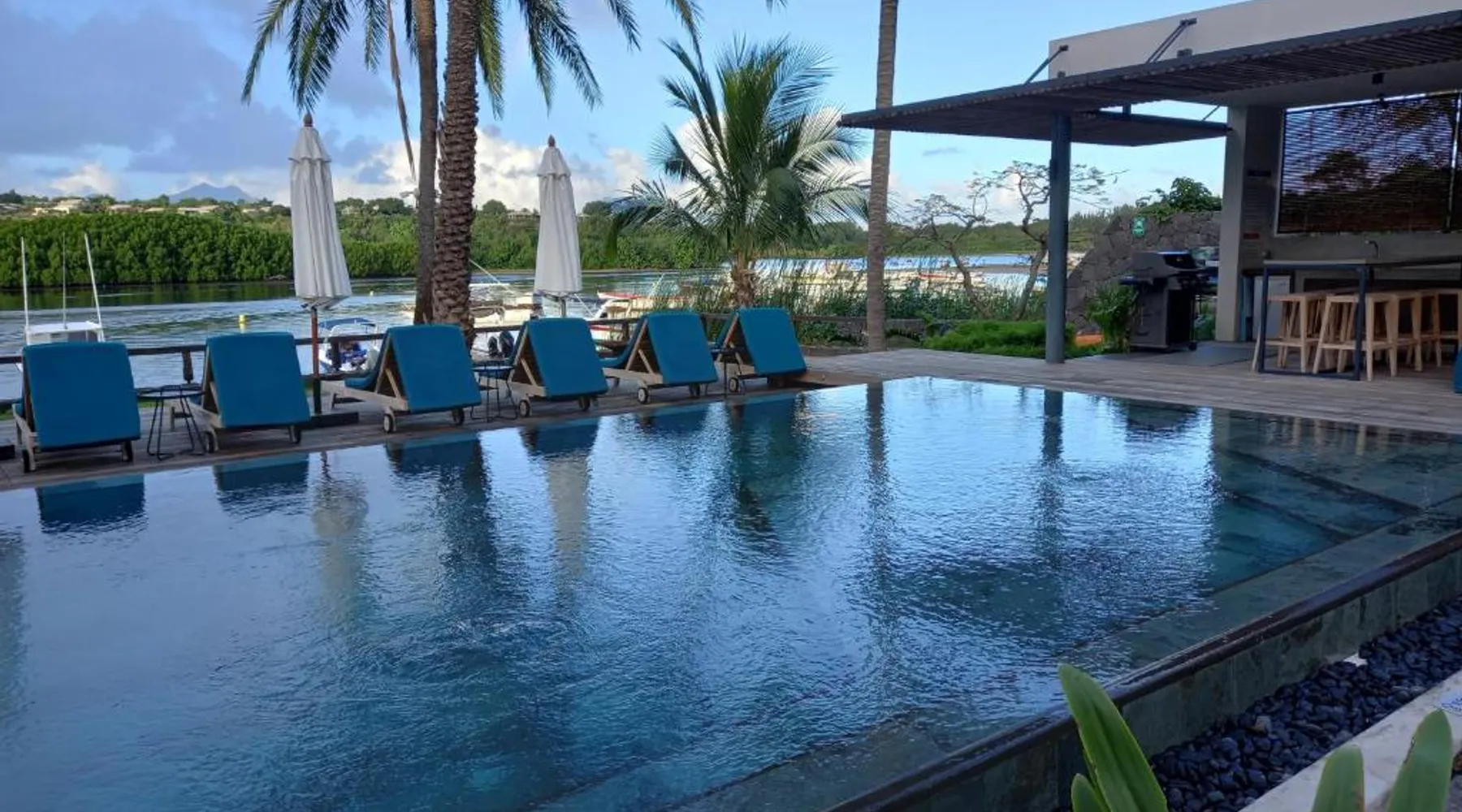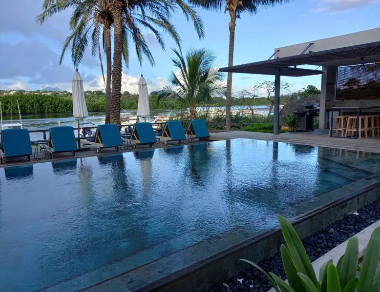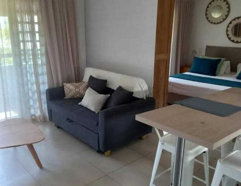 Elegant Accommodations: Studio 2 The Waterclub in Grande Riviere Noire offers a comfortable apartment with one bedroom and a living room. Guests enjoy a sun terrace, garden, and a year-round outdoor swimming pool. Free WiFi is available throughout the property. Modern Amenities: The apartment features air-conditioning, a balcony with garden and mountain views, and a fully equipped kitchenette. Additional amenities include a washing machine, dining area, and free on-site private parking. Leisure Activities: Guests can relax on the sun terrace or take a dip in the pool. The property offers outdoor seating, picnic areas, barbecue facilities, and canoeing. Convenient Location: Located 33 mi from Sir Seewoosagur Ramgoolam Airport, the apartment is close to attractions such as La Preneuse Beach (1.4 mi) and Tamarina Golf Course (6.8 mi). Free toiletries and a hairdryer are provided for added comfort. Guests will have a special experience as the apartment features a pool with a view. This apartment consists of 1 living room, 1 separate bedroom and 1 bathroom with a shower and free toiletries. In the well-fitted kitchenette, guests will find a stovetop, a refrigerator, kitchenware and a microwave. The air-conditioned apartment provides a flat-screen TV, a washing machine, a tea and coffee maker, a seating area as well as garden views. The unit offers 2 beds.