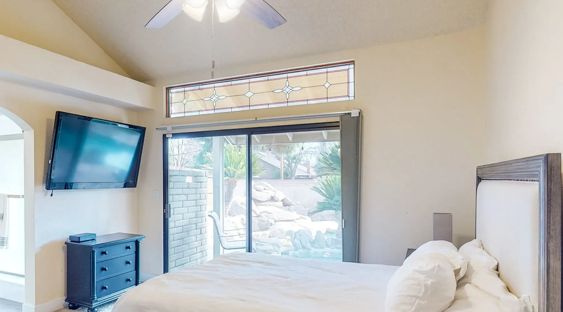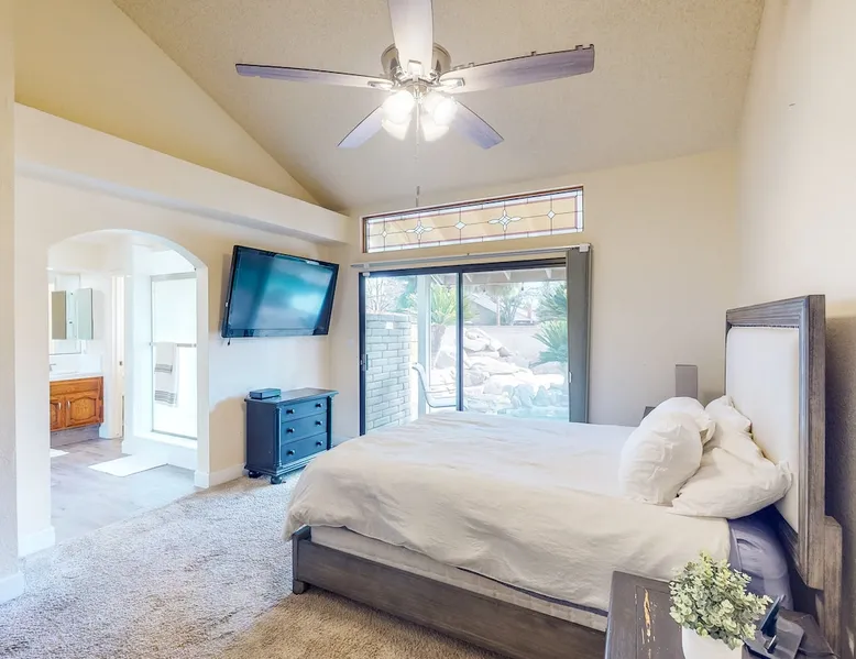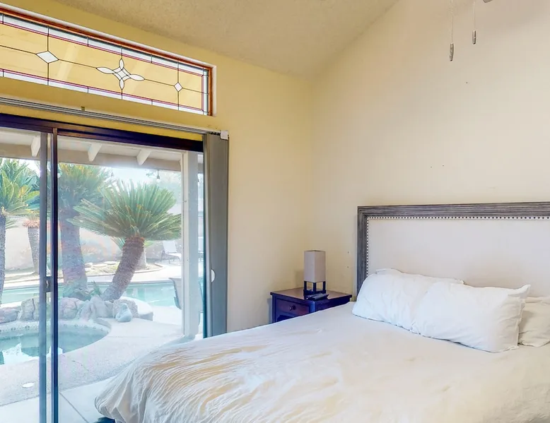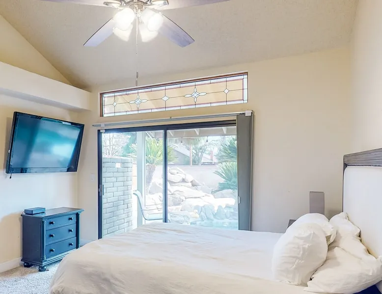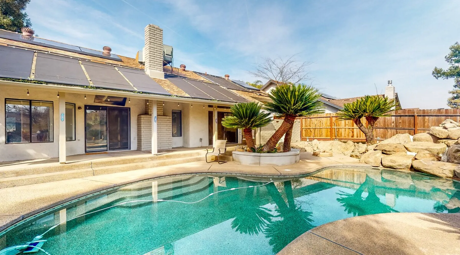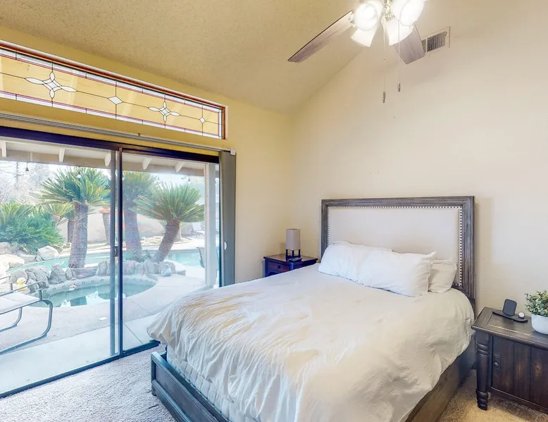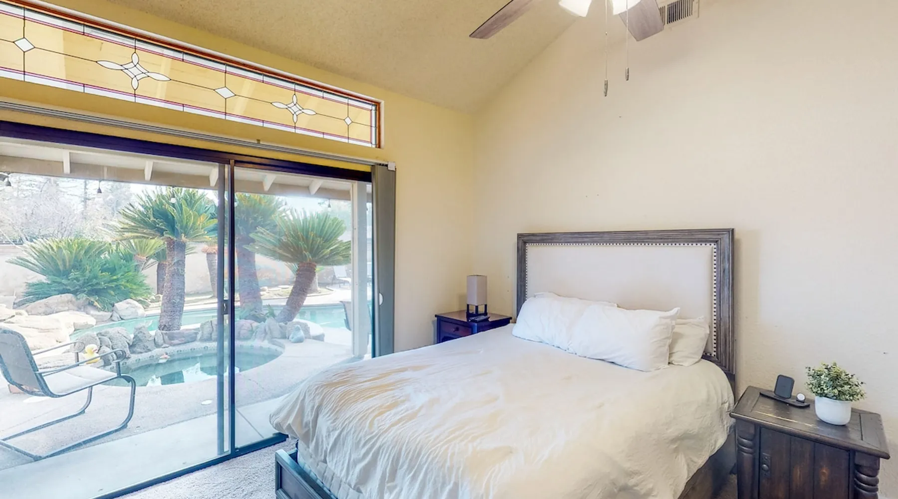 Conveniently located and beautifully designed, this Fresno home boasts easy access to the Fresno Yosemite International Airport and California State University. Live like a local and get out on the town before coming back to your sweet digs to relax in the private backyard oasis where a pool and hot tub wait. The space 456069 Inside your retreat, lounge in one of the two spacious living rooms where the seating is soft and the TVs are large. Or, find yourself cooking amongst the stainless steel appliances and ample meal prep space in the full kitchen. Enjoy your culinary creations at the formal dining table or alfresco in the enclosed backyard where Sago Palm Trees grow freely. The custom barbecue can be utilized when you want to enhance your cooking, and tasty drinks can be whipped up at the minibar. Golfers will love the putting green, located right in the front yard! And after plenty of fun in the sun, wash your swimsuits in the private washer/dryer. The bedrooms, equally spacious and bright, are sure to keep your loved ones content and comfortable. Tune the central air-conditioning to your liking each night and dive into your vacation read before dreaming sweetly about the days ahead. Guest access Guests will have access to the entire property Other things to note - No smoking - Pet friendly w/ $200 fee (+ fees & taxes) - No events, parties, or large gatherings - Additional fees and taxes may apply - Photo ID may be required upon check-in - Quiet hours are from 10:00 PM to 8:00 AM.