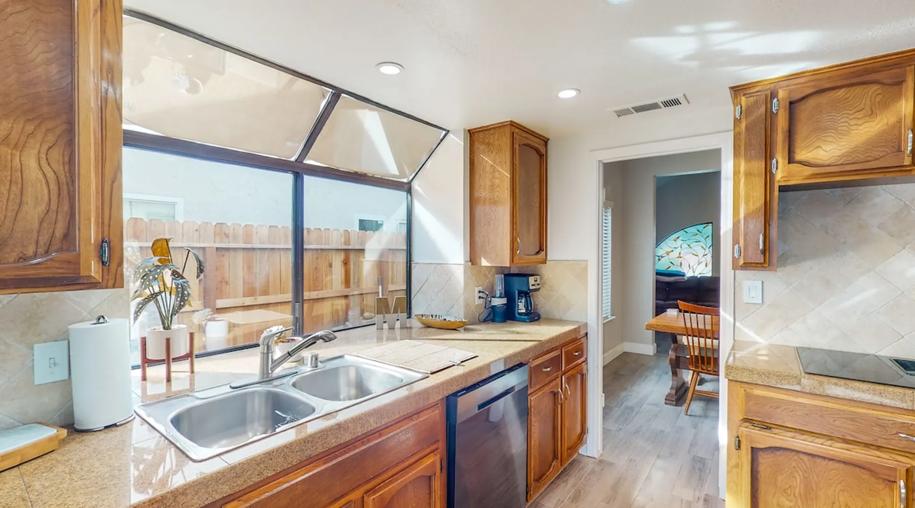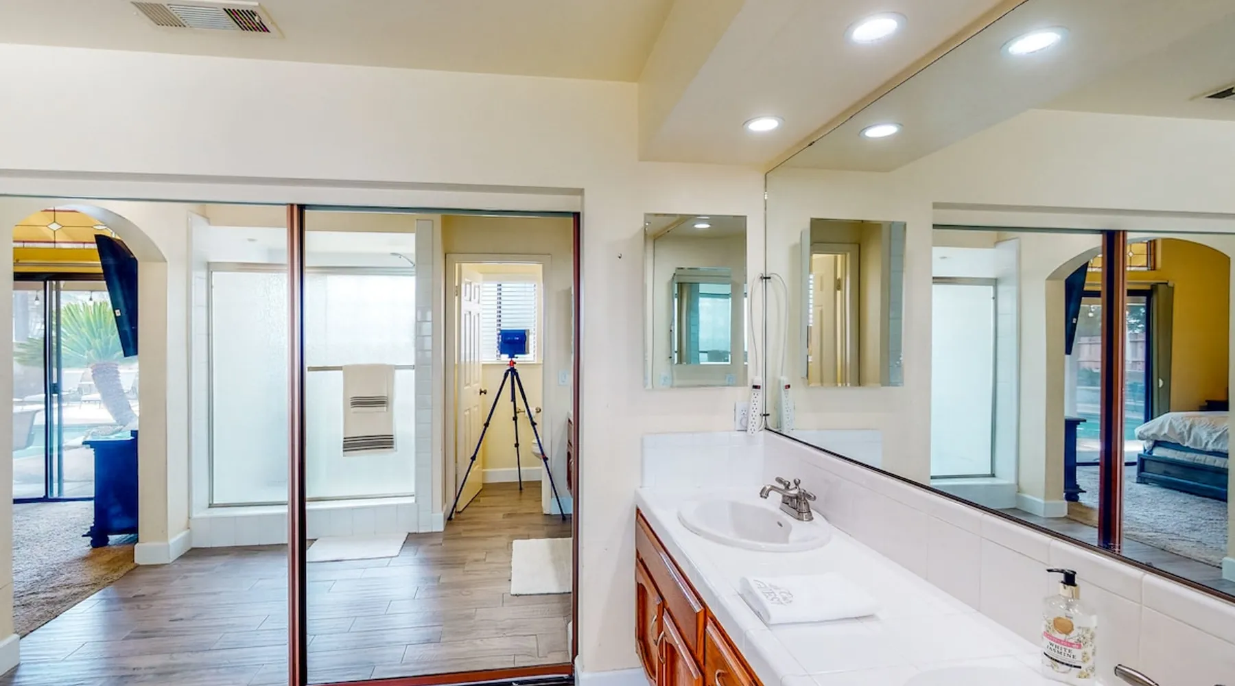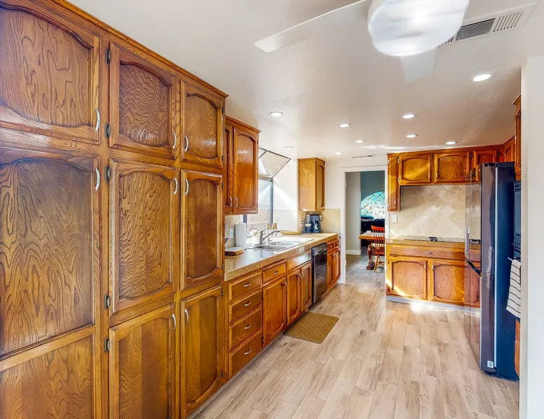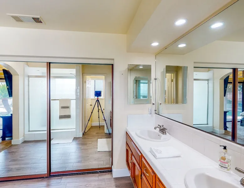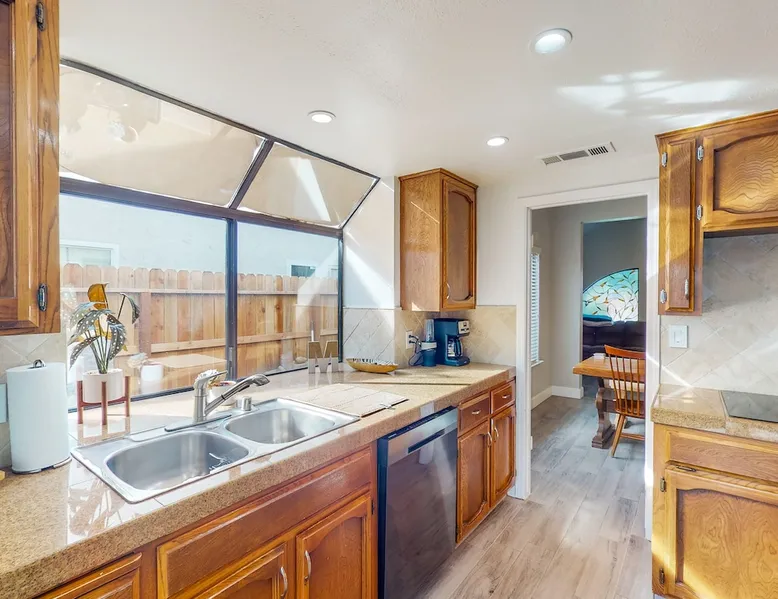 Conveniently located and beautifully designed, this Fresno home boasts easy access to the Fresno Yosemite International Airport and California State University. Live like a local and get out on the town before coming back to your sweet digs to relax in the private backyard oasis where a pool and hot tub wait. The space 456069 Inside your retreat, lounge in one of the two spacious living rooms where the seating is soft and the TVs are large. Or, find yourself cooking amongst the stainless steel appliances and ample meal prep space in the full kitchen. Enjoy your culinary creations at the formal dining table or alfresco in the enclosed backyard where Sago Palm Trees grow freely. The custom barbecue can be utilized when you want to enhance your cooking, and tasty drinks can be whipped up at the minibar. Golfers will love the putting green, located right in the front yard! And after plenty of fun in the sun, wash your swimsuits in the private washer/dryer. The bedrooms, equally spacious and bright, are sure to keep your loved ones content and comfortable. Tune the central air-conditioning to your liking each night and dive into your vacation read before dreaming sweetly about the days ahead. Guest access Guests will have access to the entire property Other things to note - No smoking - Pet friendly w/ $200 fee (+ fees & taxes) - No events, parties, or large gatherings - Additional fees and taxes may apply - Photo ID may be required upon check-in - Quiet hours are from 10:00 PM to 8:00 AM.