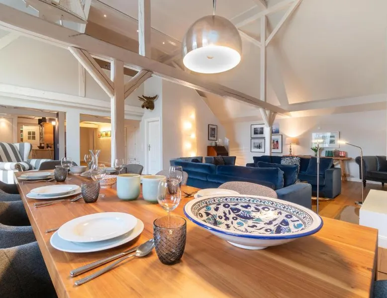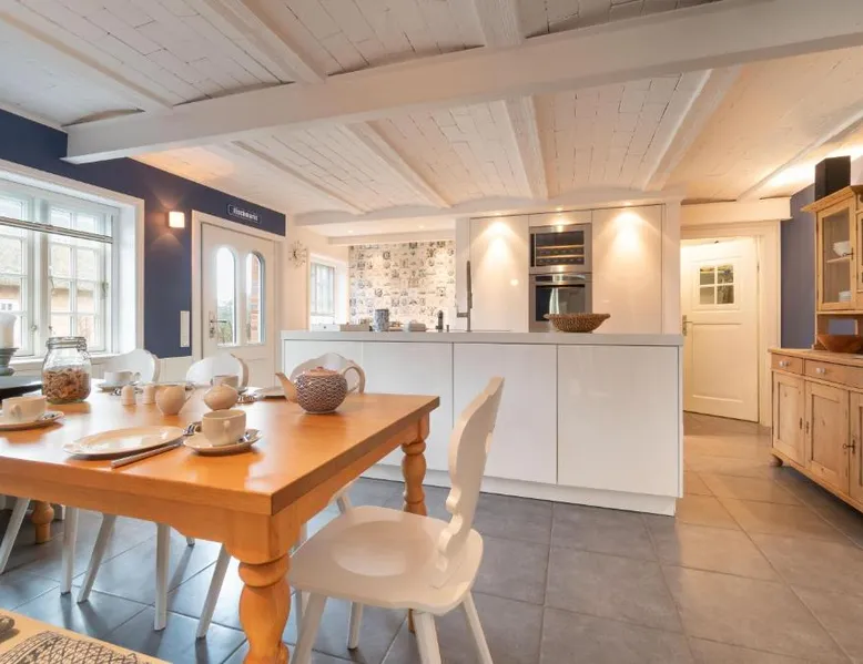 Historic Setting: Friesenhof Feer in Oldsum offers a spacious holiday home housed in a historic building. The property features four bedrooms and three bathrooms, providing ample space for guests. Relaxing Facilities: Guests can enjoy a sauna, terrace, and garden. The terrace offers outdoor dining areas, while the garden provides a peaceful retreat. Free WiFi is available throughout the property. Leisure Activities: The holiday home includes an outdoor seating area and a games room. Additional amenities include a washing machine, kitchen, fireplace, and barbecue. Local Attractions: Located 2.4 mi from the Archaeological Monument in Borgsum / Föhr, 6.2 mi from the Museum of Local Frisian History Wyk and Ferry Docks, and 6.2 mi from the Speedboat Harbor. The sauna and fireplace are the special features of this holiday home. Boasting a private entrance, this spacious holiday home also comes with 4 bedrooms, a seating area and 3 bathrooms with a bath and a shower. Guests will find a stovetop, a refrigerator, a dishwasher and kitchenware in the well-fitted kitchen. The holiday home also includes a barbecue. Featuring a terrace with garden views, this holiday home also features a washing machine and a TV. The unit has 4 beds.