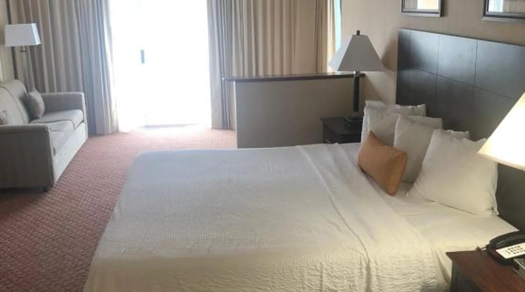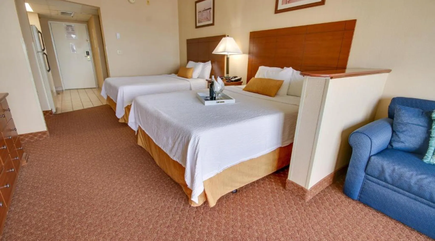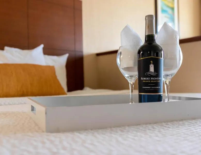 This bayfront hotel is just 2 minutes’ walk to the beach and features both indoor and outdoor pools. The Ocean City Boardwalk is 3 miles away. The comfortably decorated rooms at the Princess Bayside Beach Hotel all feature a cable TV, microwave, and refrigerator. Select rooms have a balcony with views of the bay. The Bayside Princess Beach Hotel has on-site water sports facility as well as a private bayfront beach area. and a poolside bar. Jolly Roger Amusement Park is 6 minutes drive from the hotel. Right next door to Seacrets Club (Lively waterfront nightspot with several dance floors, tropical cocktails & Caribbean-inspired eats.) Onsite parking available for 1 vehicle per room. No additional parking available for secondary vehicles. This room features a private terrace with bay views, sofa bed, and kitchen. Please note that the room rate is based on 2 guests. Maximum occupancy is 6 guests (see Hotel Policies).