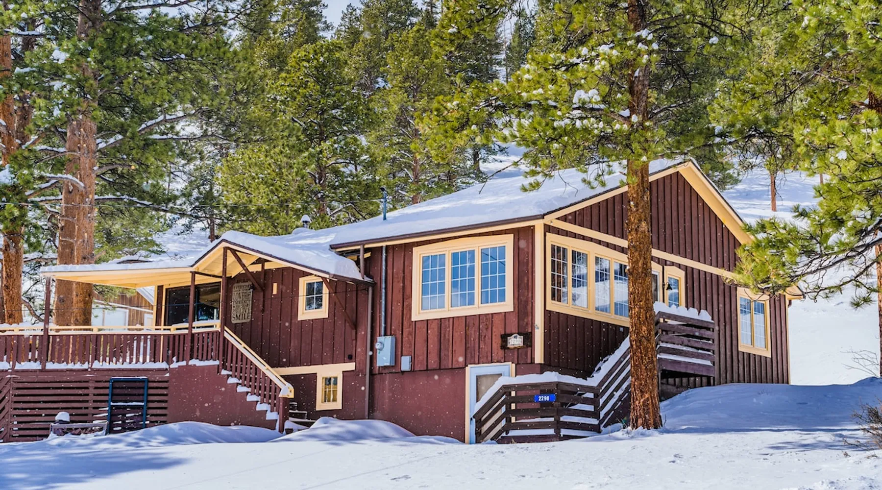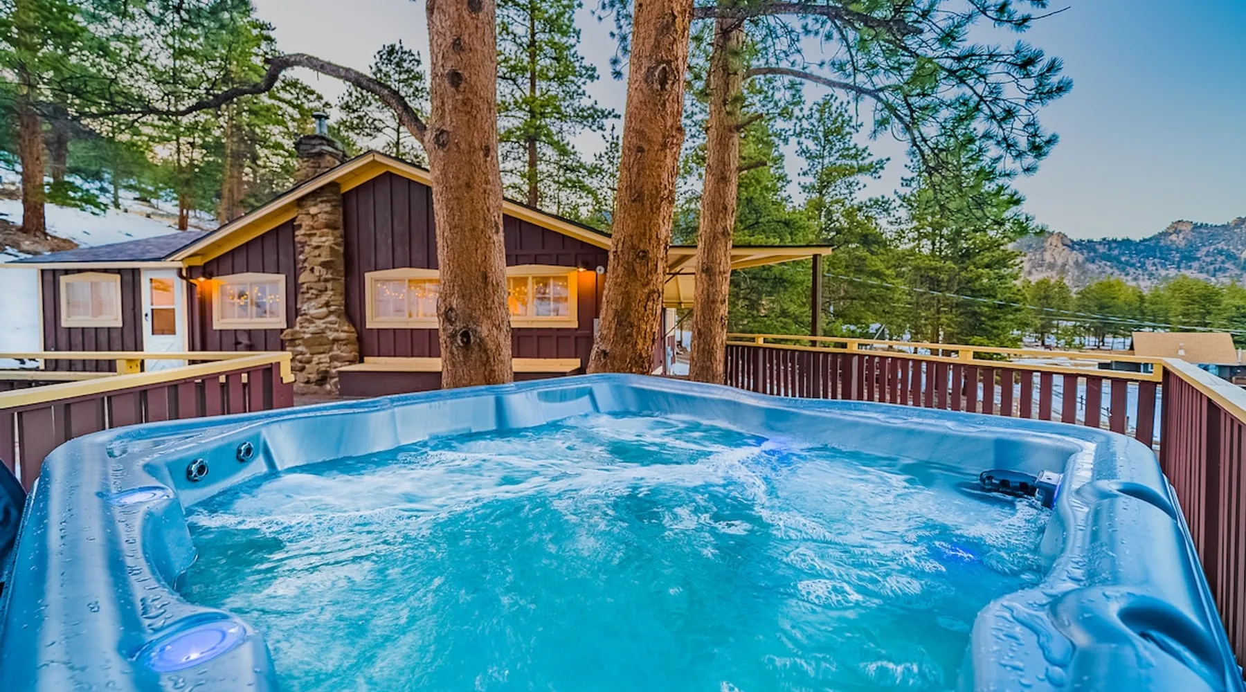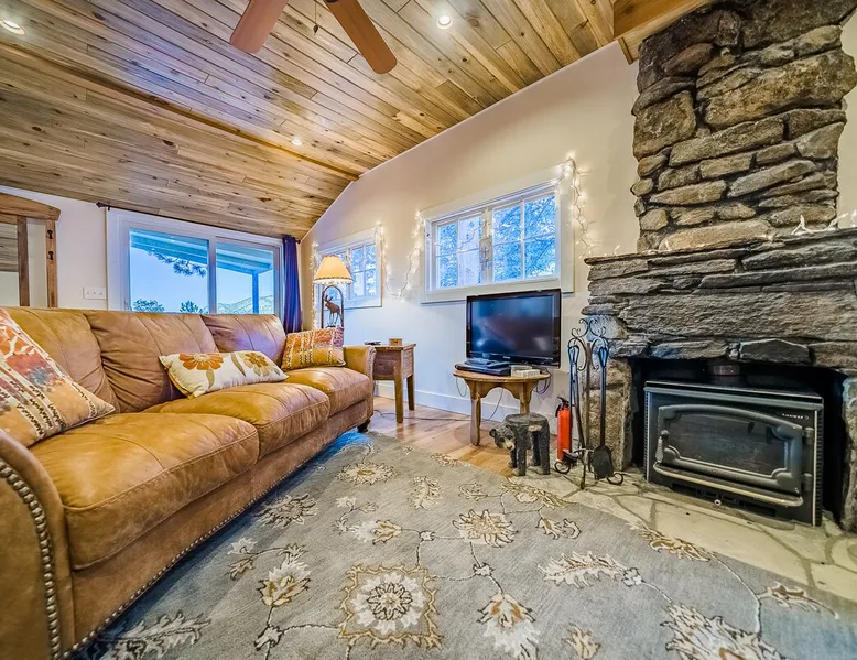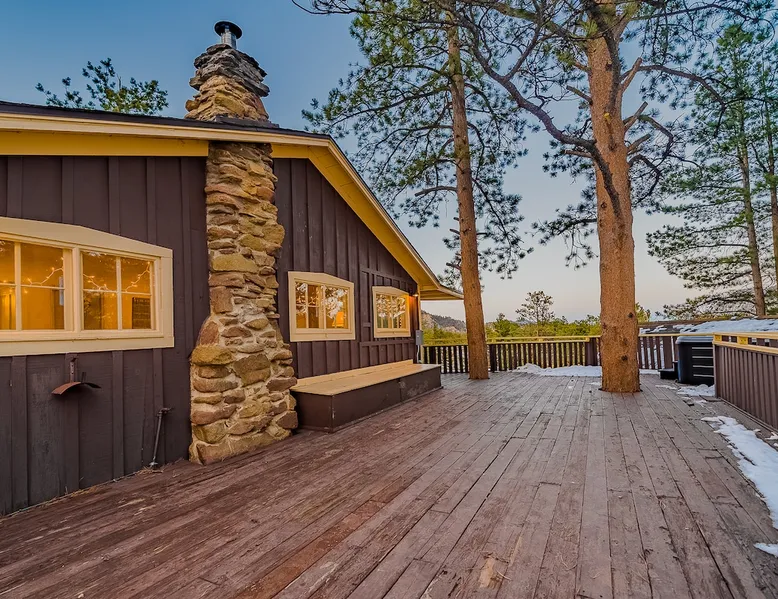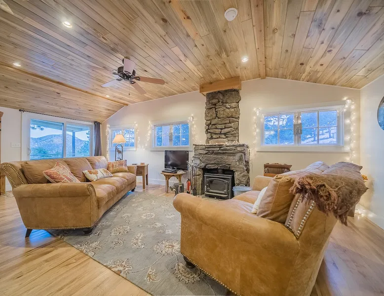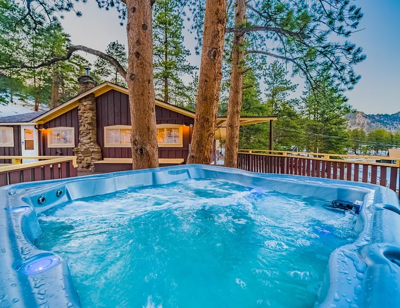 Relax in our cabin's hot tub and soak in amazing views after walking out our front door and straight into Rocky Mountain National Park! (Permit 20-ZONE2752). Our 3-br, 1260 s/f cabin is minutes from downtown Estes Park, but you can also hike into the National Park. Full kitchen & large deck! Escape crowds & enter Moraine Park on foot or snowshoes, with a trailhead about five minutes away by foot. + Private hot tub under the stars + Large kitchen/dining area + Great outdoor living space The space Real quick, some house rules: - 4pm (or later) checkin; 10am (or earlier) check out - No smoking inside or out - No fire pits - No parties; no pets. - 2 cars & 6 guests max (including infants) - Guests start dishes and laundry load of towels, wash cloths and hand towels at checkout (we have negotiated a lower cleaning fee based on this, & pass the savings to you). - 4WD/4WD recommended from Oct-May. - This is a historic cabin neighborhood; there are neighbors! - Unit is 840 s/f. Bring you own streaming accounts for the smart TV. Now, onward! My wife and I are proud to offer up the Sunflower Cabin, our dream home in the mountains. It is just a few hundred yards from the boundary of Rocky Mountain National Park, and a trail just a few blocks away takes you into Moraine Park by foot. Feel free to literally hike into the National Park, and then come back at the end of the day and soak in the hot tub on our back deck, watching alpenglow or shining stars. Our historic cabin offers three bedrooms, a living area, a kitchen and dining area, and two bathrooms -- one is a common bathroom and one is attached to the queen bedroom. BEDROOMS We have a master suite, with an attached bathroom and a queen bedrooms. A second bedroom has a full size mattress, and a third bedroom, which opens onto our spacious deck, has a trundle bed with two singles. Perfect for the kids or for additional guests. ENTERTAINMENT The hallmark of our house is our outdoor deck, raised off the ground, with a hot tub hidden behind several large pine trees that grow through the deck. From our hot tub you can see gorgeous mountain vistas and huge starry nights. Our second favorite part of our home is a cozy wood burning fireplace in the living room, which heats up our space well during cold winter nights. Bring your own firewood and relax on two comfy couches with a fire and a movie. We have a smart TV (Roku) so you can stream your favorite shows. ESSENTIALS We provide towels, linens, soaps, and cooking essentials, plus a full size washer and dryer for your use. KITCHEN Our fully stocked kitchen has a fridge, freezer, microwave, oven and range, plus a ton of small appliances, dishes, pots, etc. Cook whatever you want! There are great restaurants nearby, but you are fully equipped for a great night of cooking. DISTANCES + Rocky Mountain National Park: 3 min drive + Downtown: 7 min drive + Lake Estes: 8 min drive + Golfing: 8 min drive + Backcountry skiing at Hidden Valley: 20 min drive + Eldora Ski Resort: 50 min drive Guest access Fully furnished cabin including 3 bedrooms, 2 baths, living room, dining/kitchen area, large deck, private playground, and hot tub. Parking for 2 cars max. Other things to note NOISE Events, loud music and parties are strictly prohibited. You must be quiet in the hot tub due to neighbors and neighborhood quiet hours. No speakers or music allowed. NONPAYING GUESTS Insurance requires that nonpaying/non-registered guests are not allowed on property. AIR CONDITIONER Like nearly every home in Estes Park, there is no A/C. We rely on cool mountain breezes to cool our homes quickly in the summers. BEARS This home essentially borders the park, and wildlife are everywhere. Do not leave foods in your car that smell. Bears can break in! Minut We use a Minut noise meter. It doesn't record audio, but instead monitors decibel levels, temperature and humidity. This is for the safety of guests & to protect the home. It also serves to warn us about parties & prevent noise complaints from neighbors. It's located on the cieling in the kitchen.