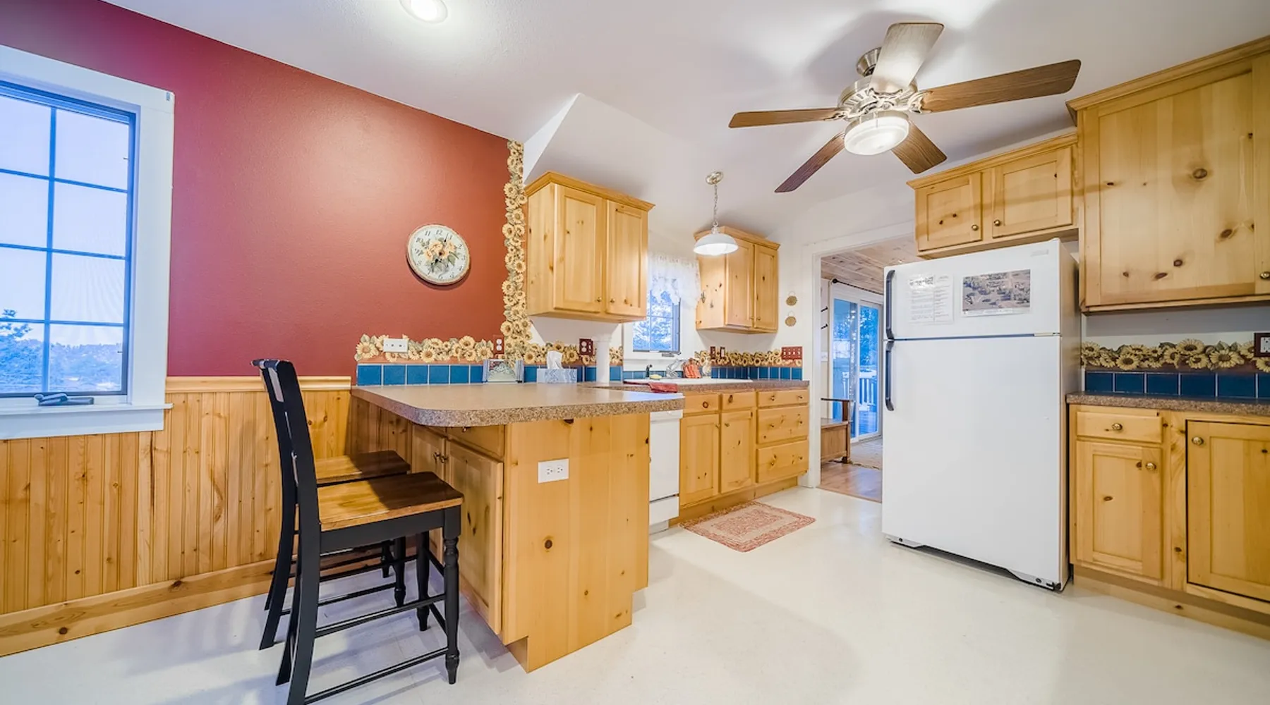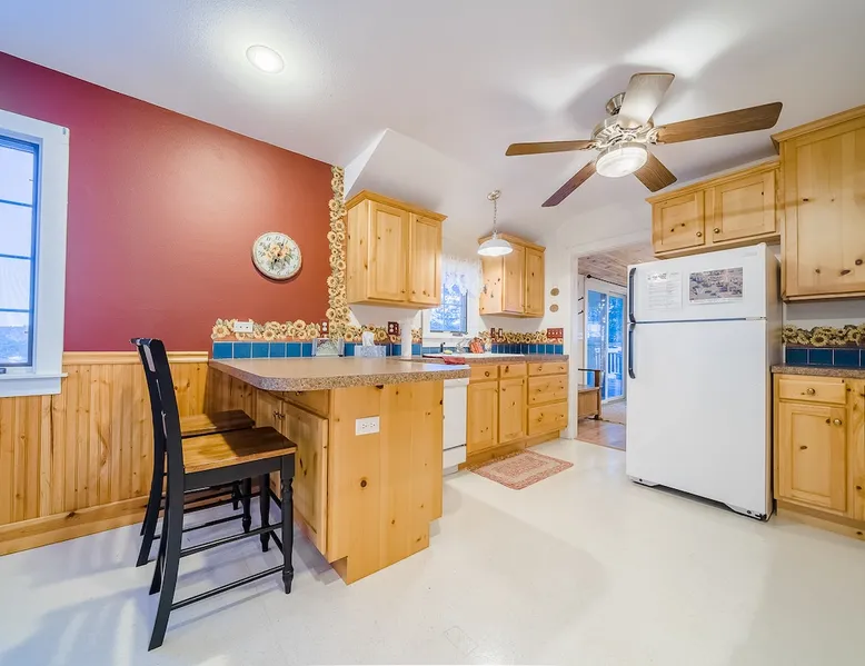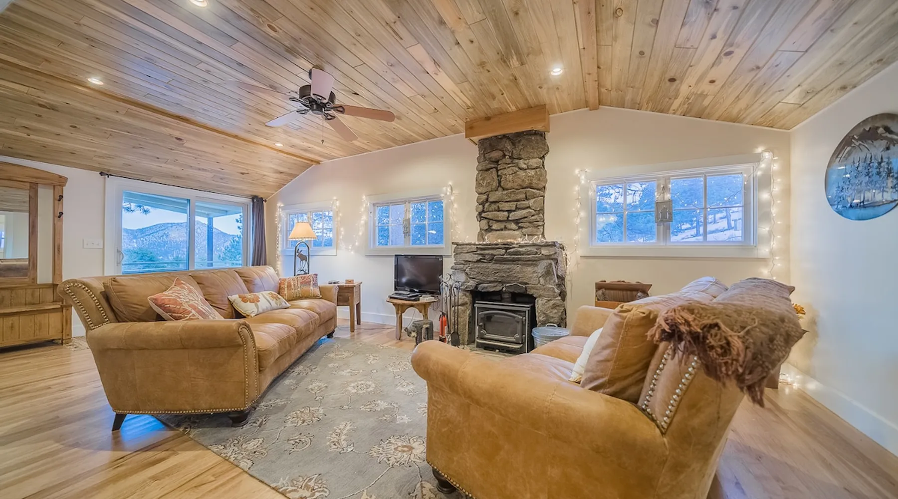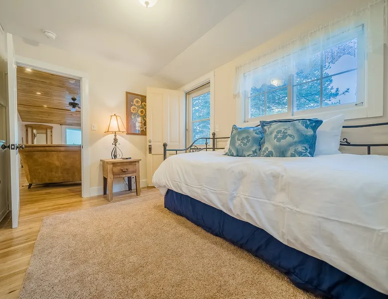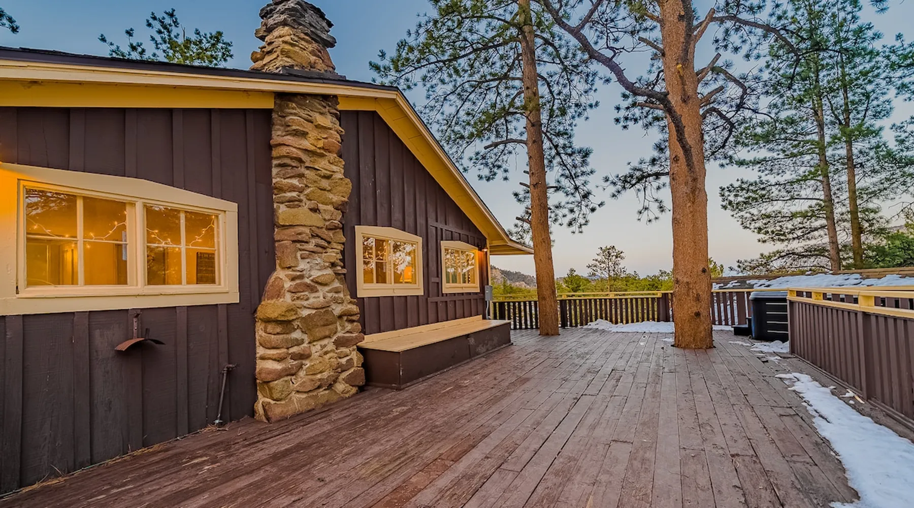 Relax in our cabin's hot tub and soak in amazing views after walking out our front door and straight into Rocky Mountain National Park! (Permit 20-ZONE2752). Our 3-br, 1260 s/f cabin is minutes from downtown Estes Park, but you can also hike into the National Park. Full kitchen & large deck! Escape crowds & enter Moraine Park on foot or snowshoes, with a trailhead about five minutes away by foot. + Private hot tub under the stars + Large kitchen/dining area + Great outdoor living space The space Real quick, some house rules: - 4pm (or later) checkin; 10am (or earlier) check out - No smoking inside or out - No fire pits - No parties; no pets. - 2 cars & 6 guests max (including infants) - Guests start dishes and laundry load of towels, wash cloths and hand towels at checkout (we have negotiated a lower cleaning fee based on this, & pass the savings to you). - 4WD/4WD recommended from Oct-May. - This is a historic cabin neighborhood; there are neighbors! - Unit is 840 s/f. Bring you own streaming accounts for the smart TV. Now, onward! My wife and I are proud to offer up the Sunflower Cabin, our dream home in the mountains. It is just a few hundred yards from the boundary of Rocky Mountain National Park, and a trail just a few blocks away takes you into Moraine Park by foot. Feel free to literally hike into the National Park, and then come back at the end of the day and soak in the hot tub on our back deck, watching alpenglow or shining stars. Our historic cabin offers three bedrooms, a living area, a kitchen and dining area, and two bathrooms -- one is a common bathroom and one is attached to the queen bedroom. BEDROOMS We have a master suite, with an attached bathroom and a queen bedrooms. A second bedroom has a full size mattress, and a third bedroom, which opens onto our spacious deck, has a trundle bed with two singles. Perfect for the kids or for additional guests. ENTERTAINMENT The hallmark of our house is our outdoor deck, raised off the ground, with a hot tub hidden behind several large pine trees that grow through the deck. From our hot tub you can see gorgeous mountain vistas and huge starry nights. Our second favorite part of our home is a cozy wood burning fireplace in the living room, which heats up our space well during cold winter nights. Bring your own firewood and relax on two comfy couches with a fire and a movie. We have a smart TV (Roku) so you can stream your favorite shows. ESSENTIALS We provide towels, linens, soaps, and cooking essentials, plus a full size washer and dryer for your use. KITCHEN Our fully stocked kitchen has a fridge, freezer, microwave, oven and range, plus a ton of small appliances, dishes, pots, etc. Cook whatever you want! There are great restaurants nearby, but you are fully equipped for a great night of cooking. DISTANCES + Rocky Mountain National Park: 3 min drive + Downtown: 7 min drive + Lake Estes: 8 min drive + Golfing: 8 min drive + Backcountry skiing at Hidden Valley: 20 min drive + Eldora Ski Resort: 50 min drive Guest access Fully furnished cabin including 3 bedrooms, 2 baths, living room, dining/kitchen area, large deck, private playground, and hot tub. Parking for 2 cars max. Other things to note NOISE Events, loud music and parties are strictly prohibited. You must be quiet in the hot tub due to neighbors and neighborhood quiet hours. No speakers or music allowed. NONPAYING GUESTS Insurance requires that nonpaying/non-registered guests are not allowed on property. AIR CONDITIONER Like nearly every home in Estes Park, there is no A/C. We rely on cool mountain breezes to cool our homes quickly in the summers. BEARS This home essentially borders the park, and wildlife are everywhere. Do not leave foods in your car that smell. Bears can break in! Minut We use a Minut noise meter. It doesn't record audio, but instead monitors decibel levels, temperature and humidity. This is for the safety of guests & to protect the home. It also serves to warn us about parties & prevent noise complaints from neighbors. It's located on the cieling in the kitchen.