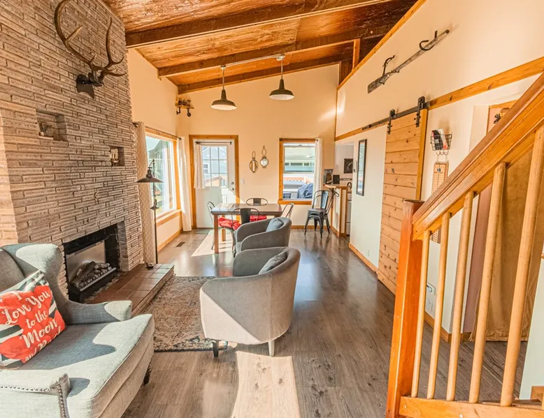 Book your stay at this coastal gem and enjoy an unforgettable getaway to Lincoln City! 4 Beds & Hot tub! The space Moon Over The Mills - Oregon Beach Vacations You'll be over the moon with a stay at Moon Over the Mills. This cozy beach cottage blends charm and comfort and will be the perfect home base to explore all the fun to be had in Lincoln City. The living room is warm and inviting with large windows, a vaulted ceiling, wood accents, and plenty of seating for curling up with a good book in front of the gorgeous stone wall fireplace. Drift off to sleep easily in the spacious primary bedroom furnished with a queen, chaise lounge, cozy seating area, and flatscreen TV. Ascend to the incredible loft—the ultimate versatile space for families and friends! This area is thoughtfully designed with both a comfortable queen bed and a sturdy set of twin bunk beds, creating a perfect family suite or a fun-filled zone for the kids. It’s a unique and charming space that provides a wonderful sleeping arrangement for your entire group. Preparing and gathering for meals will be easy in the fully equipped, galley-style kitchen, and bistro table that seats 4. After a fun-filled day at nearby Devil's Lake, guests can unwind in the cozy TV room, or enjoy a glass of wine or local craft beer on the covered patio or back deck before heading to McMenamin's Lighthouse Brewpub for brews and tasty bites. Before turning in for the night, enjoy a relaxing soak in the hot tub under a blanket of stars. This charming and cozy beach cottage is waiting to welcome you! Book your stay at this coastal gem and enjoy an unforgettable getaway to Lincoln City! Please note that boats, trailers, and RVs are unfortunately not permitted. Other things to note Maximum Occupancy. The number of people (including children) present at the Property may not exceed the maximum occupancy set forth in the Property Description. This is a dog friendly property, there is a non-refundable pet fee (plus tax) per pet (limit 2), per stay. Dogs Only. Please keep your pup off the furniture (including the couches, chairs, and beds) and pick-up after your pup. Please be sure to clean up after your pets to avoid additional charges. Minimum Age. You must be at least 25 years of age to rent the Property. You hereby confirm that you are at least 25 years of age. You acknowledge that failure of this confirmation to be true constitutes a material breach of this Agreement.