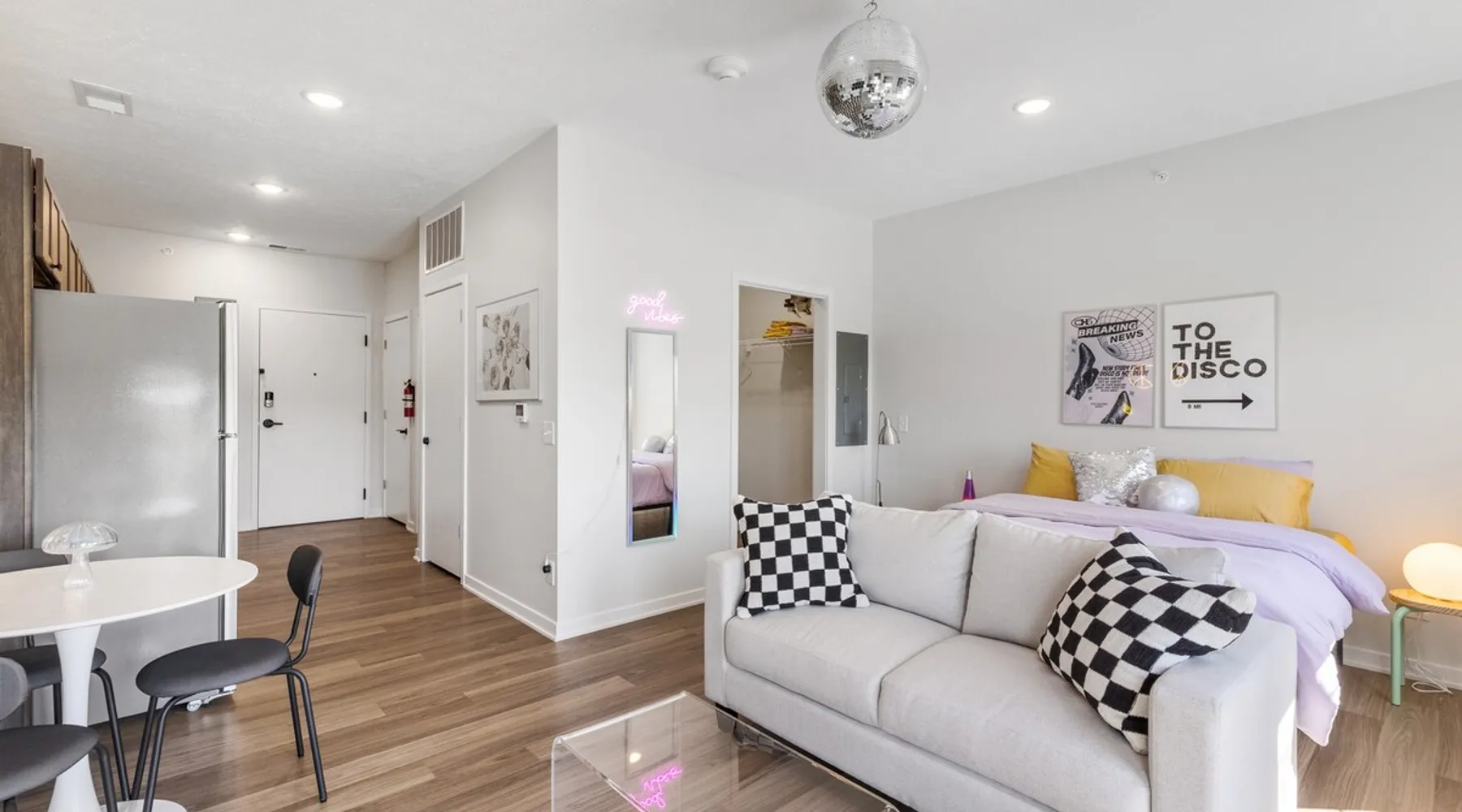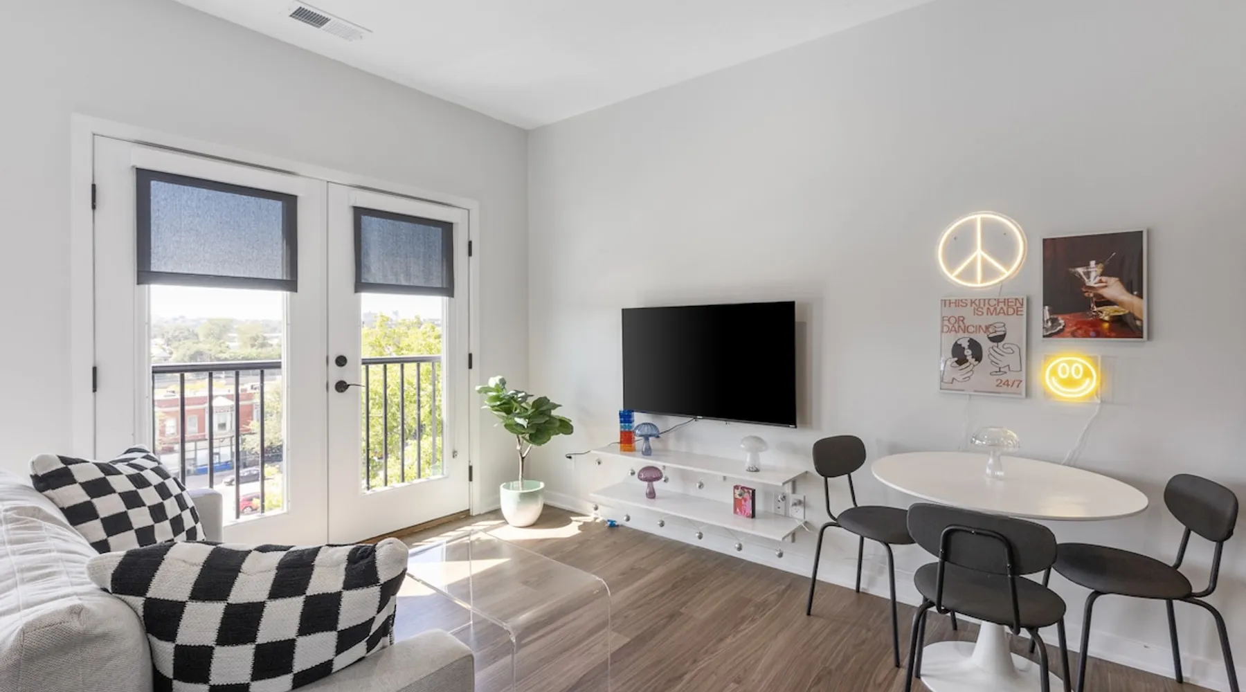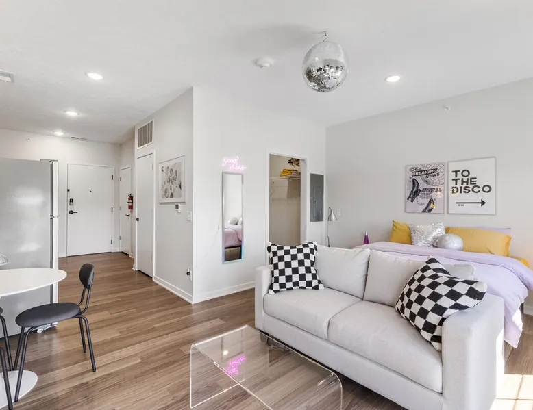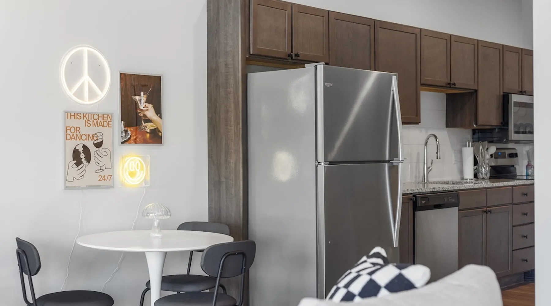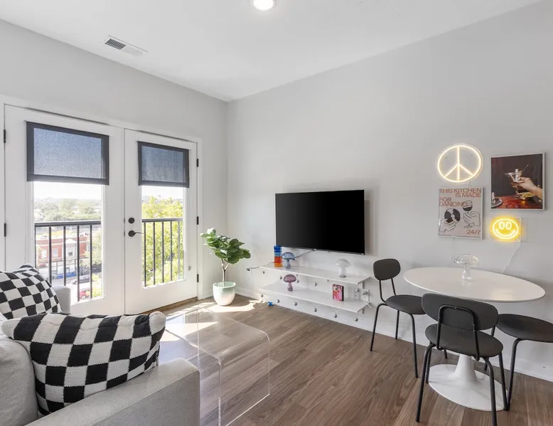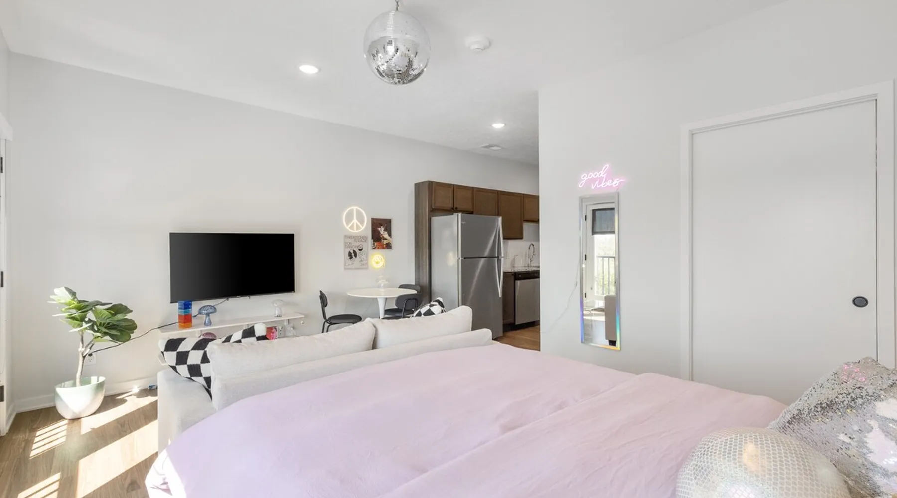 Welcome to a radiant Disco-themed studio in Omaha's Little Bohemia! Step into an era of glitter balls and neon with colorful décor and dazzling signs. This studio balances vibrant retro vibes with contemporary comfort, including a 50' Roku TV, a fully-equipped kitchen, in-unit washer/dryer, all nestled in a newly built complex. Experience the unique fusion of nostalgic disco charm and modern luxury in Omaha's historic heart. Let the music play! The space THE STUDIO - 50' Roku Smart TV - Comfy Sofa to relax - Fully Equipped Kitchen including ceramic cookware, bowls, baking sheets, toaster, coffee maker, and more - Coffee Provided - Shower and spacious bathroom - Free in-unit washer and dryer - Comfy queen bed featuring a medium memory foam mattress PARKING - There's plenty free street parking in the surroundings THE BUILDING - This is a newly built complex, with great attention on details - Fitness Center is available for use - There is a community room with great views to Little Bohemia, games, kitchen and living room area - Shared Sun Loungers, benches and BBQ grills also available THE NEIGHBORHOOD We are just one block from the fun scene of little bohemia, and a short 4 minute drive from the Old Market Guest access You'll have access to the entire studio and complex shared amenities. Other things to note PETS We allow up to 3 dogs for $90 per pet per stay. At the moment of booking, if you add you bring pets, Airbnb will add the first charge to the booking total, and we will request any additional ones. If you want to bring more than 3 dogs, please send us an inquiry, and we will approve on a case-to-case basis. DISCOUNTS We run last minute bookings, midweek specials and long stay discounts. GUEST RENTAL AGREEMENT, SECURITY HOLD (Which is not a security deposit and is allowable on Airbnb), & ID VERIFICATION REQUIRED Hi! We are your welcoming hosts and we look forward to hosting you. This place is extraordinary and does require guests to complete a Guest Rental Agreement, ID verification, and Security Hold (which is not a security deposit and is allowable on Airbnb) in order to receive Arrival Instructions. Details of the Guest Rental Agreement can be found in the House Rules. CANCELATION POLICY: The cancelation policy, and how it will apply to your trip, will be clearly shown in the page “Confirm and Pay” prior to completing your reservation. We highly suggest you read the cancelation policy, which applies for both cancelations, and change of dates. In that same page you’ll have the option to add trip insurance, which we always recommend!