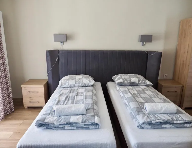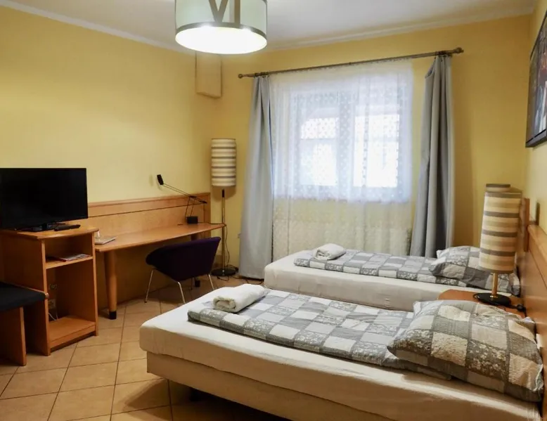 Comfortable Accommodations: Zajazd u Basi in Otyń offers private bathrooms with showers, garden views, and amenities such as hairdryers, work desks, and TVs. Each room includes a seating area and tiled floors. Dining and Leisure: The inn features a restaurant serving Polish cuisine for lunch and dinner, a terrace, and a bar. Guests can also enjoy a coffee shop and free WiFi throughout the property. Convenient Location: Located 30 mi from Zielona Góra Airport, the inn is near attractions like Zielona Góra Botanical Garden (12 mi) and Millennium Park (12 mi). Free on-site private parking is available. Highly Rated by Guests: Guests appreciate the friendly staff, comfortable accommodations, and excellent facilities, making Zajazd u Basi a highly rated choice. The double room includes a private bathroom fitted with a shower. The unit has 2 beds.