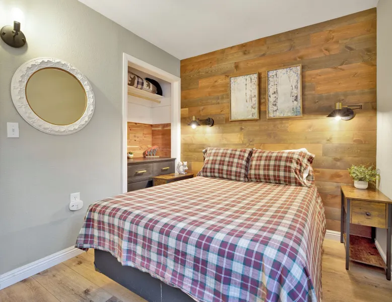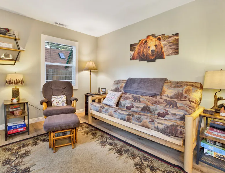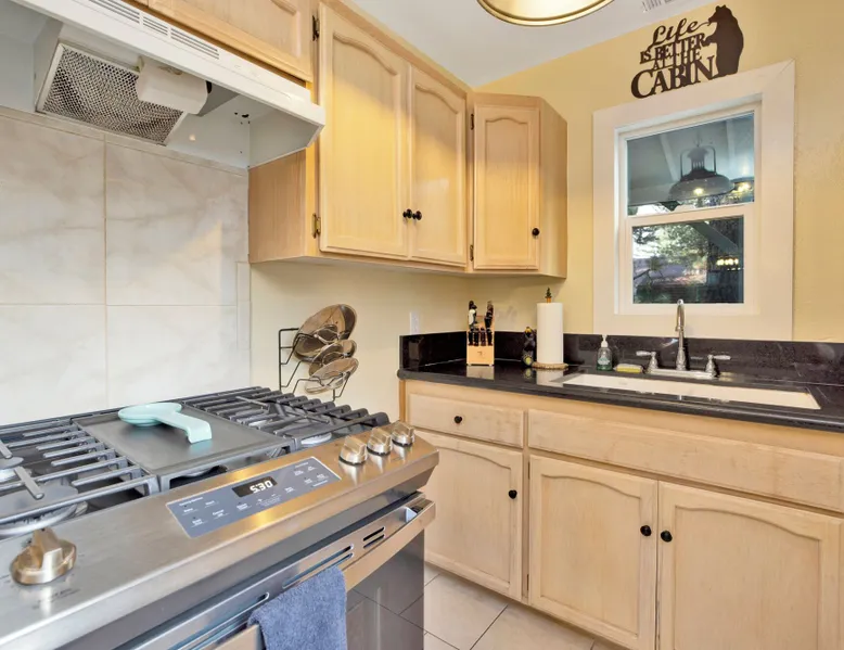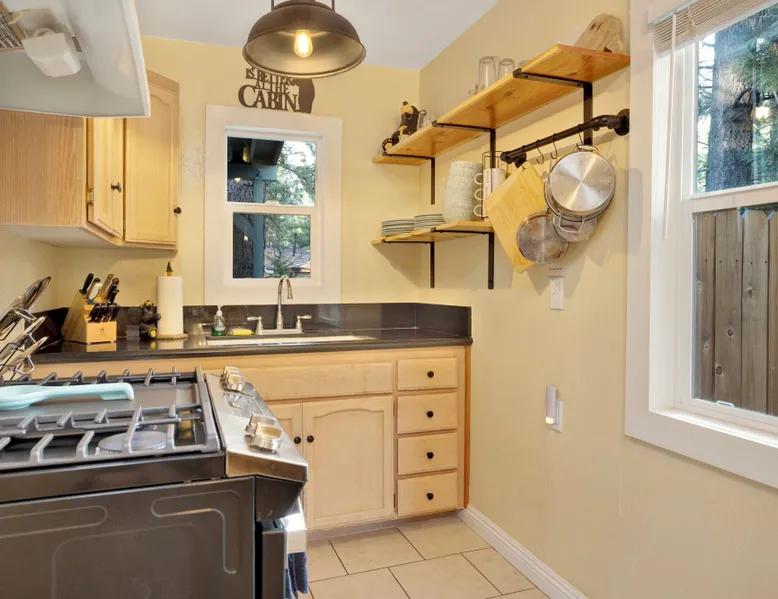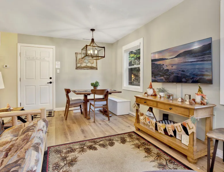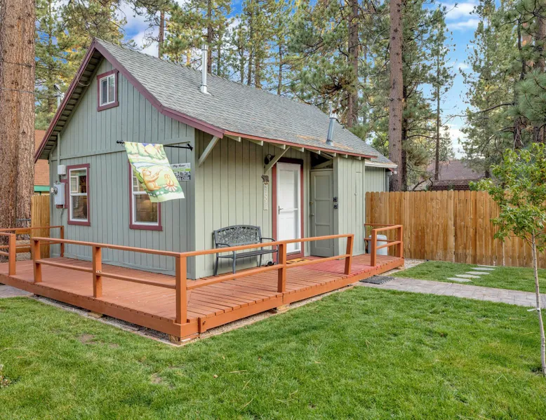 Beary Cozy Cabin | Hot Tub- Walk To Lake Perfect for a couple's vacation or small family looking to experience the ultimate vacation experience here in the mountains our freshly renovated and ultra-modern cozy Boulder Bay cottage is furnished with all that you need for a memorable vacation and sits within a short walk to Big Bear Lake. The private and tree lined property offers serenity and relaxation and is within a short ten minute car ride to the Village shops, marina, and the ski resorts for year round fun right at your fingertips. Freshly painted and furnished with new waterproof hardwood floors you will love the open floor space where you can easily enjoy your cozy living room area with a comfy couch, flat-screen Streaming TV, and a cute dining table. The basic but efficiently stocked kitchen has all that you need for preparing your home-cooked meals or slope snacks for the group including cookware, utensils, and general appliances for your use. The comfortable bedroom and cute bathroom are made up for your visit with warm linens, blankets, pillows, and fresh shower towels while a separate laundry room is on hand with a washer and dryer for those wet snow clothes or extended visits year round. Venturing outside you are met with a spectacular fenced yard, beautifully manicured with a flat horseshoe driveway for easy year-round access and parking and boasting outdoor dining features like a picnic table and propane BBQ plus a cute sun deck where you will love sipping your first cup of coffee in the mornings. Soak your muscles in the private hot tub under shooting stars here in the backyard as you relax and unwind together. Beary Cozy Cabin is the perfect getaway for a couple or small family to enjoy the mountains boasting all that you need for the ultimate vacation at your fingertips, don't miss your chance to experience this adorable cottage. Sleeping Arrangements: Bedroom: Full Bed Living Room: Full Futon Sofa Sleeper Bathroom Arrangements: Hallway 3/4 Bath (Shower Only) -Sleeps 2 -1 Car Driveway Parking -1 Pet Welcome w/ Additional Fee -468 Total Square Feet City Permit #: VRR-2025-0641