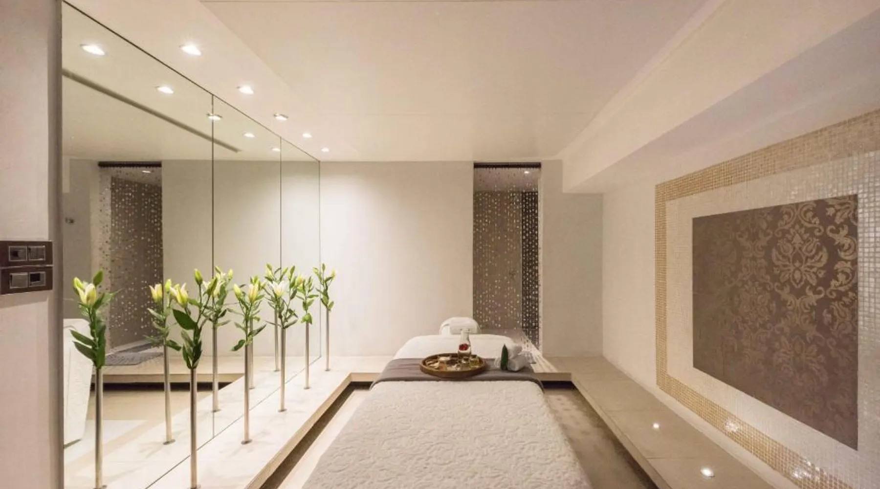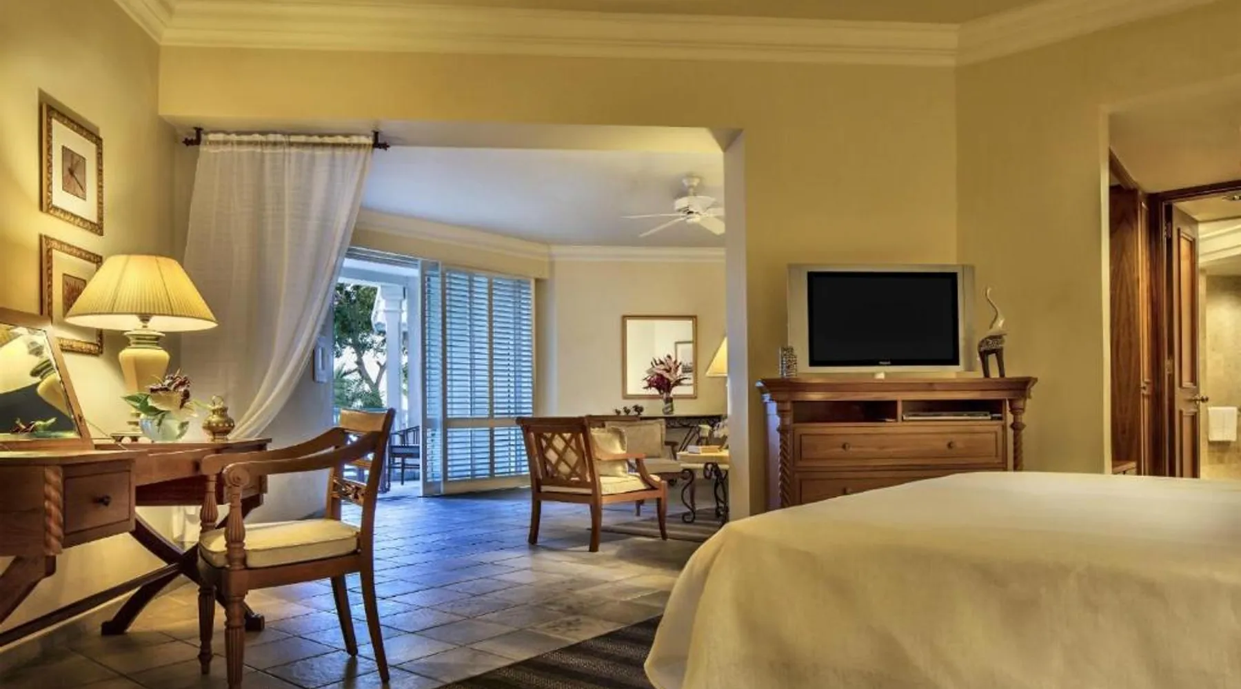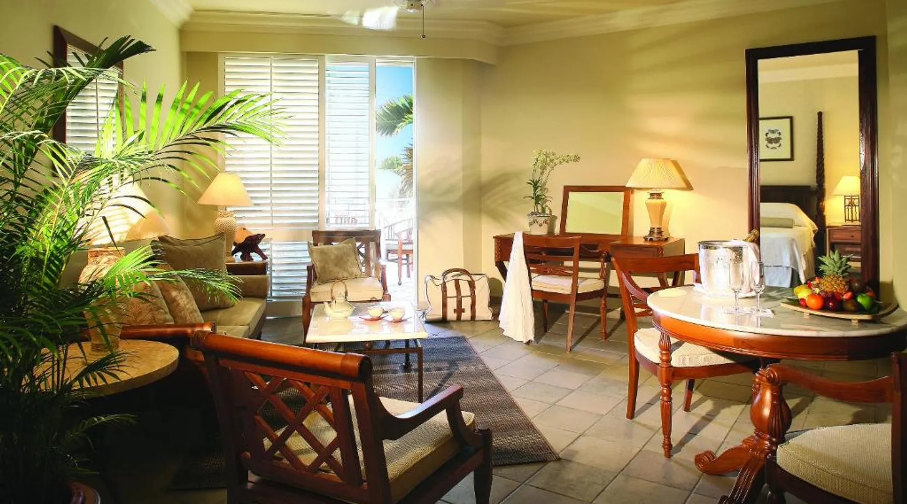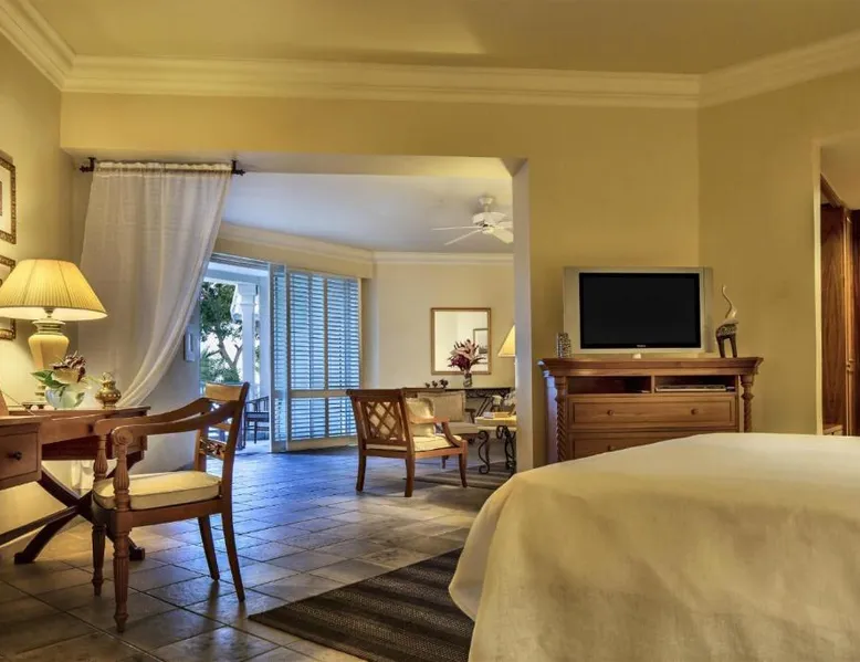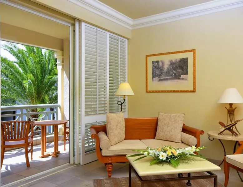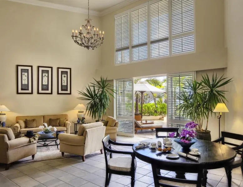 Set along the white sandy beach on the East Coast of Mauritius in Belle Mare, The Residence offers elegant rooms with free Wi-Fi. It features an outdoor swimming pool and spa center with a sauna. The bright airy rooms are air conditioned and come with a flat-screen satellite TV and a balcony or terrace with views over tropical gardens, ocean or lagoon. The private bathrooms come with a bath or shower and hairdryer. Butler service is available in each room. The Residence has a restaurant overlooking the pool. It serves dishes of International cuisine and local specialties. The property offers 3 tennis courts and a fitness center. Guests can enjoy deep sea fishing, catamaran cruises and scuba diving. Sir Seewoosagur Ramgoolam International Airport is 31 mi away. This air-conditioned colonial style decor offers a balcony with ocean views. It has a flat-screen satellite TV, DVD and CD players. The large marble bathroom is equipped with a separate bathtub, shower cabin and hairdryer. Private butler service is available in this room.