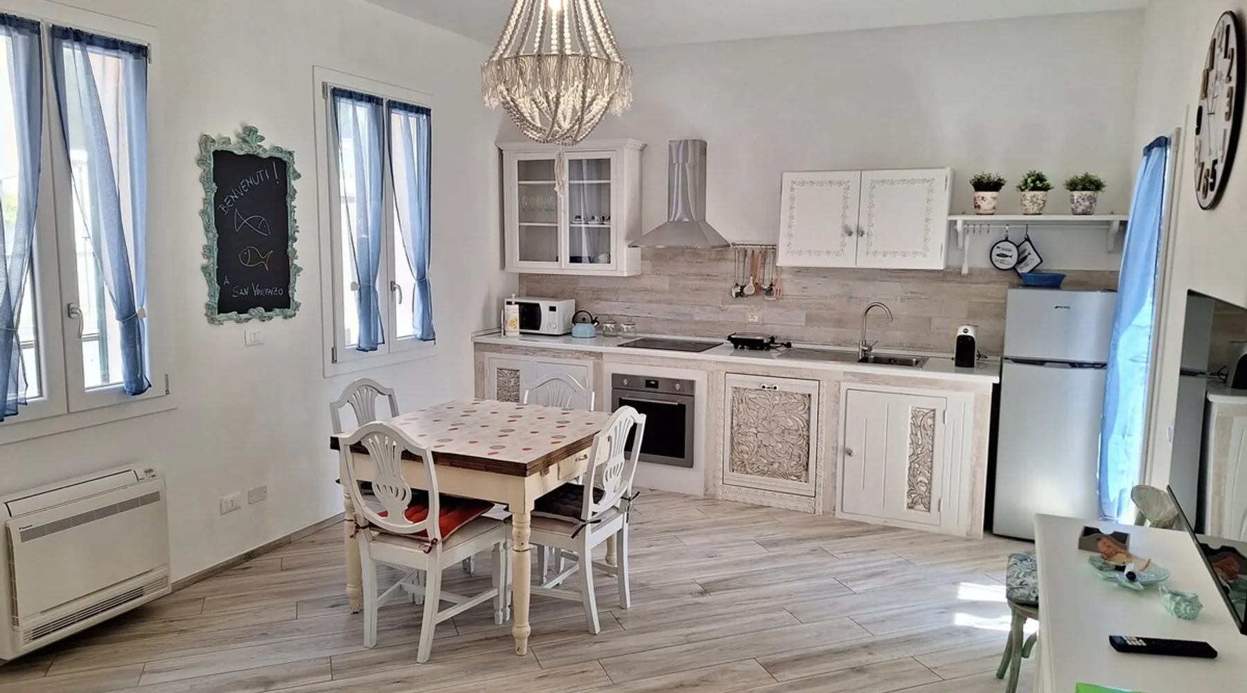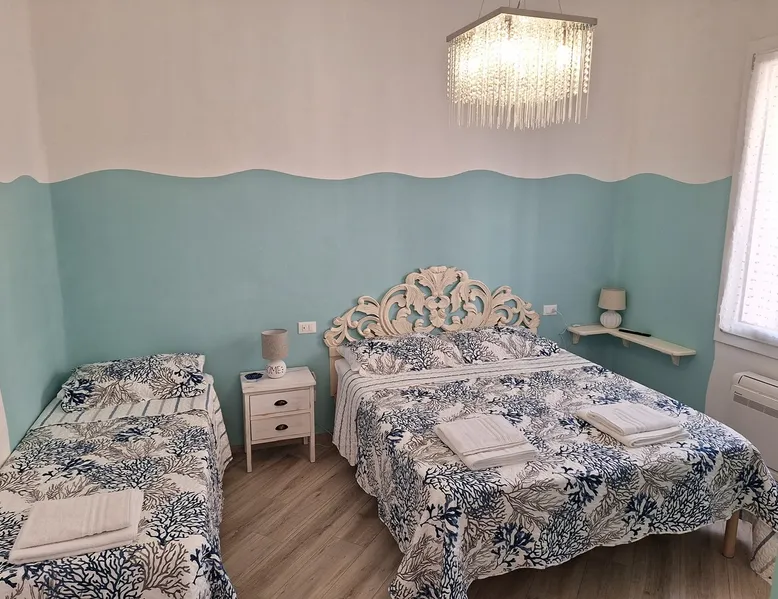 Three-room apartment with every comfort, in a quiet location 600 meters from the sea, independent entrance on the ground floor in a two-family villa portion, equipped with a private courtyard for exclusive use with garden table, barbecue, laundry room with washing machine. Every room has TVs and air condition units. The center as well as the sea is reachable on foot. Ideal for those who want to spend a relaxing vacation. Linens (towels, sheets, etc.) with surcharge. The space Completely renovated property with two bedrooms, one double + single bed and the other with two single beds, which can be transformed into a double bed. all rooms are equipped with air conditioning and TV. The kitchen is equipped with dishwasher, electric oven, microwave, induction hob and capsule espresso stain. Guest access Guests can freely access all indoor and outdoor areas. Outside, there is a wooden garden table with a wooden garden table with chairs where you can have lunch and/or dinner. Also outside is the laundry room with washing machine and laundry room available for guests. Registration Details IT049018C27PQWQW2A