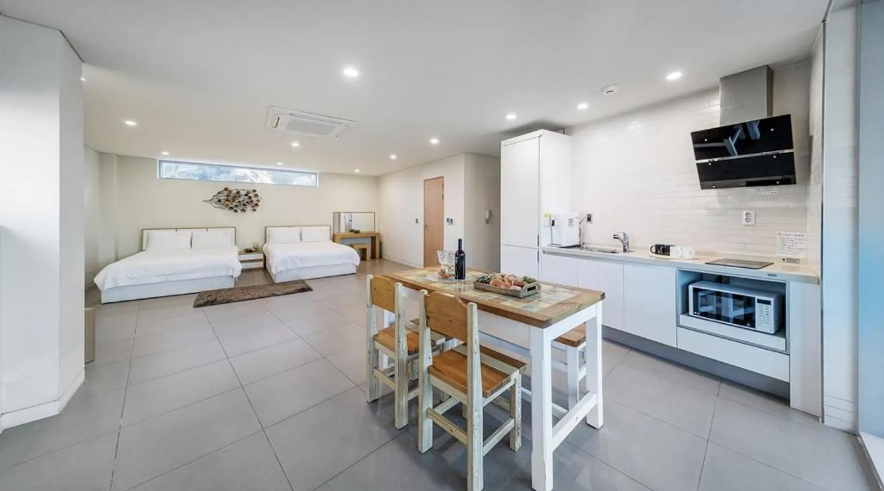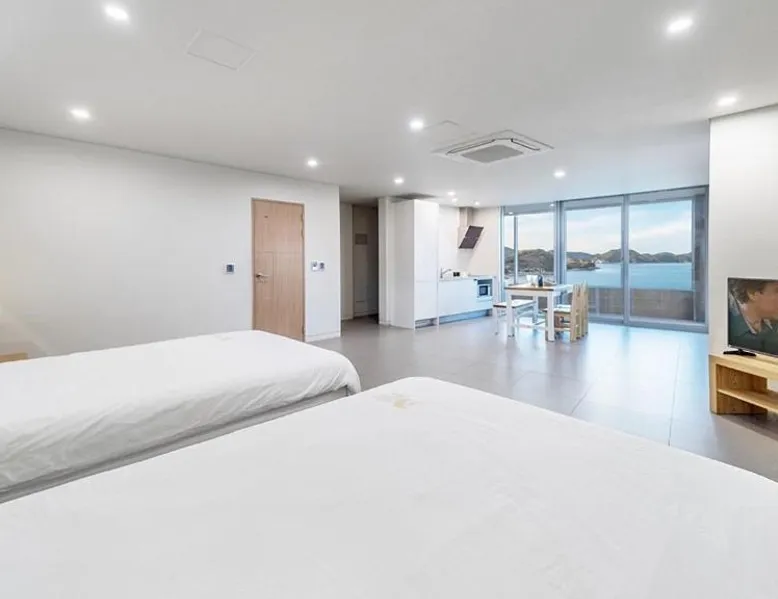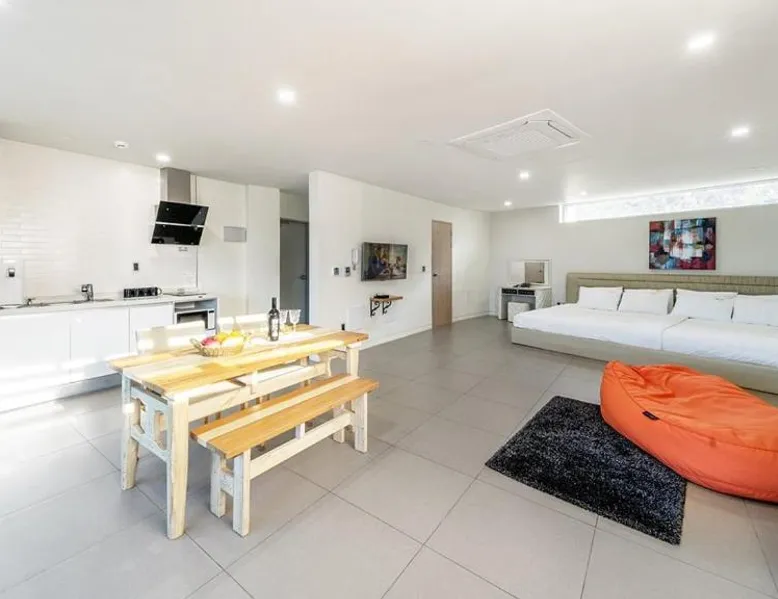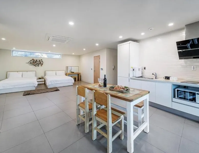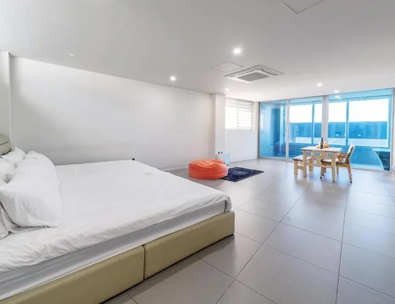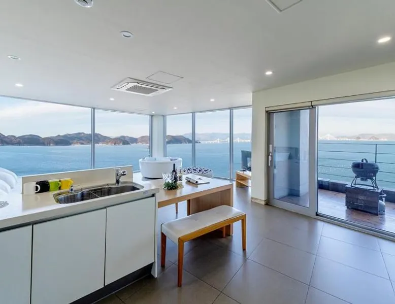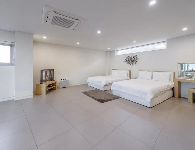 Elegant Villa in Geoje: Geoje Think House offers a serene villa experience in Geoje, South Korea. Guests enjoy a beautiful garden and a seasonal outdoor swimming pool. Free WiFi is available throughout the property. Comfortable Accommodations: The villa features family rooms equipped with air-conditioning and private bathrooms. Each room ensures a comfortable and relaxing stay for all visitors. Convenient Location: Located 27 mi from Gimhae International Airport, the property is also close to attractions such as Gukje Market (29 mi), Busan China Town (29 mi), and Busan Station (29 mi). Free WiFi is accessible throughout the area. This villa has a private bathroom and air conditioning. The unit has 1 bed.