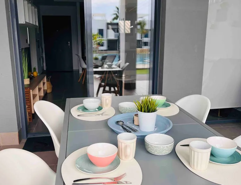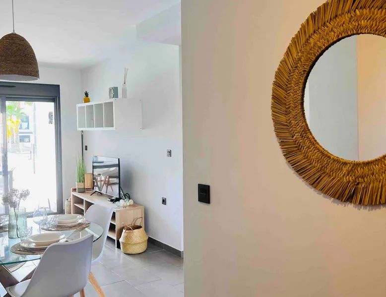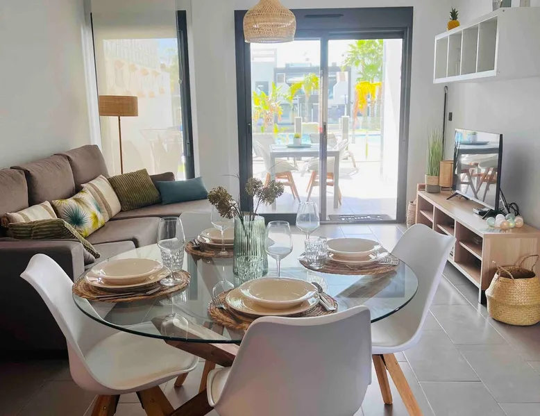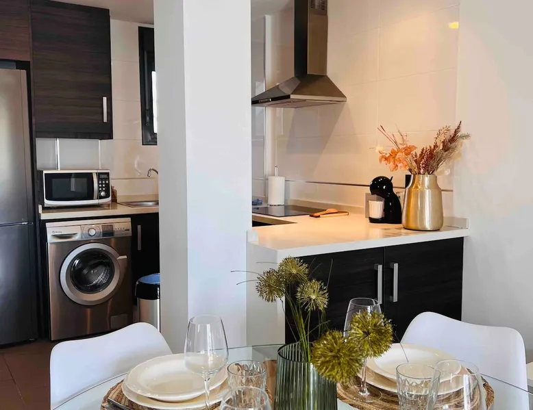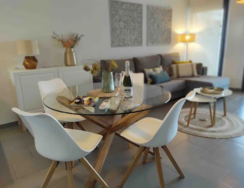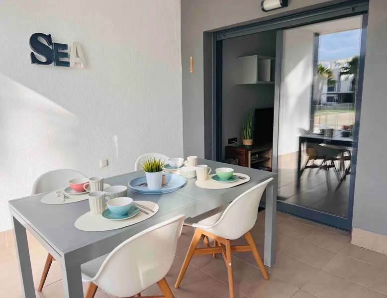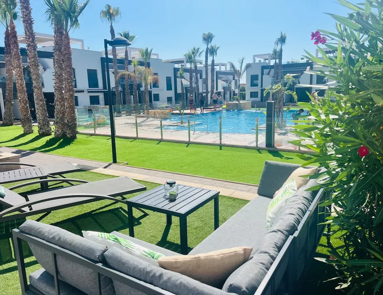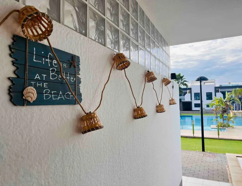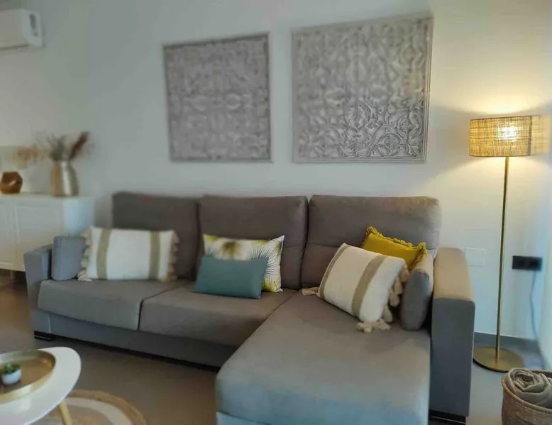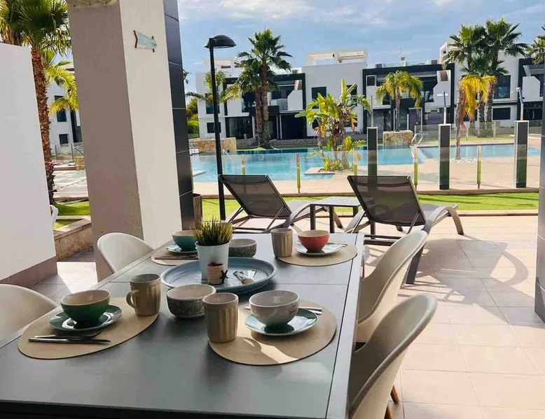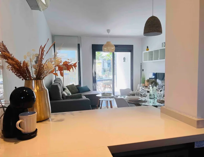 This beautiful, luxurious ground-floor flat has an excellent location. Within walking distance of the beach, shops and restaurants. Opposite " La Zenia Boulevard" Shopping Mall. It is the ideal holiday spot for any holiday lover of sun and sea. It is also ideal for the winter visitor and for a home-office in the sun! "Casa Manuel " is located in the far south of the Costa Blanca in the town of Orihuela Costa. Alicante and Murcia are a 45-minute drive away. The space The apartment is furnished with 2 bedrooms, 2 bathrooms. The kitchen is fully equipped. The attractively furnished living room is equipped with digital television and internet. There is air conditioning in all rooms. The sun terrace has central views and access to the communal pool. The flat has its own private underground parking space. Registration Details Valencia - Regional registration number VT-460196-A