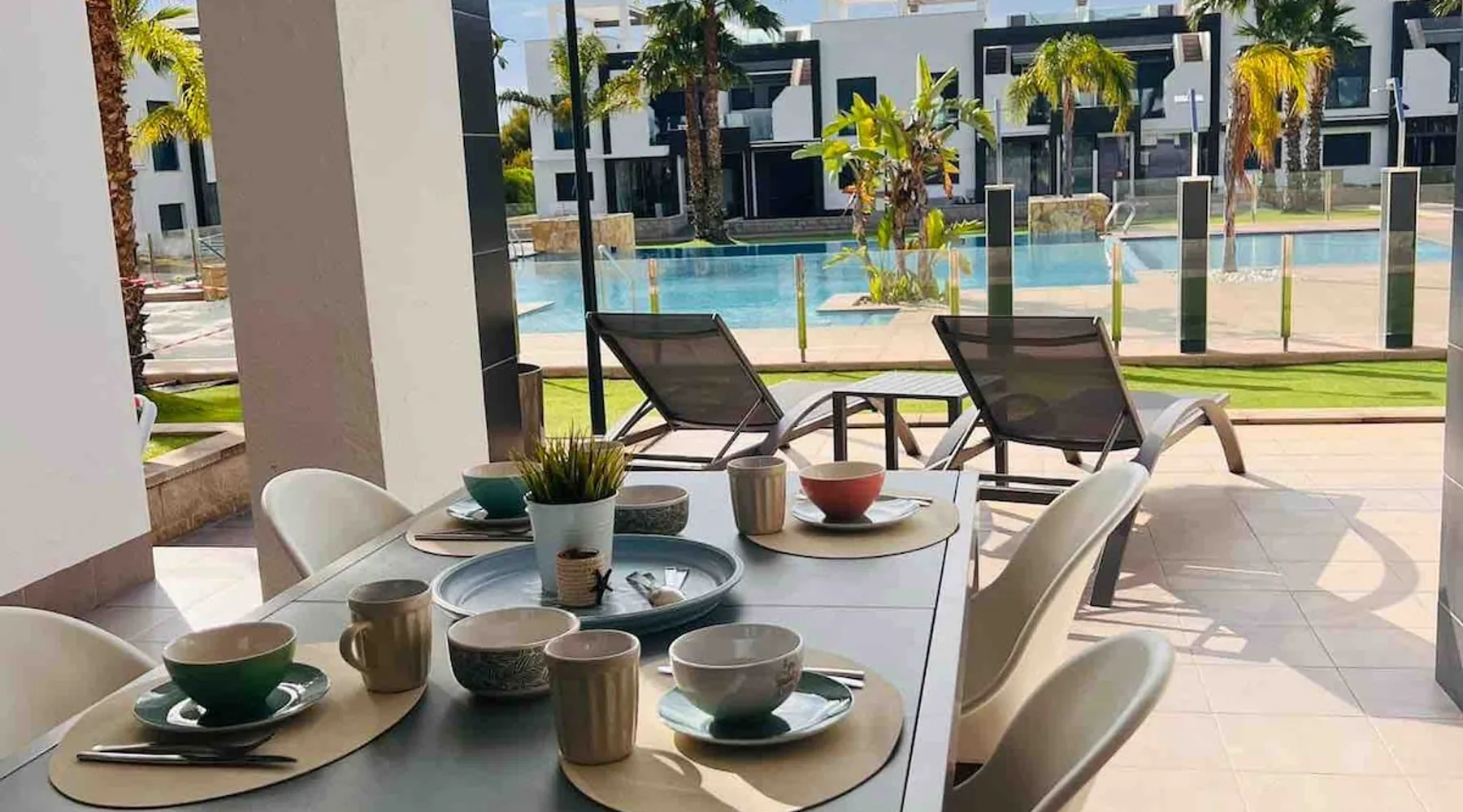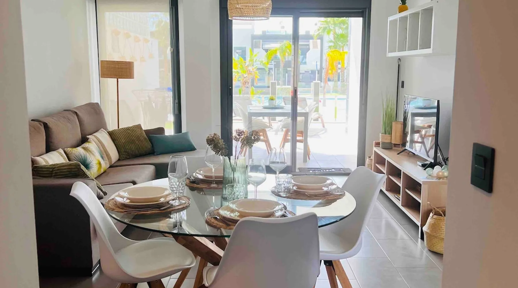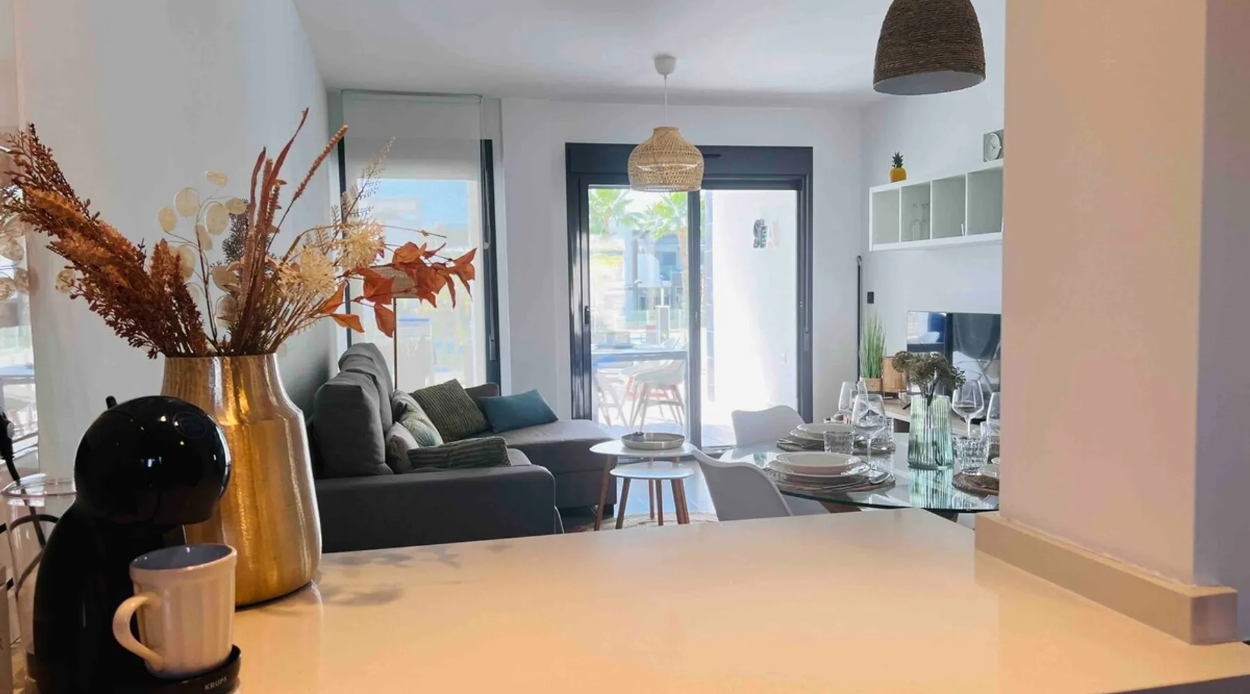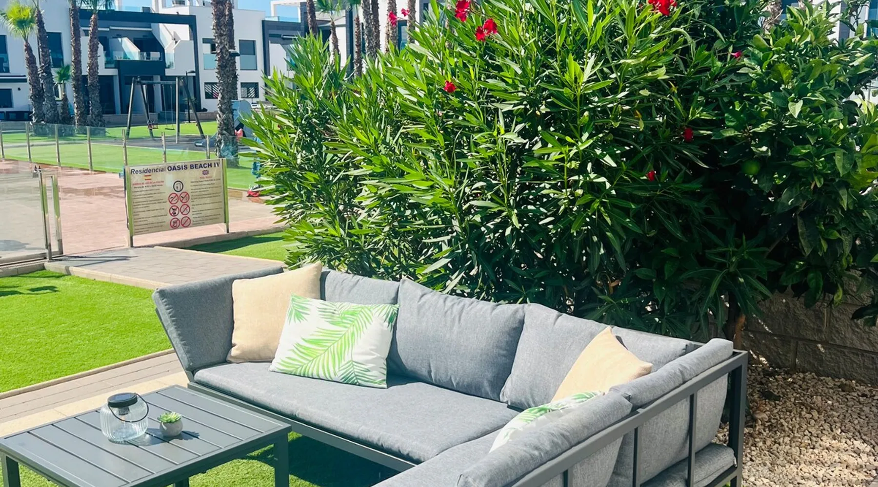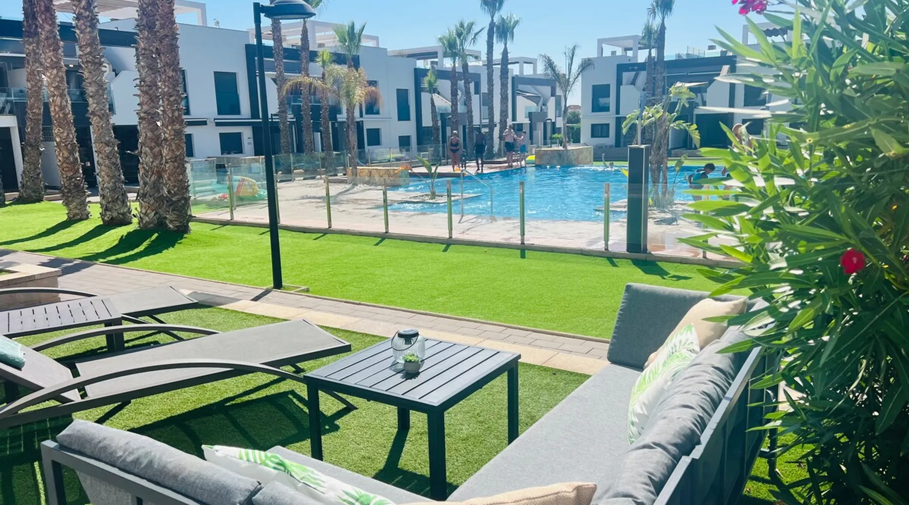This beautiful, luxurious ground-floor flat has an excellent location. Within walking distance of the beach, shops and restaurants. Opposite " La Zenia Boulevard" Shopping Mall. It is the ideal holiday spot for any holiday lover of sun and sea. It is also ideal for the winter visitor and for a home-office in the sun! "Casa Manuel " is located in the far south of the Costa Blanca in the town of Orihuela Costa. Alicante and Murcia are a 45-minute drive away. The space The apartment is furnished with 2 bedrooms, 2 bathrooms. The kitchen is fully equipped. The attractively furnished living room is equipped with digital television and internet. There is air conditioning in all rooms. The sun terrace has central views and access to the communal pool. The flat has its own private underground parking space. Registration Details Valencia - Regional registration number VT-460196-A