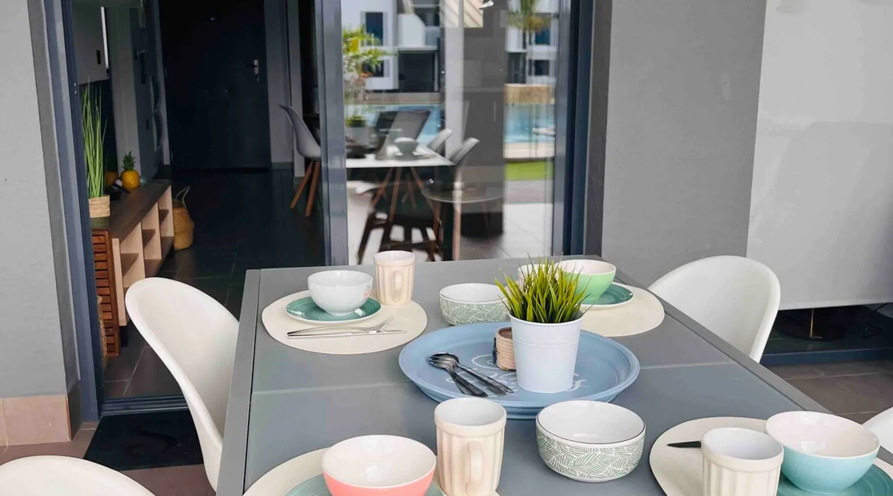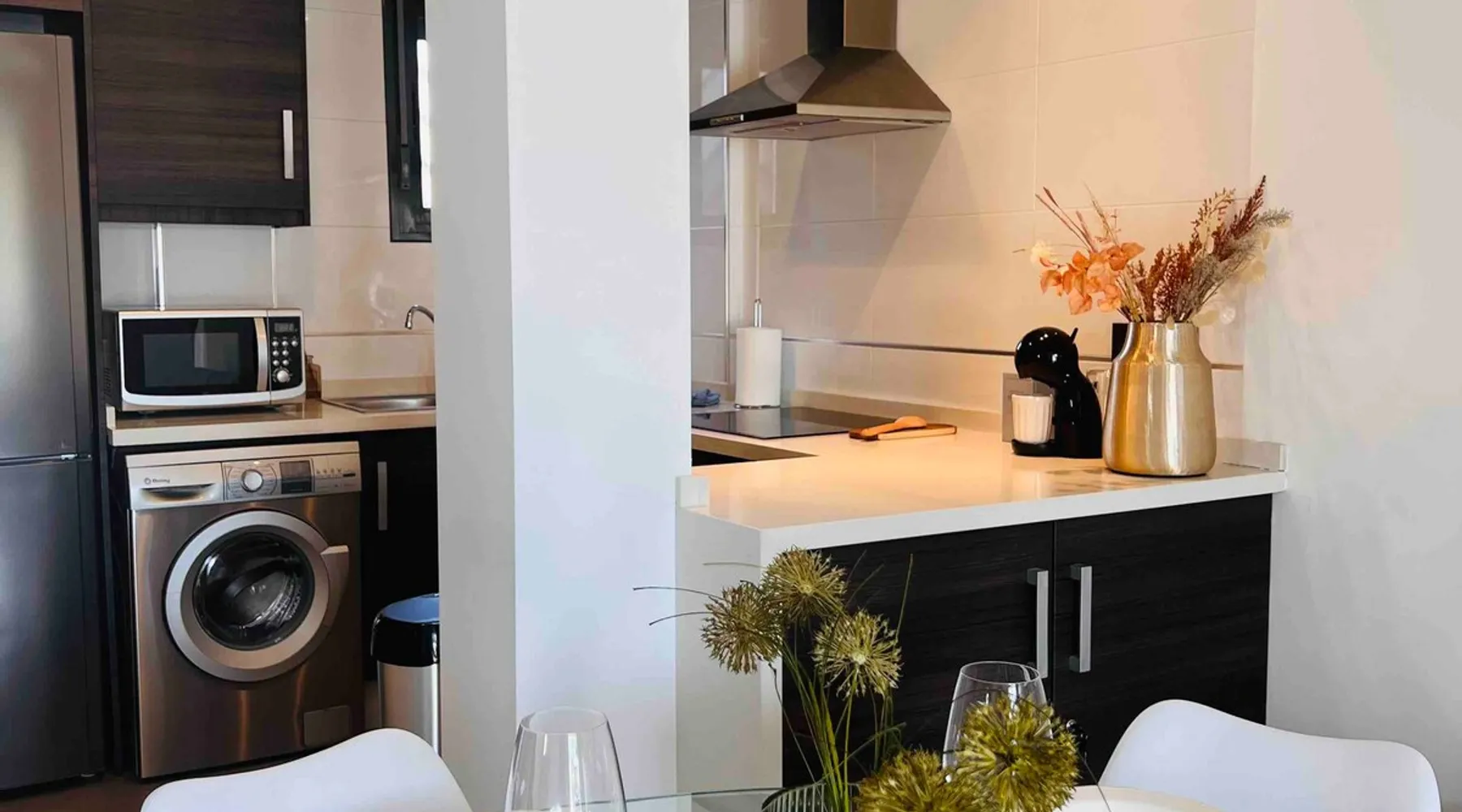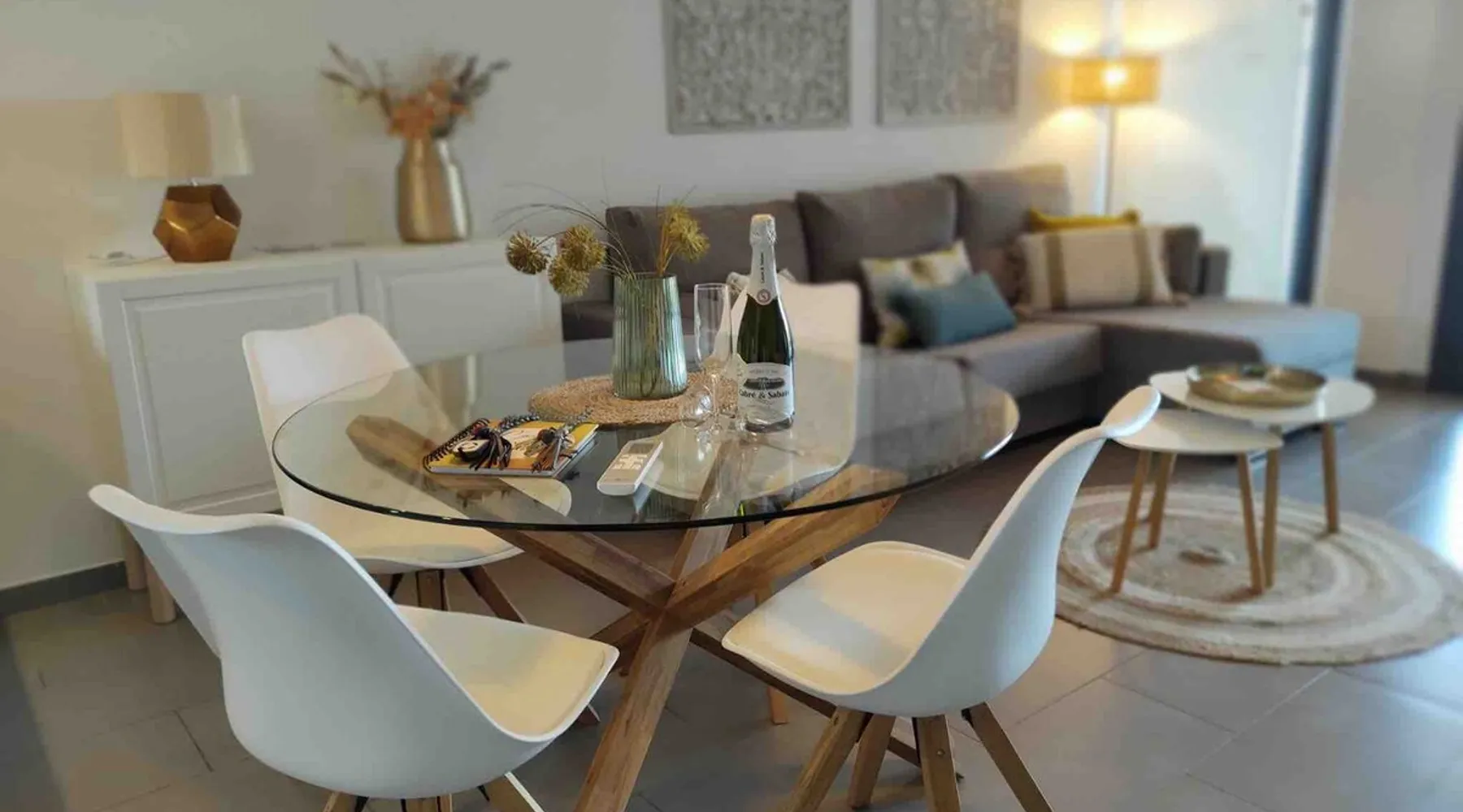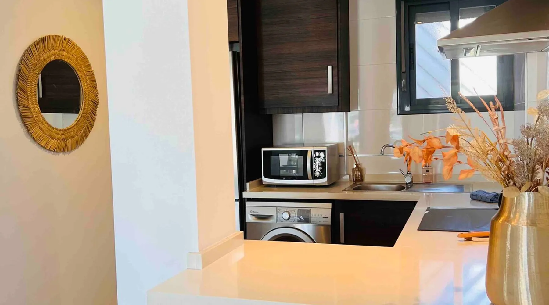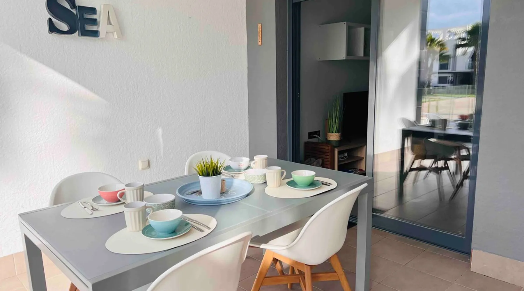 This beautiful, luxurious ground-floor flat has an excellent location. Within walking distance of the beach, shops and restaurants. Opposite " La Zenia Boulevard" Shopping Mall. It is the ideal holiday spot for any holiday lover of sun and sea. It is also ideal for the winter visitor and for a home-office in the sun! "Casa Manuel " is located in the far south of the Costa Blanca in the town of Orihuela Costa. Alicante and Murcia are a 45-minute drive away. The space The apartment is furnished with 2 bedrooms, 2 bathrooms. The kitchen is fully equipped. The attractively furnished living room is equipped with digital television and internet. There is air conditioning in all rooms. The sun terrace has central views and access to the communal pool. The flat has its own private underground parking space. Registration Details Valencia - Regional registration number VT-460196-A