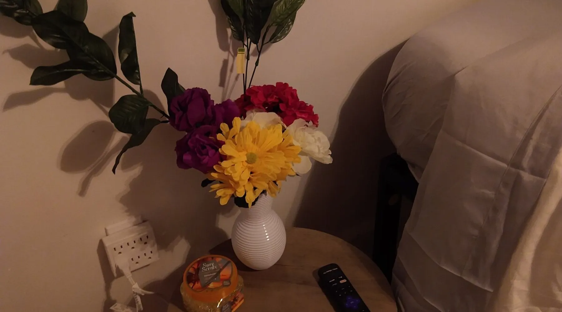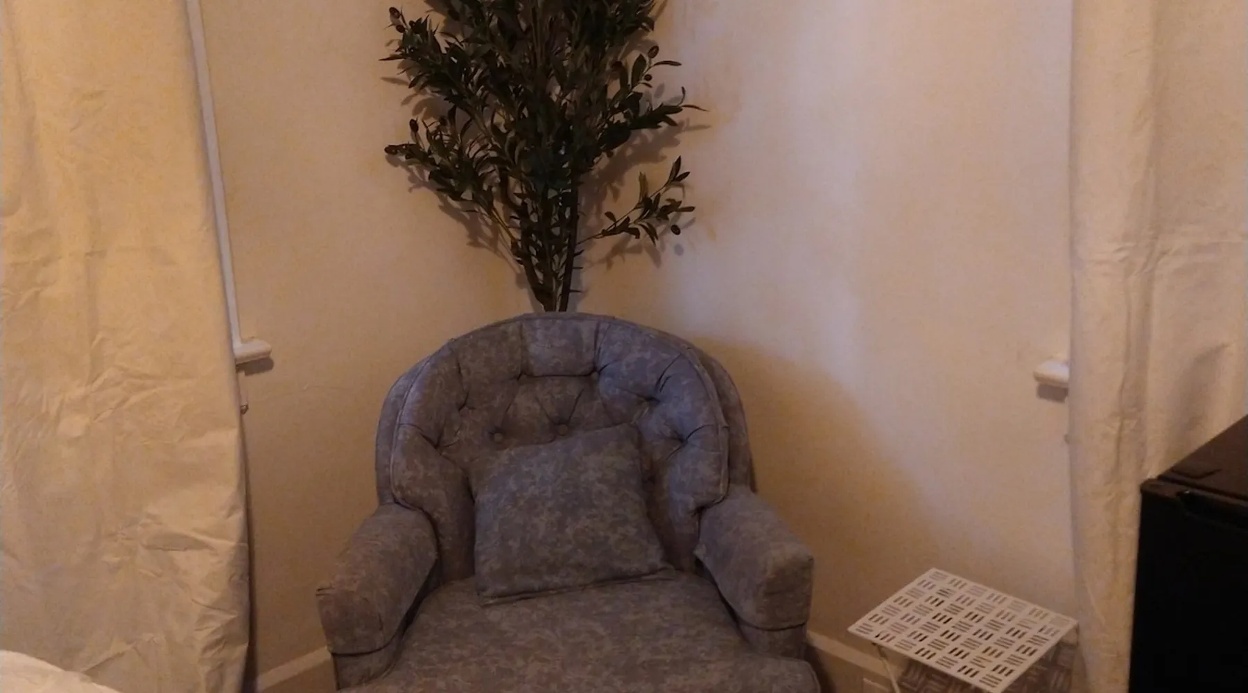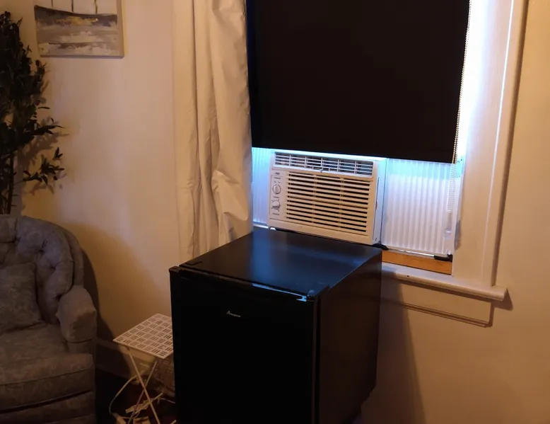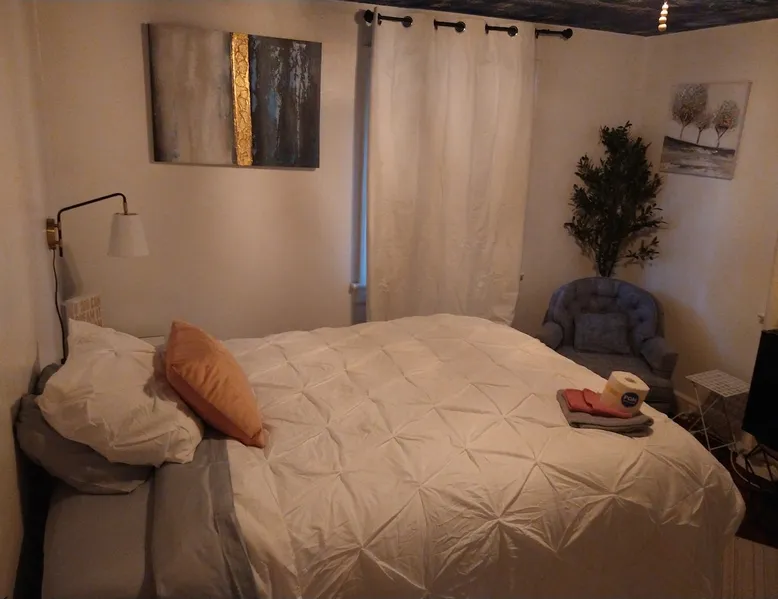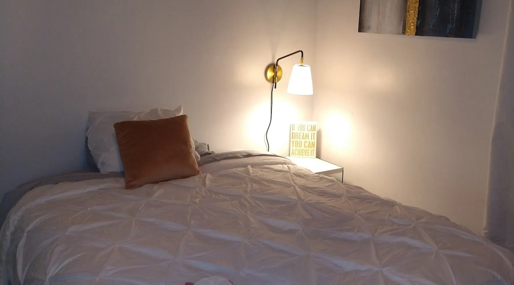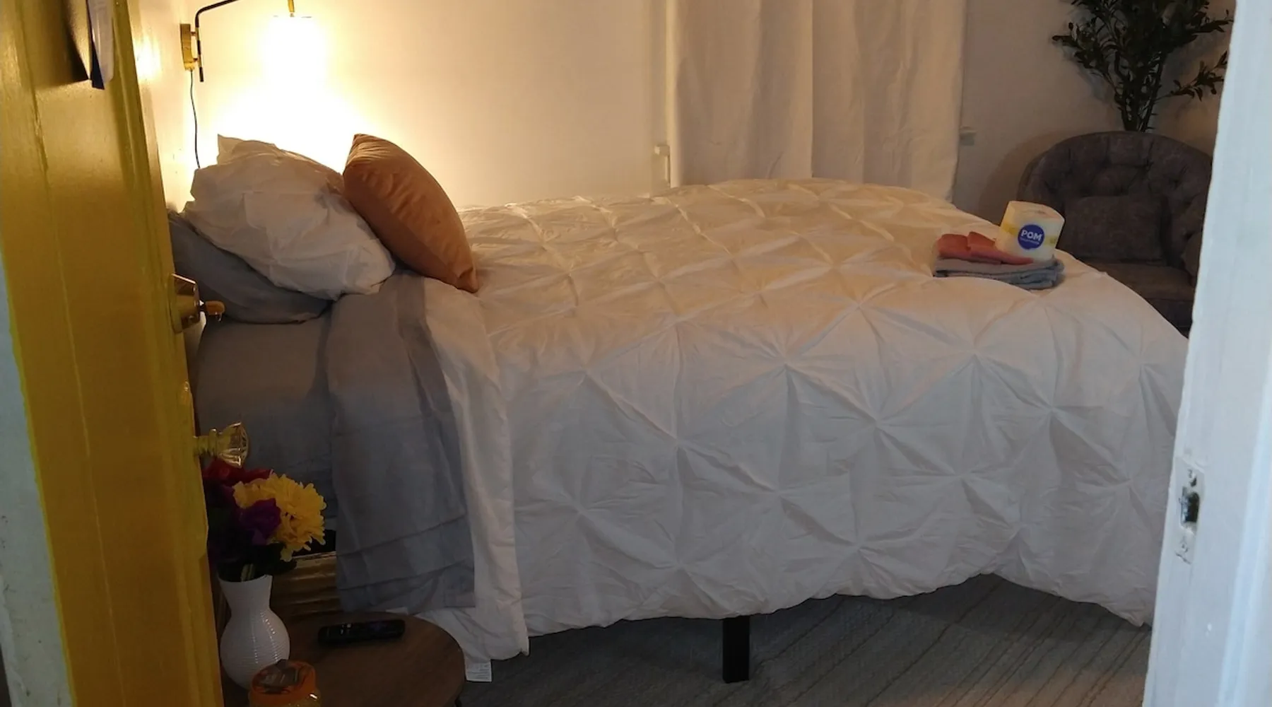 shared living. private room with lock. wifi/ cable/ laundry on premises. room has queen bed. desk with lighted mirror. mini fridge on the room. light for reading . sitting area with swivel tv for added comfortability