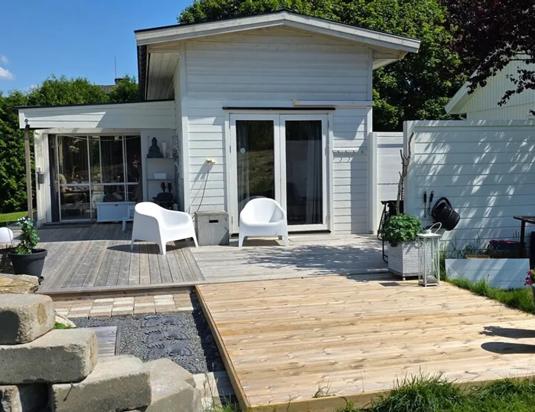 In our newly built guest house with balcony and glazed patio, you have a lovely location in the west with sun all afternoon and evening. Walking distance to beach and cliffs. Only 300 meters to grocery store and bus stop. It takes about 30 minutes to both Varberg in the south or to Kungsbacka in the north. From Kungsbacka, you can take the commuter train to Gothenburg if you want to experience the big city with all the possibilities it entails. Warm welcome! The space Accommodation 27m2 + sleeping loft Our newly built house is fully equipped for a comfortable stay. Kitchen with 2-burner induction stove, oven, fridge and freezer, microwave, and dishwasher. Toilet, shower and washing machine with dryer. Loft bedroom with double bed. Sofa bed available. Fiber connection and TV. Barbecue, large lawn, balcony and glassed-in patio. The house is centrally located in the community with about 300 meters to the grocery store and bus stop for transport to Varberg/Kungsbacka. 10-minute walk to the sea Guest access There is access to a large lawn, barbecue, patio, glassed-in patio. Plenty of room to park! Other things to note Address: Frillesås Aspväg 4, 439 62 Frillesås