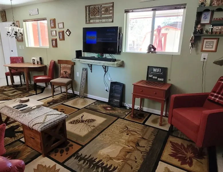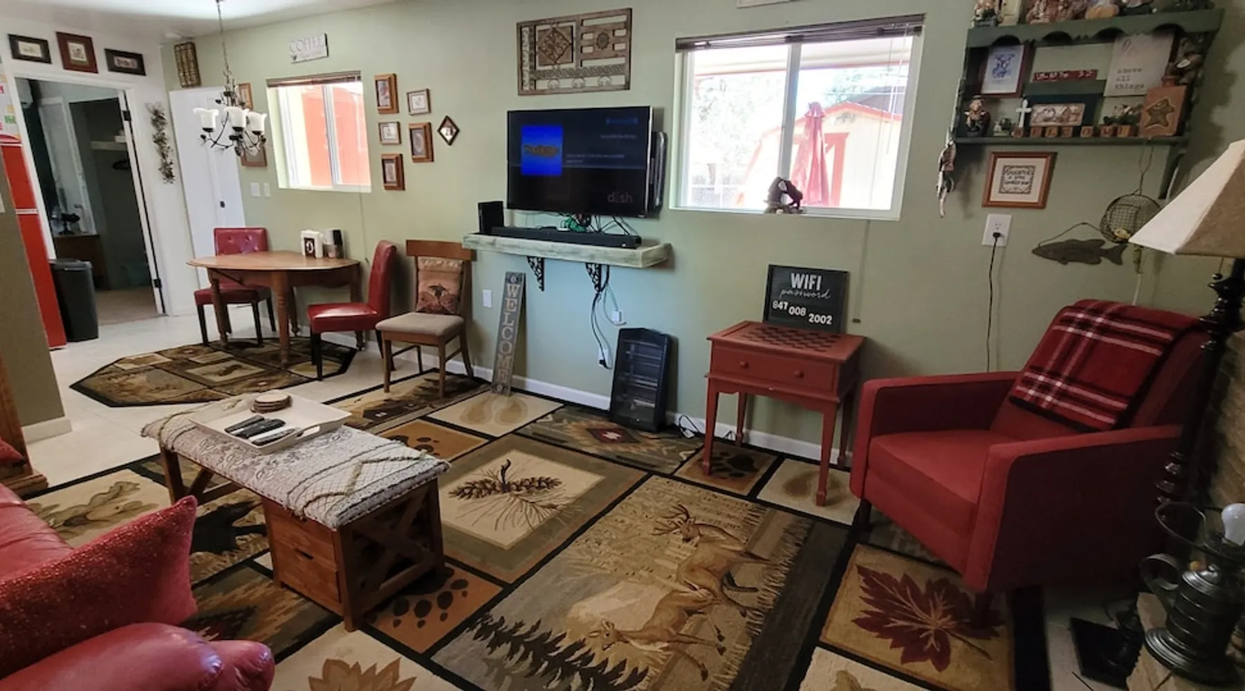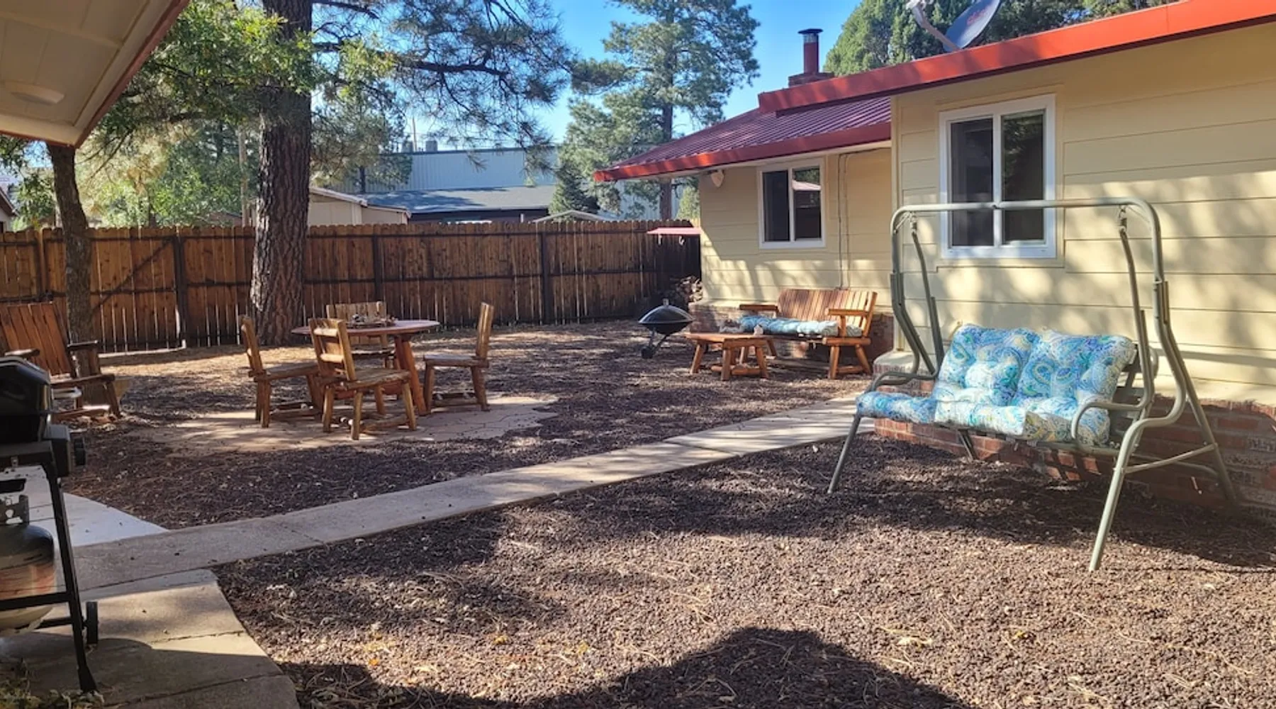 Relax and enjoy the mntn ambiance at this peaceful, quiet house. You'll only be 43 minutes from Sunrise Ski Resort!! and close to everything if you want to venture out and indulge in any of the many activities there are to do. Close to lakes, hiking, fishing, antique shopping, great restaurants, and 2 Saturday markets in the summer. You won't want to leave! The space Cozy home in the trees with a privacy fenced backyard for outdoor enjoyment for you and your 4 legged family members. BBQ, nice pine table and chairs, pine couch with cushions and loveseat swing! Small wood burning firepit for cozy evening marshmallow roasting, wood provided. Nicely appointed full kitchen. K-cup coffee maker w/dripp pot. Close to Rainbow & Show Low Lake, rent a boat-kayak-paddle board from Rainbow Lake or White Mtn Outdoor Rentals, close to great hiking trails and eclectic antique shopping. Come visit the cooler mountain air and enjoy your favorite home away from home. Guest access Entire property. Other things to note We ONLY allow DOGS, prior approval n anything else. At this time, the indoor fireplace is nonfunctional. There is a mobile firepit in the backyard with available wood to roast marshmallows and enjoy a small fire!