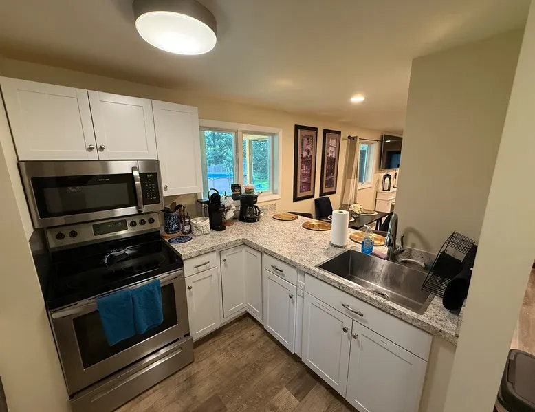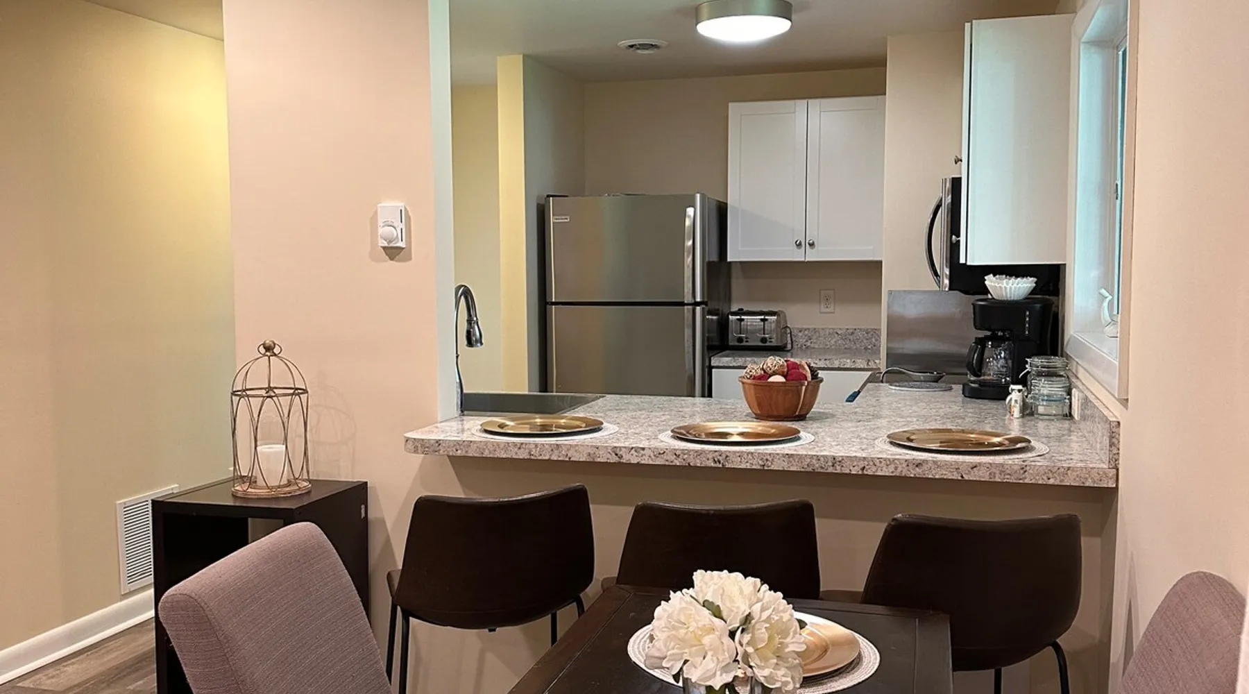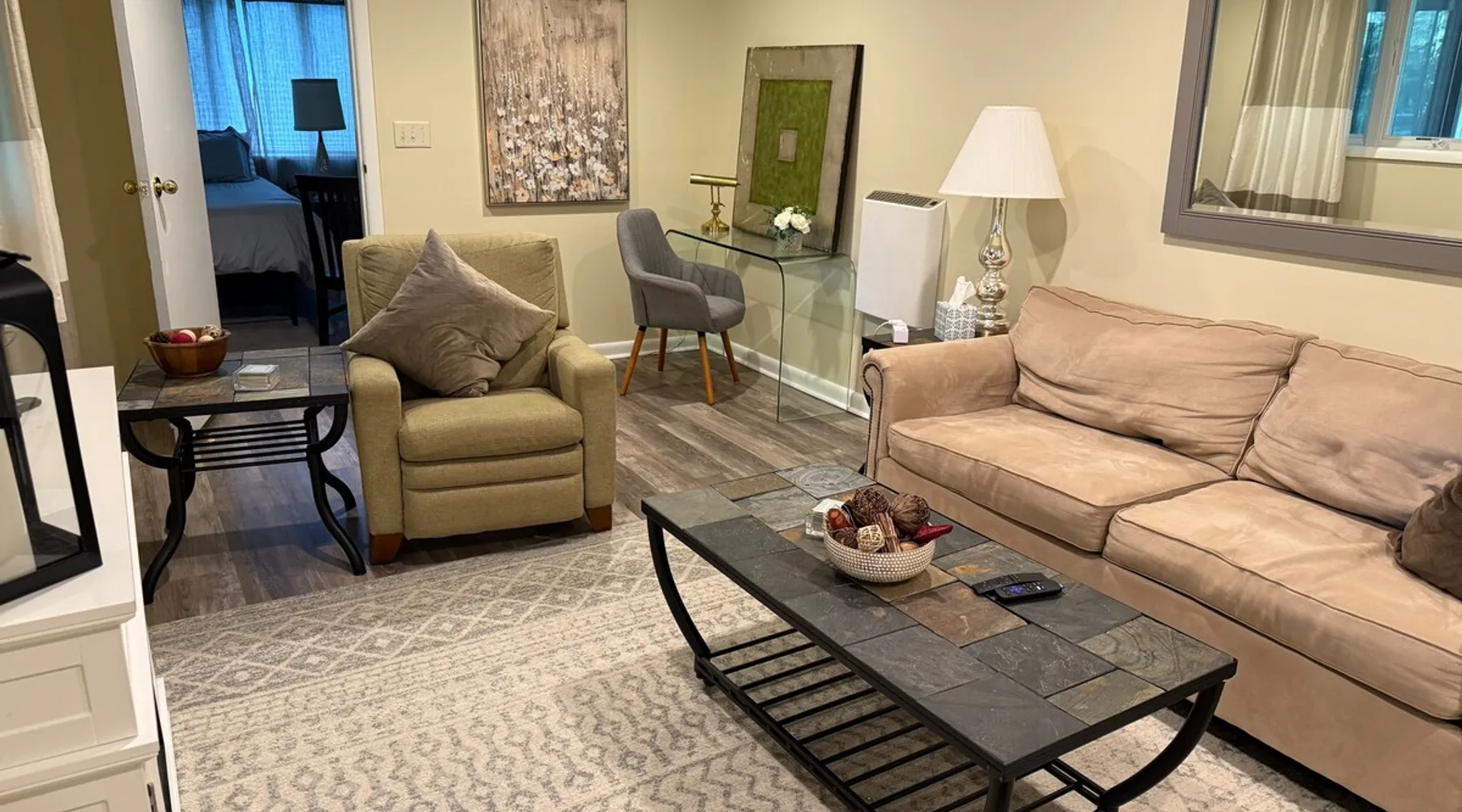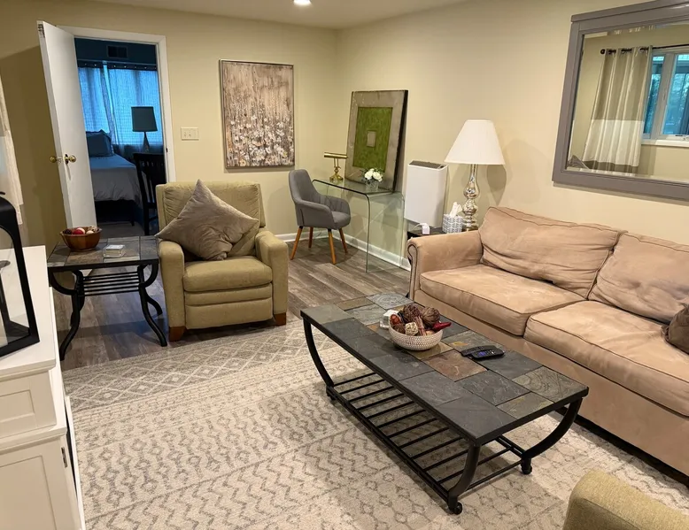 Relax with your family and friends in this recently updated private apartment. This 2 bedroom, 1 bath space can accommodate up to 8 guests with 2 queen beds in the first bedroom, a queen bed in the 2nd bedroom, and a queen sleeper sofa. The space includes a well-equipped kitchen, a private patio, parking, and more! Just minutes to downtown and the stadium, the apartment is conveniently located off of N. Atherton near Wegmans with access to I99 and 322.