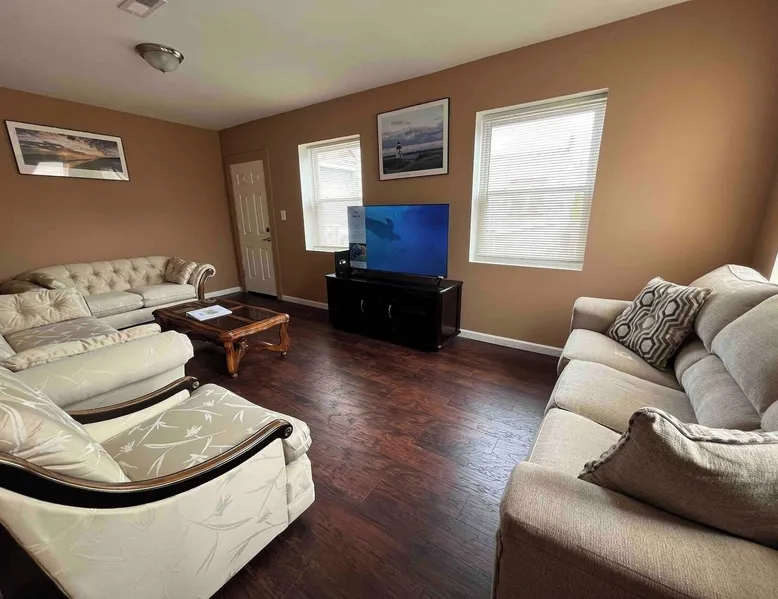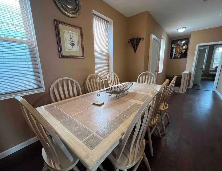 This 3 bedroom property is a great place to relax and rest your head! Blocks from the beach, boardwalk and casinos, and close to popular Atlantic City shops, outlets and eateries! Quick accessibility to the expressway, Convention Center and Boardwalk Hall. Off street parking available, and literally minutes to the action and ALL that Atlantic City has to offer! Enjoy this 3 bedroom home with a comfortable living room, full kitchen and 1.5 bathrooms. LOCATION: The historic Formica’s Bakery is 1 block away, take a very quick stroll to enjoy a cup of coffee and a delectable goodie. Or a block away you can enjoy the legendary White House Subs, known for the Best Subs. Ever! Don’t miss out on filling up one of their amazing specialty submarine sandwiches! LIVING ROOM and KITCHEN: The living room has a Smart TV with streaming apps (there is no cable TV). The kitchen updated with working appliances and a dining table. SLEEPING ARRANGEMENTS: -This 3-bedroom home comfortably sleeps 7 people. -Each bedroom has linens and bedding provided. -There is a pull out couch in the living for additional sleeping. BEDROOM 1 - 1 King Sized bed BEDROOM 2 - 1 Queen Sized bed BEDROOM 3- 1 Full Sized bed BATHROOMS: There are 1.5 bathrooms. DECK: There is a spacious deck with seating to enjoy an outdoor space. AMENITIES: The home is also equipped with Wifi, a coffee maker, an iron and ironing board, washer and dryer, and much more! (Please note, we do not supply detergent) BOOK WITH US and unlock discounts and special offers exclusive to Cozy Cohost guests. Take advantage of all that Atlantic City has to offer and enjoy savings at top local spots including famous restaurants, night clubs, spas, coffee shops, distilleries, breweries, boat tours, bike rentals, mini golf, and more... HONESTY and EXPECTATIONS: At "Humble Abode", we want our guests to have a clear understanding of the distinctions between vacation rentals and hotels. While we diligently maintain our properties, wear and tear are inherent aspects of vacation rentals. Although we address issues promptly, the high volume of guests may result in occasional delays between stays. Any significant damage or serious concerns are prioritized and resolved before a guest's check-in, provided we are made aware of the issue. CLEANING: Our dedicated cleaning team meticulously sanitizes and cleans each home. Unlike standard hotel rooms, homes entail a more detailed cleaning process due to their larger size. Despite our team's efforts to ensure optimal cleanliness, minor oversights may occur. For substantial errors, we are committed to rectifying the situation promptly. While we take pride in our cleaning standards, we ask for understanding that, as in any human endeavor, perfection is not always attainable, especially when minor details have no direct impact on your stay. HOUSEHOLD ITEMS: As private residences, it's important to recognize that household items may break or require repairs during your stay. While we understand the inconvenience this may pose to our guests, it's equally disruptive for us. Appliances such as water tanks, HVAC systems, dishwashers, and refrigerators may experience issues. We cannot guarantee immunity from such occurrences, but we pledge to address and resolve any situation swiftly. While we assure our commitment to guests' well-being, we're honest about the potential for unforeseen issues. AMENITIES: -WiFi included; exterior ring camera security for added safety. -Linens, towels, and basic amenities provided. -Guests must purchase their own amenities when stock runs out. -No laundry detergent is provided. -Basic cookware supplies; no salt, pepper, oil, or kitchen condiments. RESERVATION/CANCELLATION NOTES: -If your dates are booked, please ask about our other listings. -Changing reservation dates or guest quantity may incur additional fees. -Rates/prices subject to change based on reservation adjustments. -Cancellation policy WILL apply if reservation is cancelled. Please review before booking. -Airbnb Trip Protection suggested for added coverage. OTHER DETAILS: -Atlantic City is a barrier island and city style environment; expect possible common sightings of household ants, critters or mice especially during certain times of the years. Properties are not immune to household issues like this and may have evidence of preventative treatments and measures. -Beaches are free; no tags or passes required. Beach amenities not provided. -We utilize quilts on most of our beddings for comfort, durability, and sanitary reasons. If extra blankets are needed, let us know before check-in. -If you are extremely sensitive to smells, please note that odors from food, smoke, or other sources from outside or neighboring units may occasionally be noticeable. If this is a major concern for you, please keep this in mind. ADDITIONAL INFORMATION: -Visit the "Where You'll Be" section for more information about the area. There are personalized house guide with local information, suggestions, and recommendations. -Respectful behavior requested due to close proximity of homes. -This is NOT a party house. City-wide quiet hours from 10pm-7am. -We ask that you please respect the neighbors, the neighborhood and the home. -Please monitor noise levels, especially during the night. -You must be 21 and over to book. -We ask that you please read the house rules and listing in full when booking. OUR COMMITMENT: We strive to provide each guest with a 5-star experience, enabling them to truly enjoy their getaways. However, we acknowledge that achieving absolute perfection in a private residence may be unrealistic. If a flawless experience is your expectation, a vacation property rental might not align with your preferences. Our aim is to be transparent, manage expectations, and ensure a comfortable stay for all our valued guests. We live in the city and are available 24/7 for your guest services. - Cozy Cohost LLC We take pride in offering a comfortable and enjoyable stay. P