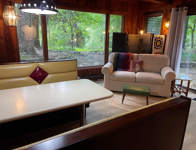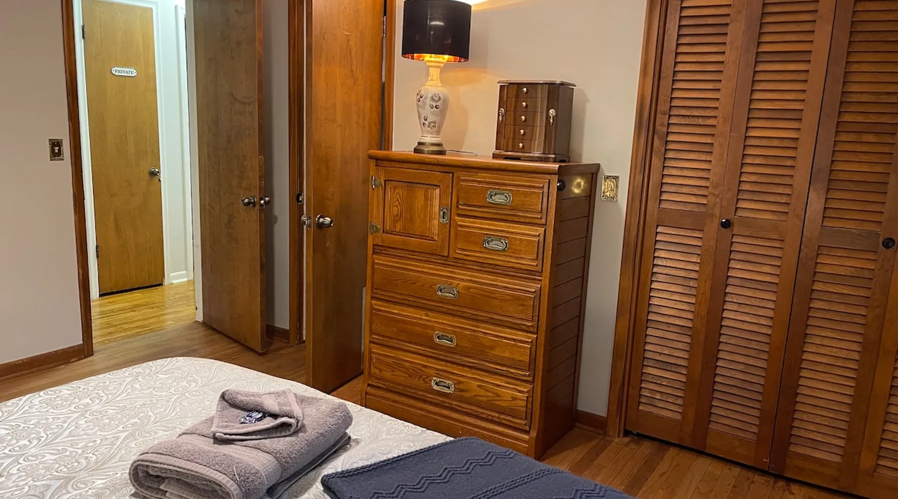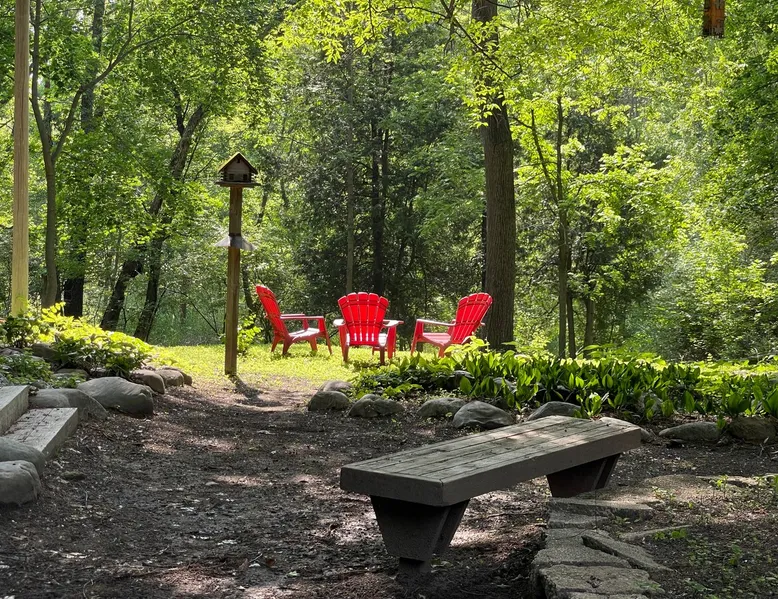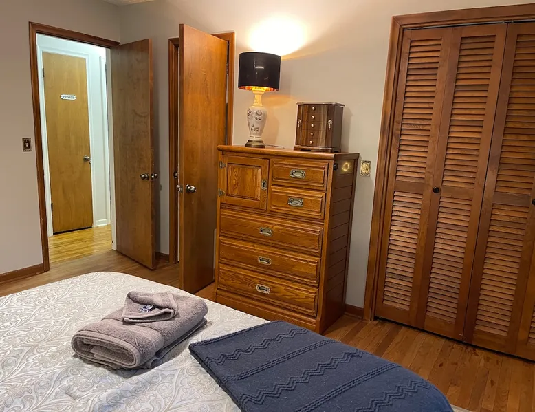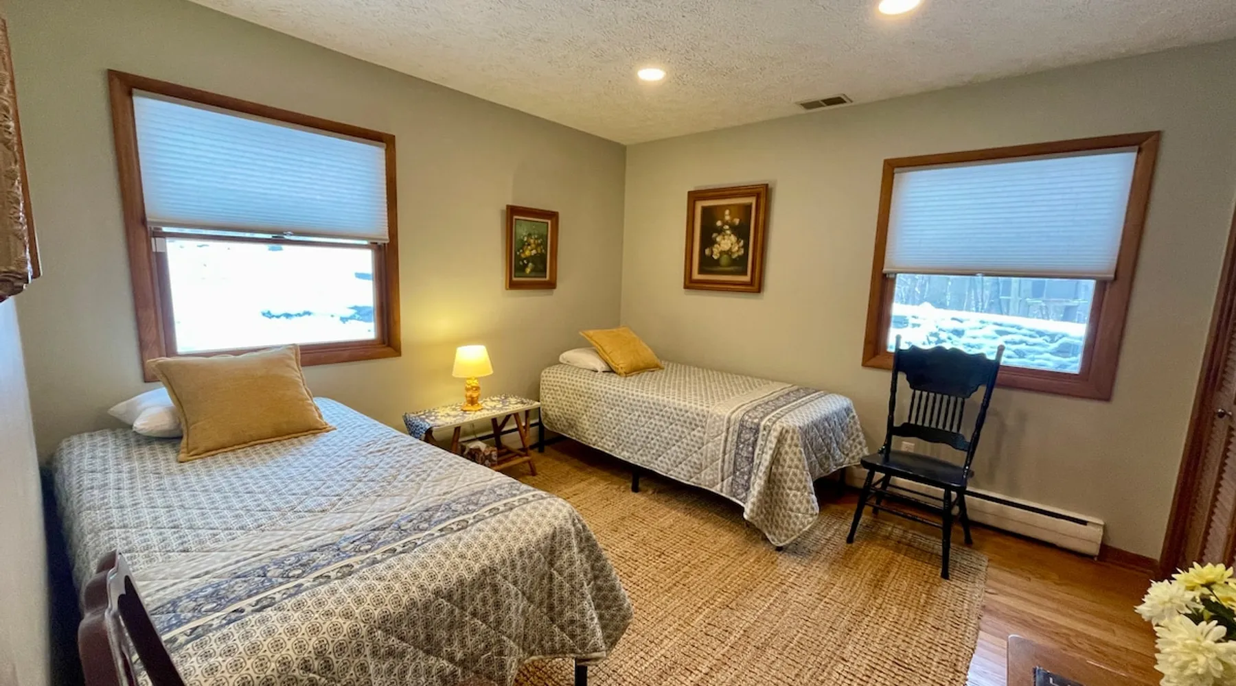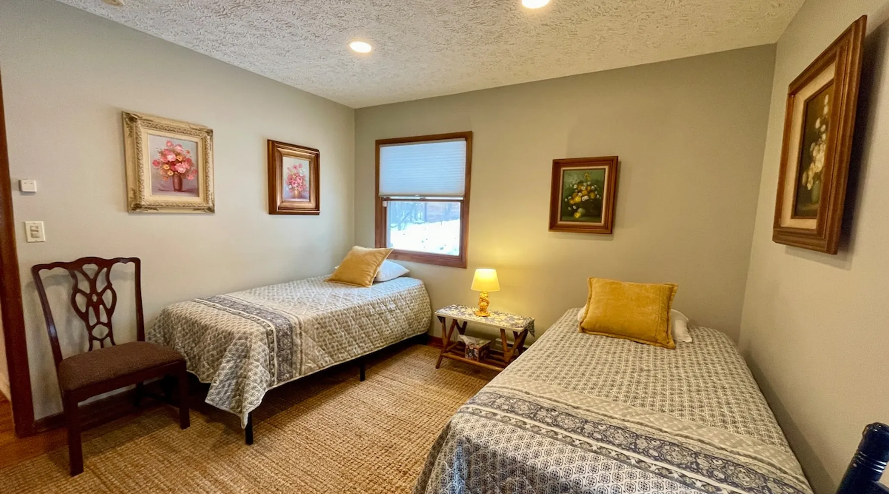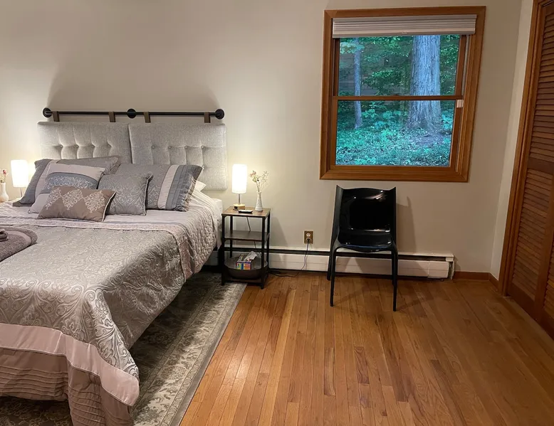 This suite occupies approximately half of our spacious owner occupied MCM ranch home, offering a quiet and private experience with separate living areas. It features a private front door entrance and is fully equipped with two bedrooms and two full bathrooms. One bedroom is ensuite a queen-sized bed, while the other has two twin beds. Enjoy the sunny lounge and hotel style kitchenette. 1,000 sq. ft. of living space, you'll have plenty of room to work, relax, or enjoy your time here in comfort. The space Frequently Asked Questions: 1. Is there a full kitchen? NO, the suite has a hotel-style kitchenette. Cooking isn’t allowed, but you'll find a mini-fridge, 700W microwave, Mr Coffee coffee maker, electric kettle, toaster, disposable and traditional plates and cutlery. Complimentary soft drinks, coffee, tea, and milk are provided. 2. Is there a private entrance? YES, there is a digital keypad for your convenience. 3. Are there any shared spaces? NO, the entire suite, including both bathrooms, are yours to enjoy. 4. Do the owners live in the other part of the house? YES, the house is a large MCM ranch with a private guest suite. There’s only one shared wall, between the owner’s kitchen and the guest suite’s kitchenette. Sound doesn't travel well between the units, so with normal sound levels you don’t need to worry about tip toeing, or speaking in whispers. 5. Can I bring my pet? YES, one dog is allowed. However, the dog must be registered at the time of booking and there is a small additional fee. Dogs cannot be left alone in the suite without being crated. 6. Can we use the backyard? YES, however it’s a shared space, but feel free to enjoy it as long as you’re comfortable with that. Please note we also have some patio restoration work scheduled this summer (2025) and the back garden may not be at all available when you arrive. - The tree house is not accessible. 7. Can I invite guests over? NO, only registered Airbnb guests are allowed. However, we may allow a small number of non-Airbnb guests on a case-by-case basis. 8. Is there a pet on the property? YES, we have a sweet 19 pound Parsons Terrier, she never has access to the guest suite. However if you use the back garden you may run into her and she loves being petted. This charming suite features 2 bedrooms, 2 full bathrooms, a spacious lounge with large windows, and a convenient kitchenette. Set in a super private location, it’s in an upscale neighborhood just 7 minutes from MSU campus and 14 minutes from the State Capitol—truly a home away from home. Our house is nestled in Okemos, sitting on a three quarter acre lot, prime real estate in a tranquil, family-friendly neighborhood. Surrounded by nature, you’ll enjoy the peaceful atmosphere, with towering beech, oak, pine, and maple trees creating a serene canopy overhead. Whether you're here for a weekend with family and friends or a quiet retreat with business colleagues, our location offers easy access to MSU. You can easily drive, bike, or hop on the bus to get to campus. Recently refurbished, the suite includes all-new mattresses, sheets, towels, and appliances, ensuring your comfort during your stay. Perfectly positioned to explore everything MSU has to offer—from sporting and cultural events to local parks, lakes, and all the attractions of the greater Lansing area. Guest access Private entrance and lockbox access .The whole guest suite is available for your use. Other things to note - When reserving a pet please provide a full description breed/age/weight. Pets can never to be left alone. Please do not allow your pet on the beds or furniture. We reserve the right to deny certain pets/breeds. - We have many pieces of original art that we personally value. Please do not remove them from the wall or their perch. - The house is located on top of a hill and therefore the driveway is somewhat steep. - Parking on the driveway is limited to one car. Additional free parking on the street.