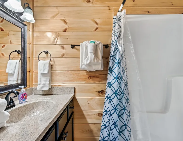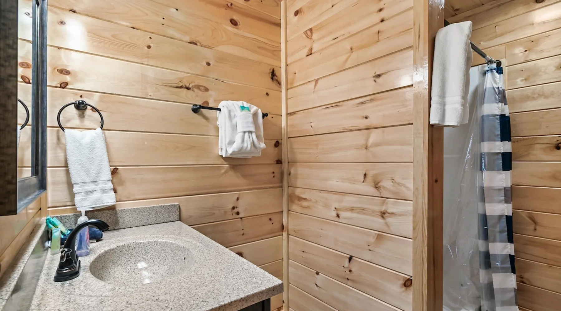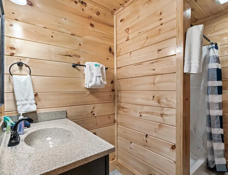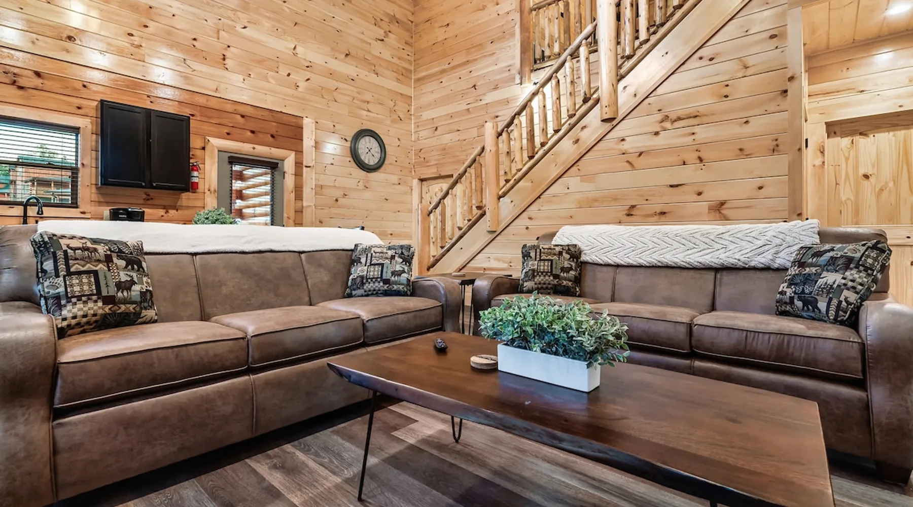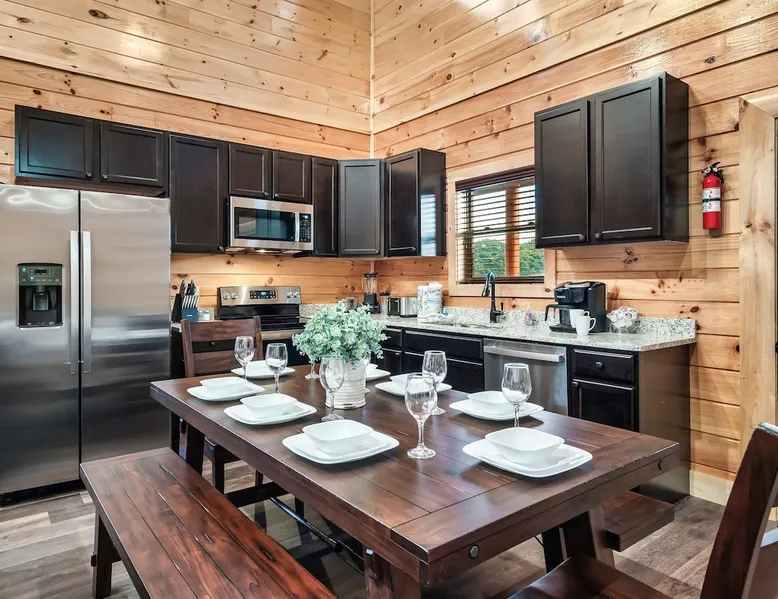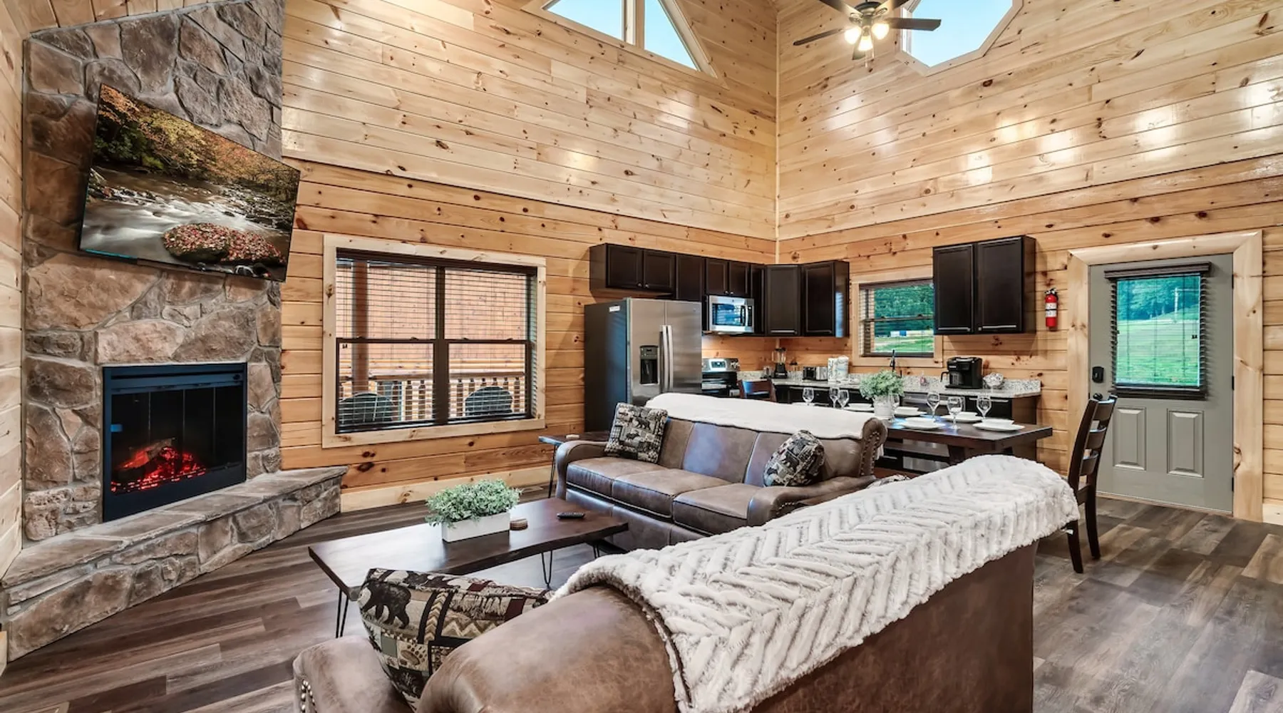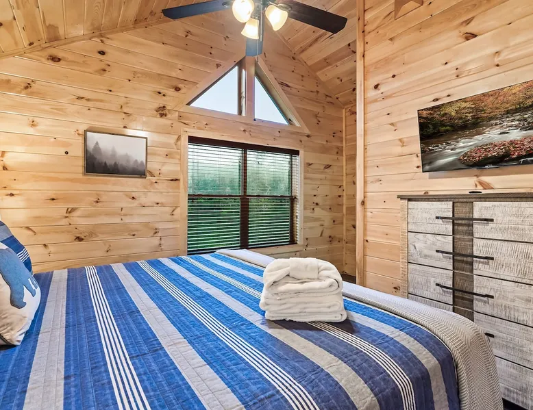 Twilight View by Thompson Retreats INDOOR HEATED SWIMMING POOL cabin that is ONE minute from the Pigeon Forge parkway and centrally located to all the attractions in Gatlinburg, Pigeon Forge, & the Smoky Mountains! This beautiful new 2 level cabin sleeps up to 12 people with four en- suite bedrooms. This cabin is the perfect base to explore the Smokies! It's close to local attractions and offers several of its own - indoor pool, pool table and multi-cade, outdoor grill, and streaming smart TVs. The space Escape to the heart of the Smoky Mountains and experience the ultimate in relaxation and entertainment at our stunning Indoor Heated Swimming Pool Cabin. This exceptional two-level cabin is perfectly situated right off the Parkway, offering unrivaled convenience and easy access to all the captivating attractions of Gatlinburg, Pigeon Forge, and the breathtaking Great Smoky Mountains. Accommodating up to 12 guests, this beautiful cabin boasts four spacious en-suite bedrooms, ensuring privacy and comfort for everyone in your group. The modern amenities and tasteful decor make it a cozy home away from home, promising an unforgettable retreat in the midst of nature's wonders. The highlight of this cabin is undoubtedly its indoor heated swimming pool. Whether it's a summer getaway or a winter escape, you can enjoy a soothing swim in the crystal-clear waters year-round. Picture yourself lounging poolside, surrounded by the warm ambiance of this private aquatic haven. For those seeking entertainment, the cabin offers a variety of options. Challenge your friends and family to a friendly game of pool on our pool table, or relive the golden age of arcade gaming with our multi-cade machine, providing hours of nostalgia and fun. Craving the great outdoors? Go to the park for a hike or fire up the outdoor grill and savor a delicious barbecue meal while breathing in the fresh mountain air. The cabin's outdoor spaces are perfect for enjoying the natural beauty that surrounds you. When it's time to unwind indoors, you'll find modern comfort in our streaming smart TVs. Catch up on your favorite shows, watch a movie night with loved ones, or simply cozy up by the fireplace with a good book. This cabin isn't just a place to stay; it's your base camp for exploring the wonders of the Smoky Mountains. With its proximity to local attractions (see reviews!) and its own array of amenities, your days can be filled with adventure and your nights with relaxation. Whether you're seeking adventure, tranquility, or a bit of both, our Indoor Heated Swimming Pool Cabin offers the perfect blend of luxury, convenience, and entertainment. Book your stay today and embark on an unforgettable journey in the heart of the Smokies! ★ ~2400 Sq Ft ★ Indoor saltwater pool heated to 84 degrees! ★ Reliable Very Fast High Speed Internet (~350MB!) ★ Multicade Barrel Arcade! ★ Pool table ★ Parking that easily fits three to four cars (five if parked strategically or double parked) ★ Prime Smoky Mountains Location that is right off the Parkway. Private yet convenient ★ ONE minute to Parkway, 7 minutes to The Island, 12 minutes to Dollywood, 14 minutes to Gatlinburg Mountain Village and 15 minutes for the National Park ★ Streaming Roku Smart TV's. BYO password for streaming services such as Netflix, Amazon Prime, etc... ★ Washer/Dryer ★ Fully Equipped Kitchen ★ Enjoy the large deck with comfortable rockers, gas grill and hot tub ★ Close to restaurants, shopping and lots of entertainment ★ Sleeps 12 with three en-suite king bedrooms and an en-suite bunk room with two full over full bunks ★ Comfortable relaxing living room with electric fireplace ★ Private hot tub for 5 people ★ No pets allowed ★ Absolutely No Smoking Guest access You will get a door code before check-in. No need to meet anyone for keys. You get the whole house to yourself. Other things to note ★ OCUPANCY 12 Person Max. All guests must be 25+ (children with parents are allowed) ★ ENTRY: The front door is equipped with an electronic keypad. We will send you your passcode for your door lock. Check in after 4pm No late check-out or early check-in. If you arrive early or depart late, there will be a $100 charge per half-hour. ★ HEATED INDOOR POOL The saltwater pool is the highlight of the cabin! The 16' x 8' Indoor Pool is heated to 84 degrees year round. The pool depth is 3 feet deep. Use at your own risk and supervise children as there is no life guard. ★ INTERNET/STREAMING TV’S: High Speed Wireless Internet is included in your stay throughout the cabin. The living room has a 65 inch large flat screen Roku smart TV, great for family movies or ballgames. The loft game room also has a 65 inch streaming Roku smart TVs. Streaming Roku Smart TV's. BYO password for streaming services such as Netflix, Amazon Prime, etc... ★ BEDROOMS There are 3 king master bedrooms with en-suite bathrooms which accommodate up to 6 adults comfortably. The top level also has an ensuite bedroom with 2 full over full bunk beds that can sleep 4 adults comfortably or up to 8 kids comfortably. ★ BATHROOMS 4 bathrooms: 3 with a walk-in showers and 1 with a shower/bathtub combo. ★ KITCHEN A dining table with 2 chairs and 2 benches in the kitchen can fit 8 people. There is also a table behind the sofa that can fit three additional people and a similar table in the loft for three people. The open dining area and a fully equipped kitchen provide for wonderful space for family gatherings. Appliances, pots, pans, cups, plates, utensils, drip/pod Keurig coffee maker. ★ DECK Large deck on the main level with six rockers and three side tables, gas grill and 5-6 person hot tub. ★ LAUNDRY Washer and dryer, ironing board and iron. ★ AMENITIES Our cleaning service provides initial start-up supplies including toilet paper, paper towels, dishwasher detergent, trash bags, shampoo and bar soap. Depending on the length of your stay, you may need to purchase some of the
