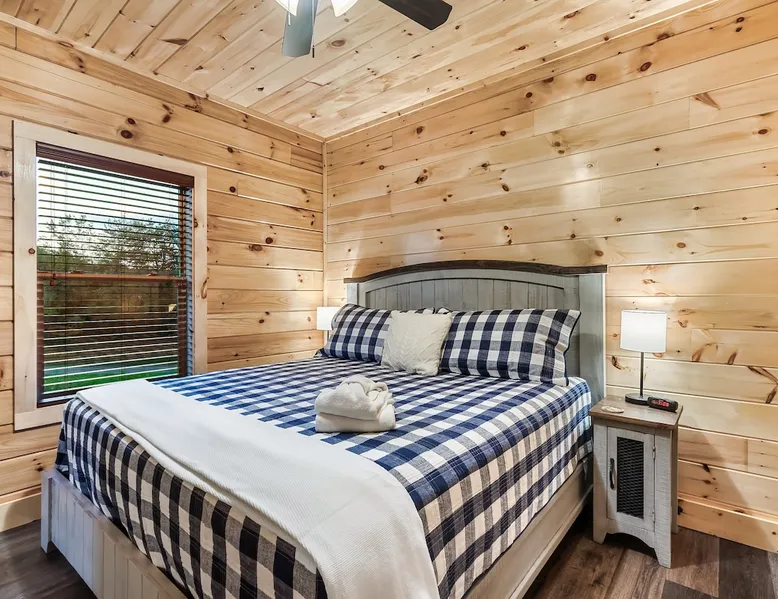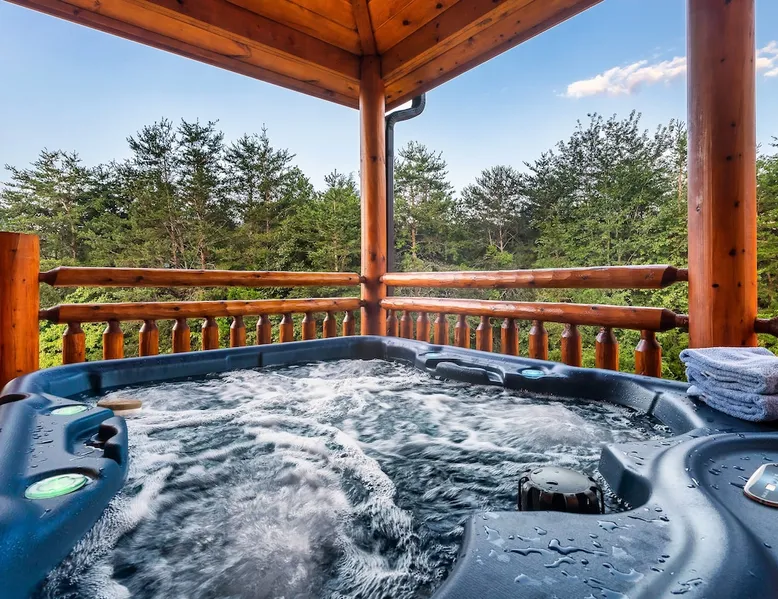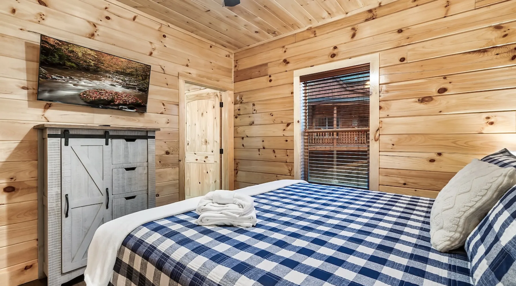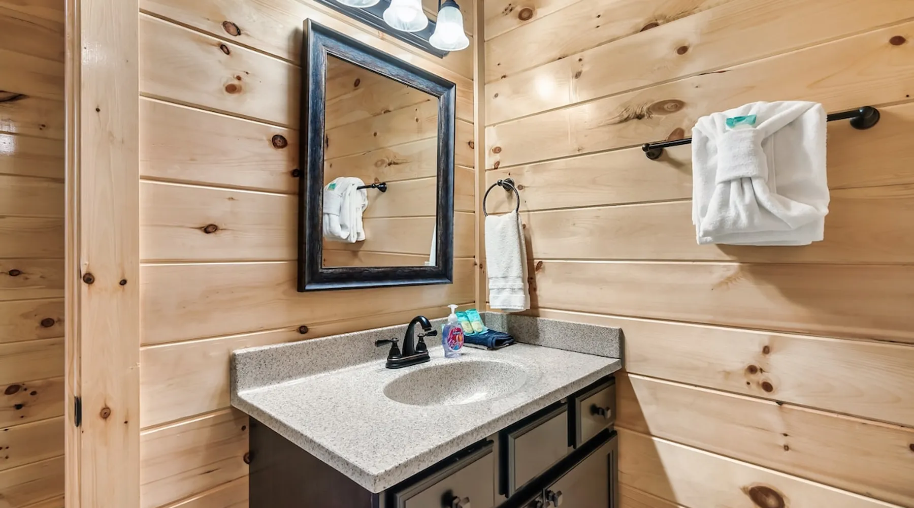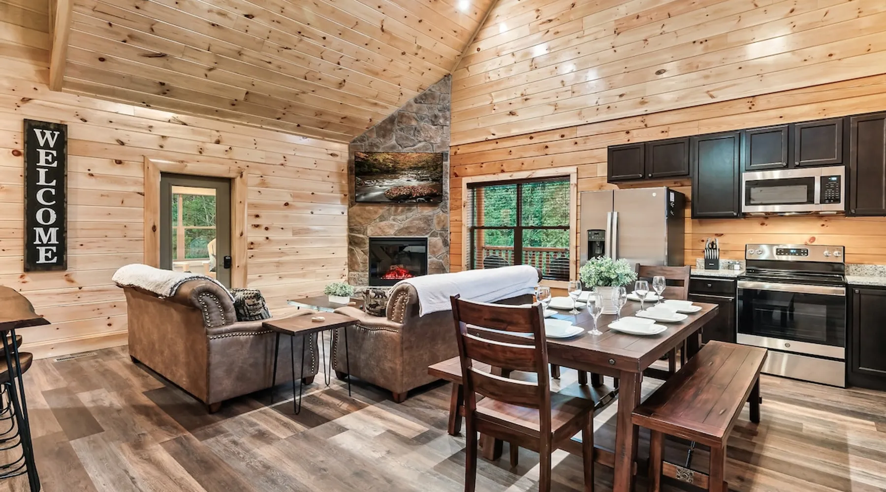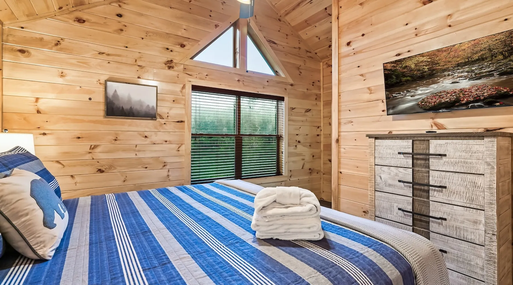 Twilight View by Thompson Retreats INDOOR HEATED SWIMMING POOL cabin that is ONE minute from the Pigeon Forge parkway and centrally located to all the attractions in Gatlinburg, Pigeon Forge, & the Smoky Mountains! This beautiful new 2 level cabin sleeps up to 12 people with four en- suite bedrooms. This cabin is the perfect base to explore the Smokies! It's close to local attractions and offers several of its own - indoor pool, pool table and multi-cade, outdoor grill, and streaming smart TVs. The space Escape to the heart of the Smoky Mountains and experience the ultimate in relaxation and entertainment at our stunning Indoor Heated Swimming Pool Cabin. This exceptional two-level cabin is perfectly situated right off the Parkway, offering unrivaled convenience and easy access to all the captivating attractions of Gatlinburg, Pigeon Forge, and the breathtaking Great Smoky Mountains. Accommodating up to 12 guests, this beautiful cabin boasts four spacious en-suite bedrooms, ensuring privacy and comfort for everyone in your group. The modern amenities and tasteful decor make it a cozy home away from home, promising an unforgettable retreat in the midst of nature's wonders. The highlight of this cabin is undoubtedly its indoor heated swimming pool. Whether it's a summer getaway or a winter escape, you can enjoy a soothing swim in the crystal-clear waters year-round. Picture yourself lounging poolside, surrounded by the warm ambiance of this private aquatic haven. For those seeking entertainment, the cabin offers a variety of options. Challenge your friends and family to a friendly game of pool on our pool table, or relive the golden age of arcade gaming with our multi-cade machine, providing hours of nostalgia and fun. Craving the great outdoors? Go to the park for a hike or fire up the outdoor grill and savor a delicious barbecue meal while breathing in the fresh mountain air. The cabin's outdoor spaces are perfect for enjoying the natural beauty that surrounds you. When it's time to unwind indoors, you'll find modern comfort in our streaming smart TVs. Catch up on your favorite shows, watch a movie night with loved ones, or simply cozy up by the fireplace with a good book. This cabin isn't just a place to stay; it's your base camp for exploring the wonders of the Smoky Mountains. With its proximity to local attractions (see reviews!) and its own array of amenities, your days can be filled with adventure and your nights with relaxation. Whether you're seeking adventure, tranquility, or a bit of both, our Indoor Heated Swimming Pool Cabin offers the perfect blend of luxury, convenience, and entertainment. Book your stay today and embark on an unforgettable journey in the heart of the Smokies! ★ ~2400 Sq Ft ★ Indoor saltwater pool heated to 84 degrees! ★ Reliable Very Fast High Speed Internet (~350MB!) ★ Multicade Barrel Arcade! ★ Pool table ★ Parking that easily fits three to four cars (five if parked strategically or double parked) ★ Prime Smoky Mountains Location that is right off the Parkway. Private yet convenient ★ ONE minute to Parkway, 7 minutes to The Island, 12 minutes to Dollywood, 14 minutes to Gatlinburg Mountain Village and 15 minutes for the National Park ★ Streaming Roku Smart TV's. BYO password for streaming services such as Netflix, Amazon Prime, etc... ★ Washer/Dryer ★ Fully Equipped Kitchen ★ Enjoy the large deck with comfortable rockers, gas grill and hot tub ★ Close to restaurants, shopping and lots of entertainment ★ Sleeps 12 with three en-suite king bedrooms and an en-suite bunk room with two full over full bunks ★ Comfortable relaxing living room with electric fireplace ★ Private hot tub for 5 people ★ No pets allowed ★ Absolutely No Smoking Guest access You will get a door code before check-in. No need to meet anyone for keys. You get the whole house to yourself. Other things to note ★ OCUPANCY 12 Person Max. All guests must be 25+ (children with parents are allowed) ★ ENTRY: The front door is equipped with an electronic keypad. We will send you your passcode for your door lock. Check in after 4pm No late check-out or early check-in. If you arrive early or depart late, there will be a $100 charge per half-hour. ★ HEATED INDOOR POOL The saltwater pool is the highlight of the cabin! The 16' x 8' Indoor Pool is heated to 84 degrees year round. The pool depth is 3 feet deep. Use at your own risk and supervise children as there is no life guard. ★ INTERNET/STREAMING TV’S: High Speed Wireless Internet is included in your stay throughout the cabin. The living room has a 65 inch large flat screen Roku smart TV, great for family movies or ballgames. The loft game room also has a 65 inch streaming Roku smart TVs. Streaming Roku Smart TV's. BYO password for streaming services such as Netflix, Amazon Prime, etc... ★ BEDROOMS There are 3 king master bedrooms with en-suite bathrooms which accommodate up to 6 adults comfortably. The top level also has an ensuite bedroom with 2 full over full bunk beds that can sleep 4 adults comfortably or up to 8 kids comfortably. ★ BATHROOMS 4 bathrooms: 3 with a walk-in showers and 1 with a shower/bathtub combo. ★ KITCHEN A dining table with 2 chairs and 2 benches in the kitchen can fit 8 people. There is also a table behind the sofa that can fit three additional people and a similar table in the loft for three people. The open dining area and a fully equipped kitchen provide for wonderful space for family gatherings. Appliances, pots, pans, cups, plates, utensils, drip/pod Keurig coffee maker. ★ DECK Large deck on the main level with six rockers and three side tables, gas grill and 5-6 person hot tub. ★ LAUNDRY Washer and dryer, ironing board and iron. ★ AMENITIES Our cleaning service provides initial start-up supplies including toilet paper, paper towels, dishwasher detergent, trash bags, shampoo and bar soap. Depending on the length of your stay, you may need to purchase some of the
