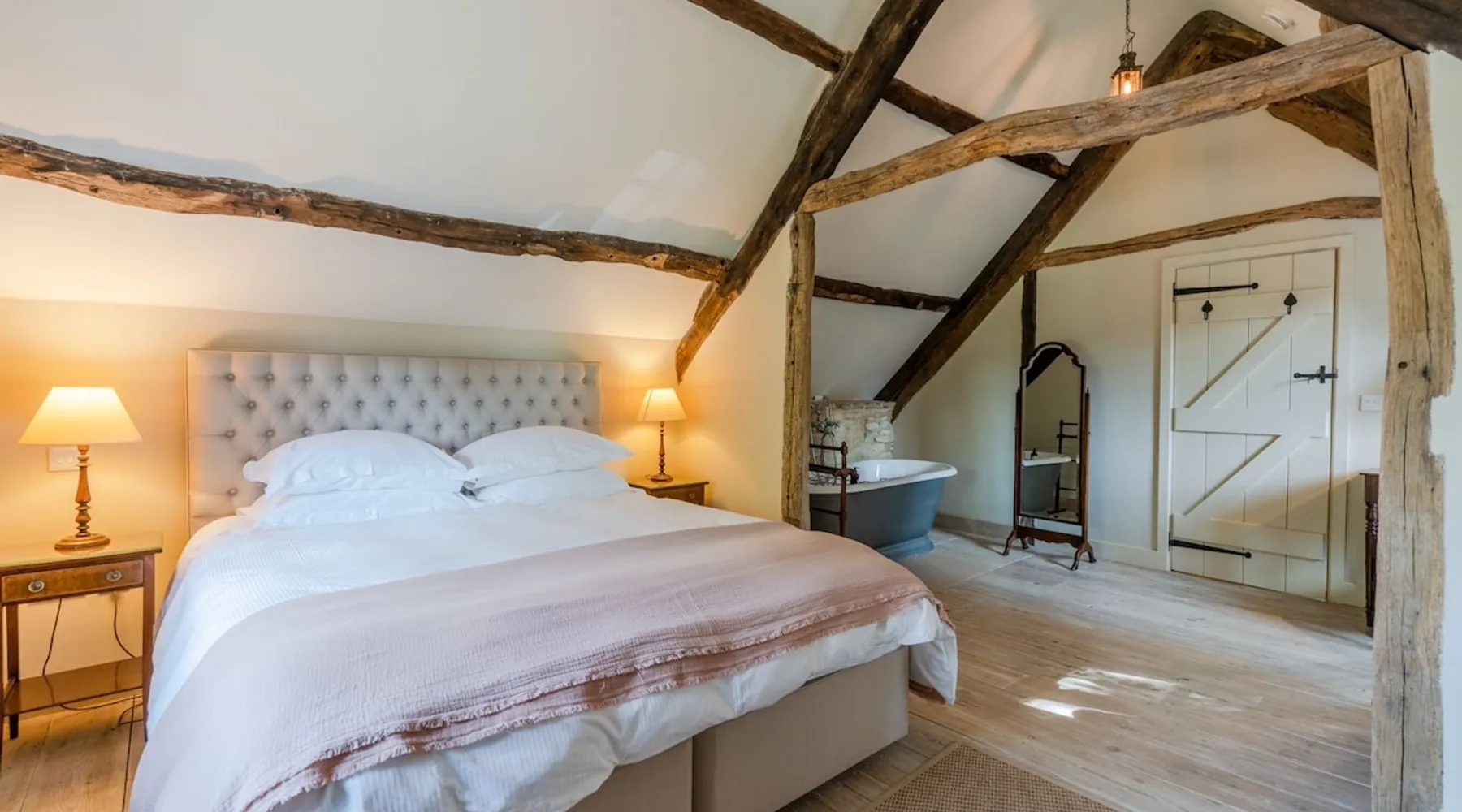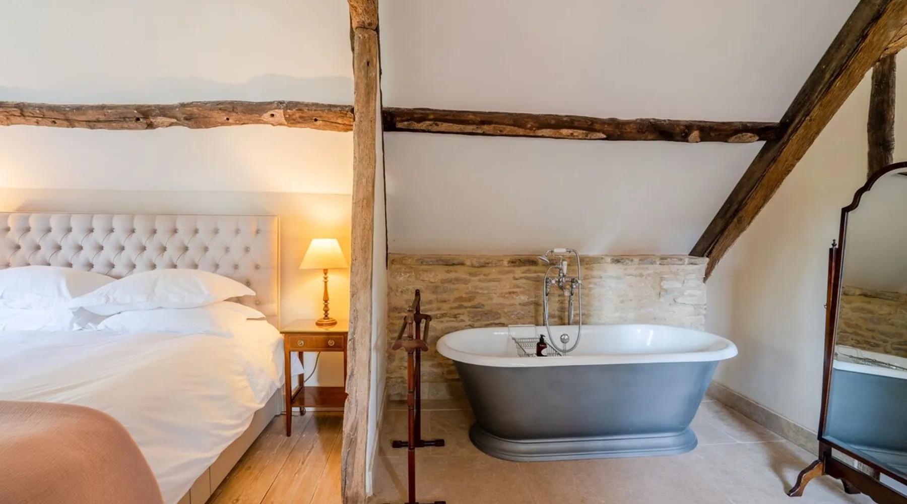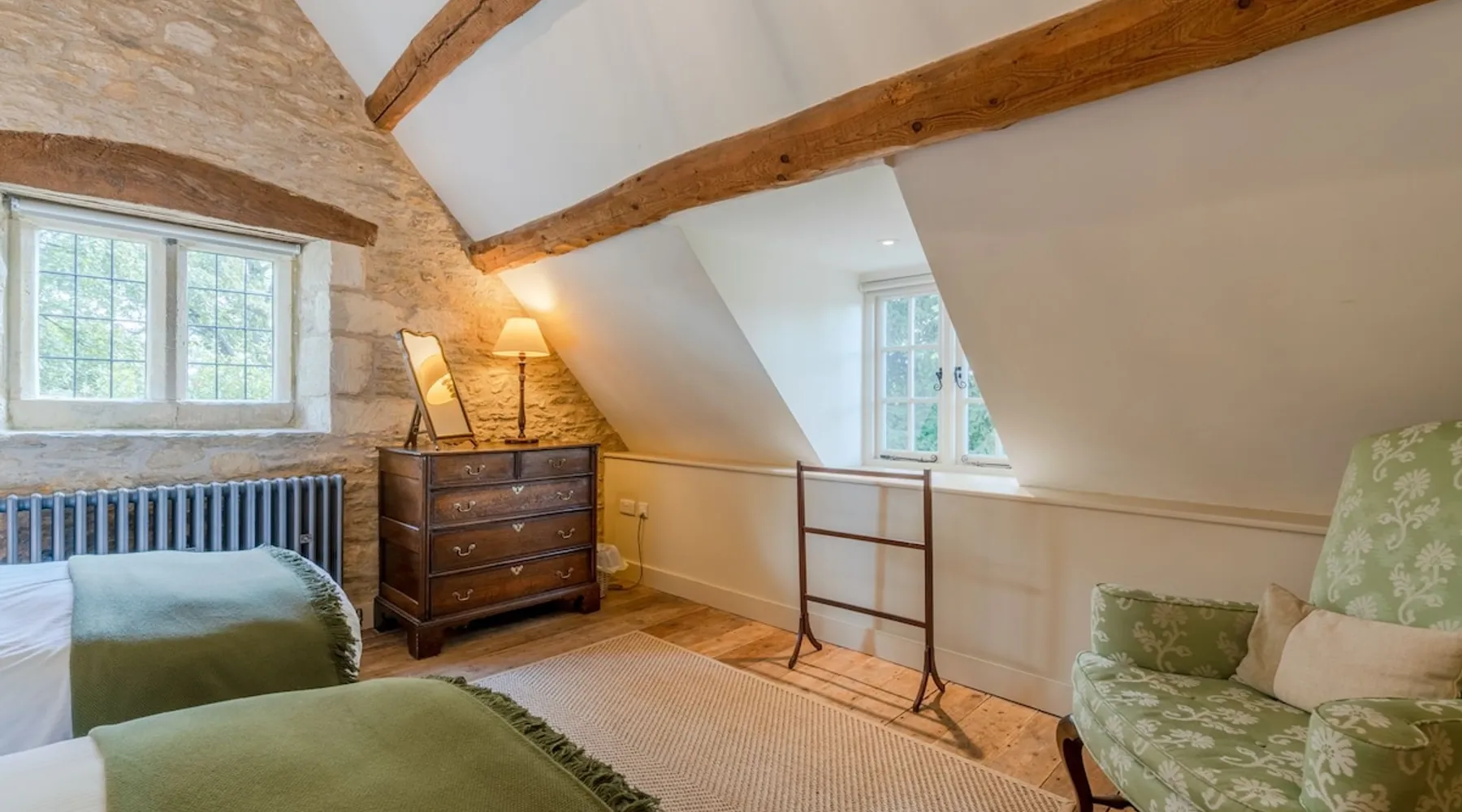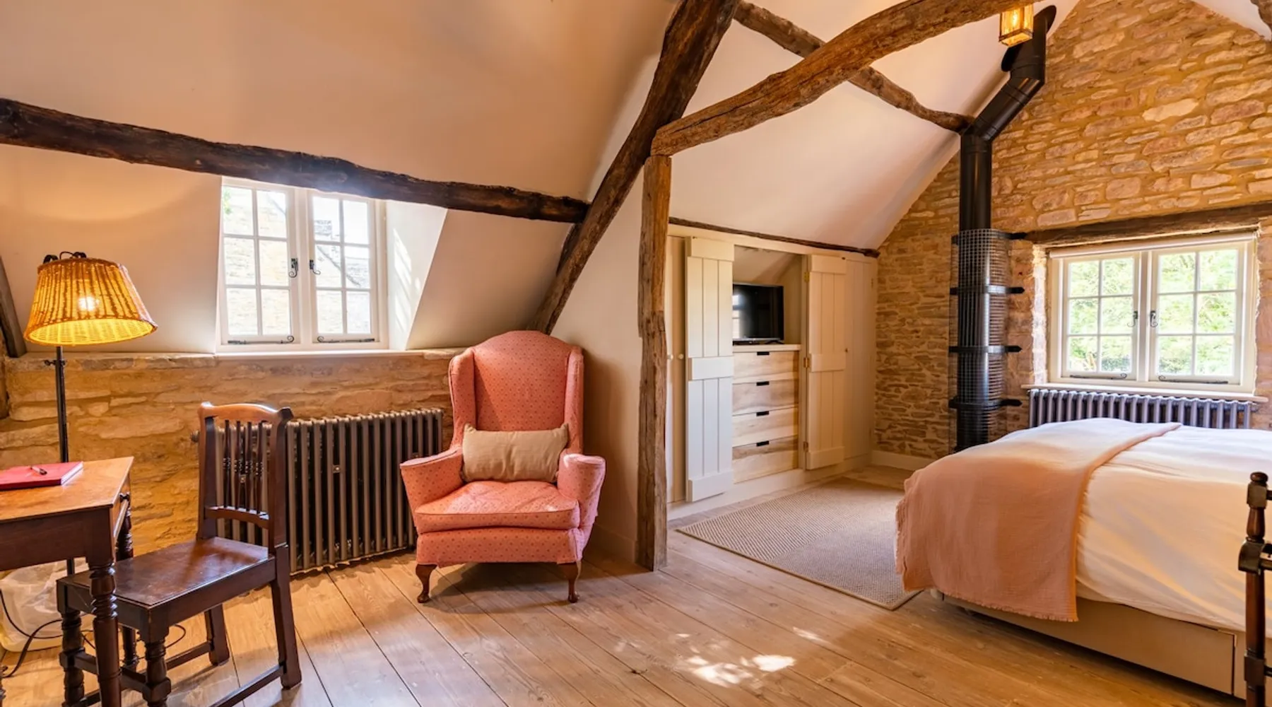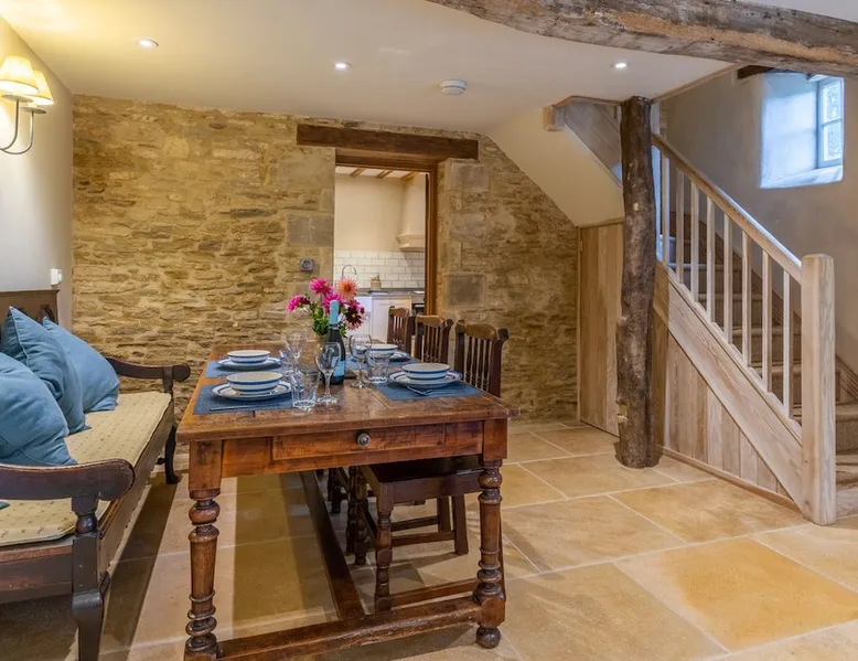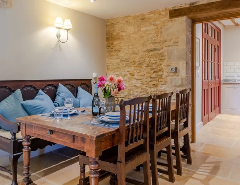 Tucked away behind high gates in the pretty village of Cold Aston, the Coach House is a gorgeous Cotswold hideaway for four. Classically styled and elegant, the generous proportions of this 18th-century, Grade II listed building ensure space and comfort Whilst original floors, beams and exposed stone walls add character and a timeless appeal. There are 2 gorgeous bedrooms, a fabulous freestanding bath and a wood-burning stove. The space Quietly located in the village of Cold Aston, just a stone's throw from Bourton-on-the-Water, the Coach House offers space and tranquillity in a lovely setting. The countryside lanes that weave through the Cotswolds bringing you to the village, set the scene for your stay perfectly. Throughout the coach house, original features take centre stage revealing exposed stone walls, aged timbers, and old beams. There's detail in the little touches too, with brace and latch doors, antique light switches and a wooden settle. Enjoy lazy breakfasts and relaxed suppers at the six-seater dining table, then retire to the comfy sofas set around the welcoming glow of the wood-burning stove. During the summer months, you can throw open the doors to the courtyard and soak up the late afternoon sunshine. The two bedrooms are equally enchanting with beamed, vaulted ceilings, village views and lots of space to relax. The free-standing bathtub in bedroom one just invites you to fill it with bubbles, lay back and let the worries of the world simply drift away. The Coach House enjoys a courtyard area with parking for two cars. The cobbles to the front of the property are the perfect spot for the dining table and chairs, where you can relax in the fresh air. There are footpaths from the door and the village pub is just a short walk away. Ground Floor Kitchen: The old entrance door leads into a well-equipped kitchen, the simple design fits perfectly with the style that you will find throughout the Coach House. There is a full oven, hob, and dishwasher and behind the red-framed doors to the pantry there is a fridge (no freezer), and washing machine along with all your crockery and glasses. There is also a ground-floor cloakroom tucked away in here too. The impressive settle is actually made from old oak coffin wood, and a good place to sit to remove outdoor gear. Living Room/Dining Area: Take a moment to appreciate the detail on the old door, with its wooden acorn weight, as you walk through to the main living space. There's an eight-seater refectory dining table with chairs and a Georgian settle along one side, and two plump sofas are placed at right angles around the stone fireplace which is now home to a wood-burning stove. Behind the timber doors on the left of the chimney breast, you'll find the Smart TV. Double doors lead into the courtyard. First Floor Bedroom One: This fabulous bedroom is filled with character boasting exposed stone walls, timber floors and old beams. Soak the cares of the day away in the free-standing bathtub before drifting off to sleep in the comfortable super-king bed. This is a romantic and peaceful space with charm by the bucket load. There is plenty of storage so you can unpack, a thoughtfully placed desk and chair, and a cosy armchair, where you can relax with a coffee as the day begins. Shower Room: Between the two bedrooms is the bathroom with a shower cubicle with a rainfall showerhead, handbasin and WC. Bedroom Two: This equally delightful bedroom is up two steps from the main staircase and can be arranged as a twin, or king. Deep-set windows to the side and front, wooden beams and original floorboards add warmth and charm whilst the neutral colour scheme enhances the beautiful sense of calm. There is an antique chest of drawers and hooks with wooden hangers for unpacking. Outside The high gates lead into the courtyard which is only for the use of the Coach House guests. There is parking for two cars and a cobbled patio with a wooden table and chairs and a parasol. A wooden bench placed along one stone wall catches the late afternoon sunshine. Guest access Guests have full access to the Coach House. Other things to note • Book with us to get exclusive discounts to top attractions and experiences. • Barbecues are not provided at the Coach House. • This property has a strictly no-smoking/no-vaping indoors policy. If you do smoke outside, please extinguish properly and respect future guests by removing cigarette litter. • Please note, if you would like bedroom two to be arranged as a king-size, please contact us 7 days before arrival. • The Coach House is one of our pet-free properties and therefore dogs and other pets are not permitted. • Please do not flush any products down the toilet other than toilet paper, because they will block the system and it is expensive to clear the blockage.