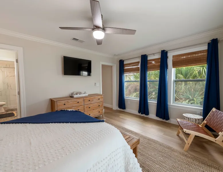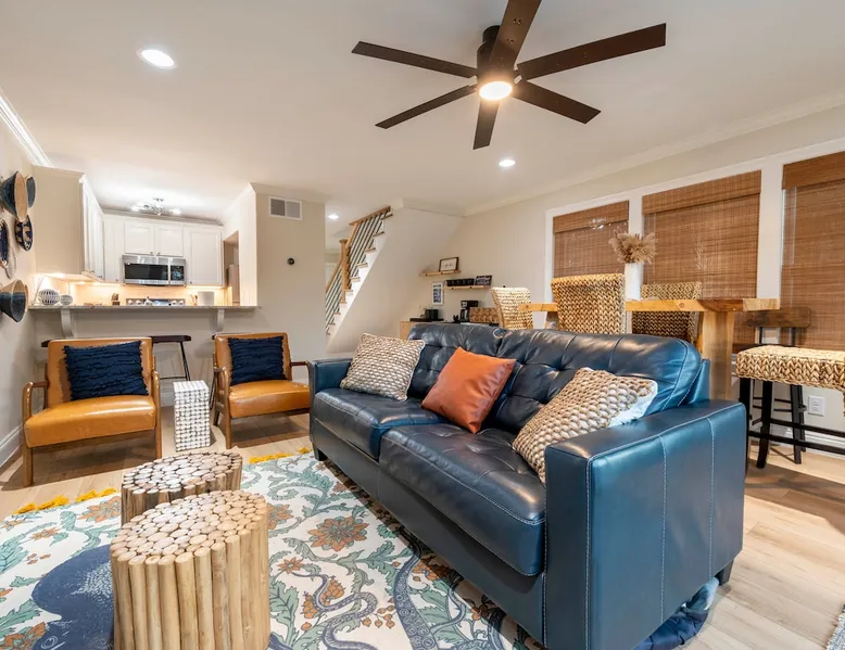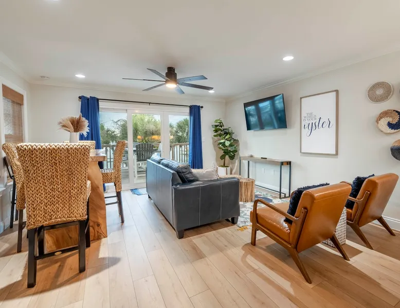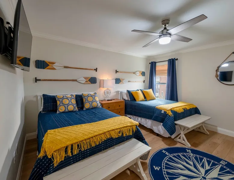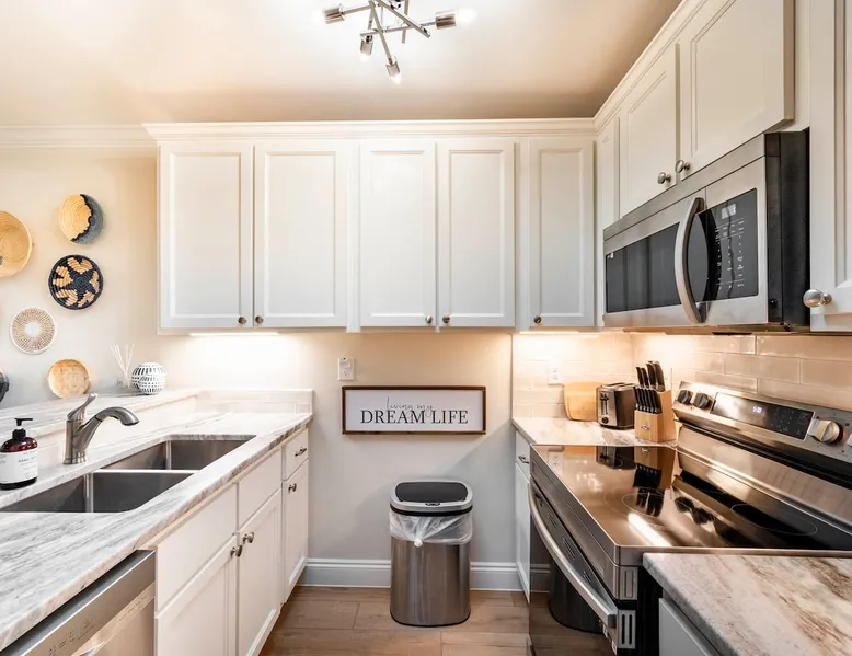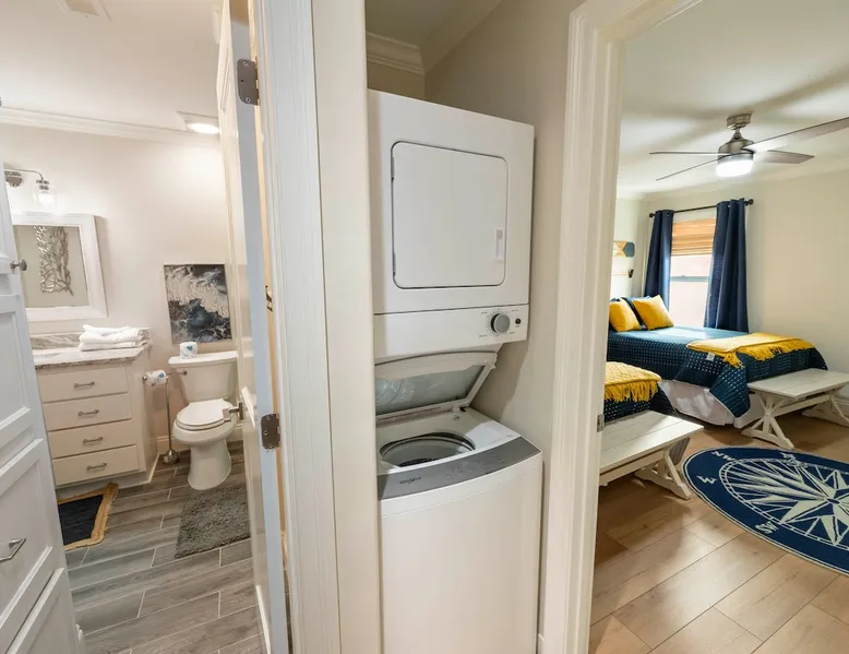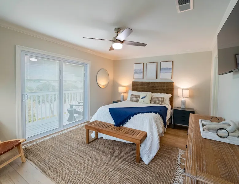 “Bliss on the Bay Laguna Beach @ Gulf Shores” Key Features: ☀ Gorgeous bay views ~ breathtaking sunsets ☀ Beach ~ 3-minute walk ☀ Close to Gulf Shores favorites: The Hangout, Picnic Beach, Sunliner Diner & more ☀ Pool ~ right out the front door ☀ Waterfront on Little Lagoon ~ enjoy fishing, kayaking & paddle boarding from the private dock ☀ Ammenities Exclusive to A1–A4 units: 🛶 Kayaks + Paddle Boards + Life Jackets 🏓 Ping Pong + Corn Hole + Hook & Ring Toss 🌴 Hammocks The space ☀ Beach essentials: beach toys, beach chairs, and a beach cart. ☀ Kid-friendly: pack ’n play + high chair ☀ Selection of classic board games ☀ Well-equipped kitchen ☀ Free high-speed Wi-Fi + Smart TVs ☀ Patio with private dining table & grill for each unit ☀ BBQ grill available ☀ Washer & dryer included ☀ Air conditioning + heating ☀ Newly renovated with professionally designed coastal décor ☀ Covered parking NEW "Bliss on the Bay" is the dream bayside condo perfectly situated on Little Lagoon on the west beach of Gulf Shores, Alabama! Enjoy this professionally decorated 3-bedroom, 2-bath condo with beautiful bay views & just a 3-minute walk from the sugar-white sand beaches and emerald waters of the Gulf! This condo is perfect for 1-2 families or a group of friends. While the location provides a tranquil, relaxing environment, it is just a short drive from the attractions, shops & restaurants of Gulf Shores! ☆☆ BEDROOMS ☆☆ This professionally decorated Gulf Shores condo offers three cozy bedrooms designed for comfort and style. ● Upstairs, you’ll find a queen bedroom and a second bedroom with two double beds and its own Smart TV—perfect for kids or extra guests. ● Downstairs, the main-level queen bedroom and its own Smart TV provide easy access and relaxing comfort. With space to sleep up to 8 guests, this waterfront retreat is ideal for families or groups looking for an oceanview getaway with a touch of coastal charm. ☆☆ BATHROOMS ☆☆ This bayside condo features two full bathrooms designed with comfort and convenience in mind. Both include spacious walk-in showers, modern fixtures, and plenty of room to freshen up. Fresh towels and starter toiletries are provided to make your stay easier. ☆☆ KITCHEN & LIVING AREA ☆☆ The well-equipped kitchen includes everything you’ll need to enjoy meals at home, from cookware to modern appliances. Share meals at the dining table or breakfast bar before heading out for a day on the beach. The open-concept living area features a comfortable sofa, Smart TV, and oceanview windows overlooking Little Lagoon. Natural light and calming waterviews create the perfect space to unwind after a fun day in Gulf Shores. ☆☆ OUTDOOR SPACE ☆☆ Step outside to the shared patio with a dining table and grill—perfect for sunset dinners. Right outside your door, you’ll find the sparkling pool, while the condo’s private dock on Little Lagoon provides direct waterfront access for fishing, kayaking, or paddle boarding. Exclusive amenities include kayaks, paddle boards, hammocks, ping pong, cornhole, hook & ring toss, beach toys, beach chairs, and a beach cart. Best of all, the sugar-white sands and emerald waters of the Gulf are just a 3-minute walk away, so you can enjoy that true oceanfront beach experience. ☆☆ LAUNDRY ☆☆ A washer and dryer are provided in-unit, along with an iron and ironing board, so you can pack light and stay fresh during your stay. Location ~ close proximity to local attractions, shops & restaurants: ☀ 10 mins to Gulf State Park’s 25+ miles of walking/jogging/biking trails ☀ 9 mins to Waterville USA ☀ 12 mins to Pirate's Cove Adventure Golf ☀ 12 mins to The Track Family Fun Park ☀ 8 mins to The Hangout ☀ 14 mins to Lulu’s ☀ 8 mins to Sunliner Diner ☀ 8 mins to DeSoto’s Seafood Kitchen ☀ 6 mins to Burro Azul ☀ 8 mins to Crico’s Pizza ☀ 8 mins to Picnic Beach ☀ 9 mins to Hog Wild Beach BBQ ☀ 6 mins to Island Outfitters ☀ 13 mins to RonJon Surf Shop ☀ 24 mins to Tanger Outlets ☀ 4 mins to Waves Grocery Store ☀ 15 mins to Publix Gulf Shores ☀ 11 mins to Walmart Supercenter And so much more!!! Interested in traveling with multiple families or a group of friends, but enjoy having your own accommodations? If so, we have 3 additional 3-bed/2-bath condos, each sleeping 7-8 guests. All 4 are side-by-side, newly renovated with breathtaking bay front views, a 3-minute walk to the beach! Book 1 condo or book all 4! Just remember, parties are strictly prohibited. ★☆ Book Today & Let Us Host You in Gulf Shores! ☆★ Guest access Guests will have access to their full condo, the amenities underneath the condo, the pool (March thru October), fishing dock, bay, kayaks, paddle boards & your own storage locker with beach gear just for your condo. Other things to note ACCESS: Check in is at 4pm and checkout is at 10am. We are not able to accommodate early or late checkins/outs during busy times or same day checkins/outs for guests. The property features self-checkin using an electronic smart lock keypad. A unique door code will be provided at least 48 hours before check-in. RULES ✔ An adult of at least 18 years old must supervise all kids around the pool, bay and ocean. ✔ No fireworks, candles or discharging of firearms allowed. ✔ No more than the max number of guests allowed at the property based on the reservation. ✔ Avoid the use of hair dyes, hair coloring and other products that could stain linens. ✔ If the property is left excessively dirty it could require an additional cleaning fee. ✔ Please respect the community noise ordinance from 10 PM to 10 AM. ✔ We kindly ask you to treat our property as your own to preserve its pristine condition for future guests and your return visits. NO SMOKING: or use of fire permitted in the rental. Guest acknowledges that no “smoking” includes the use of vape pens and marijuana and “use of 