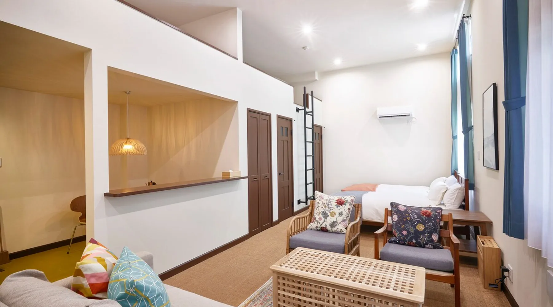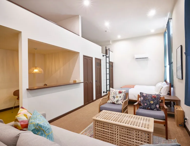 It is a studio room with Nordic style interior that is compatible with Japan.The loft can accommodate up to 7 people.Dongolos, a coffee bean sack, and the floor was barefoot. The space It is a studio room with Nordic style interior that is compatible with Japan.Loft can accommodate up to 8 people.Dongolos, a coffee bean sack, and the floor was barefoot. Other things to note Rooms are 2 single beds 5 single mattress on the loft 7 Guests allowed to stay. Registration Details Hotels and Inns Business Act | 藤沢市保健所 | 2022環境第1307号